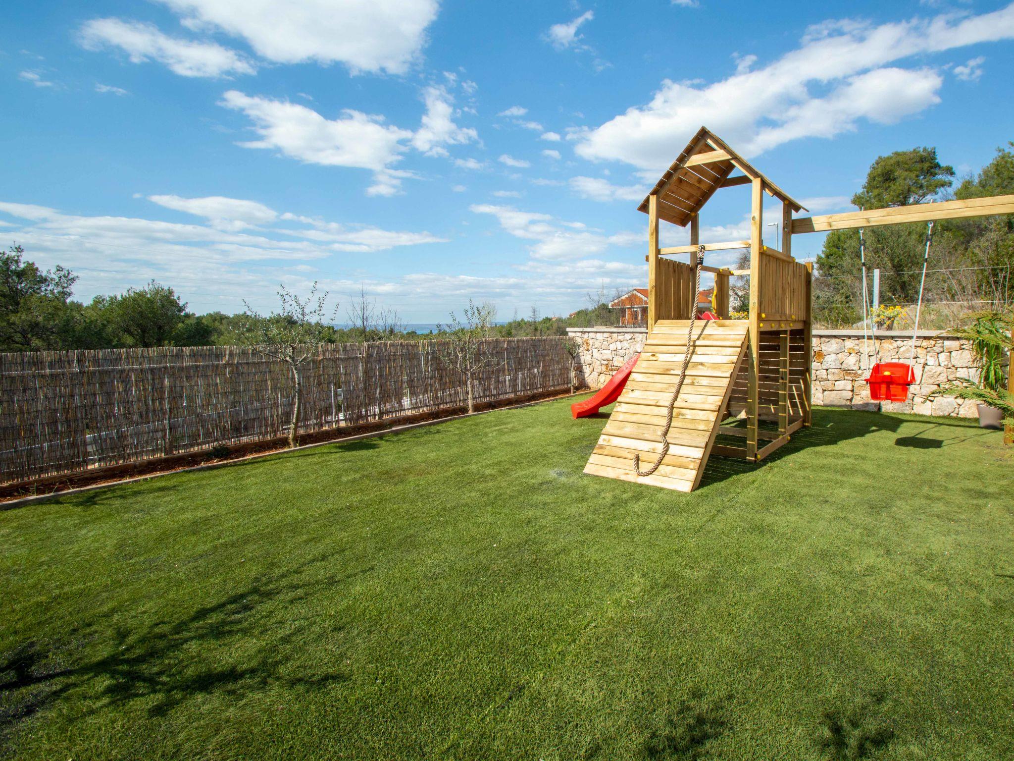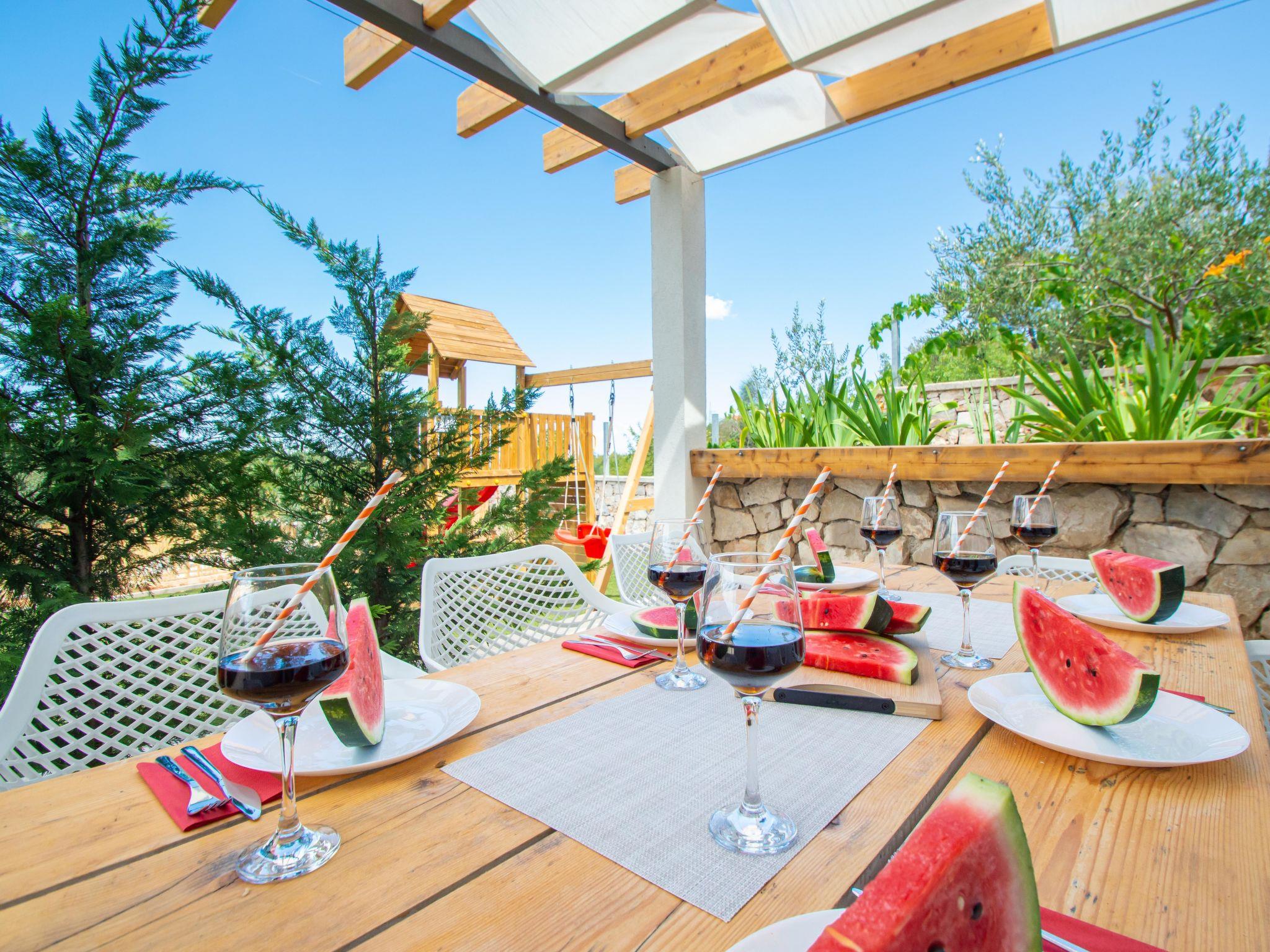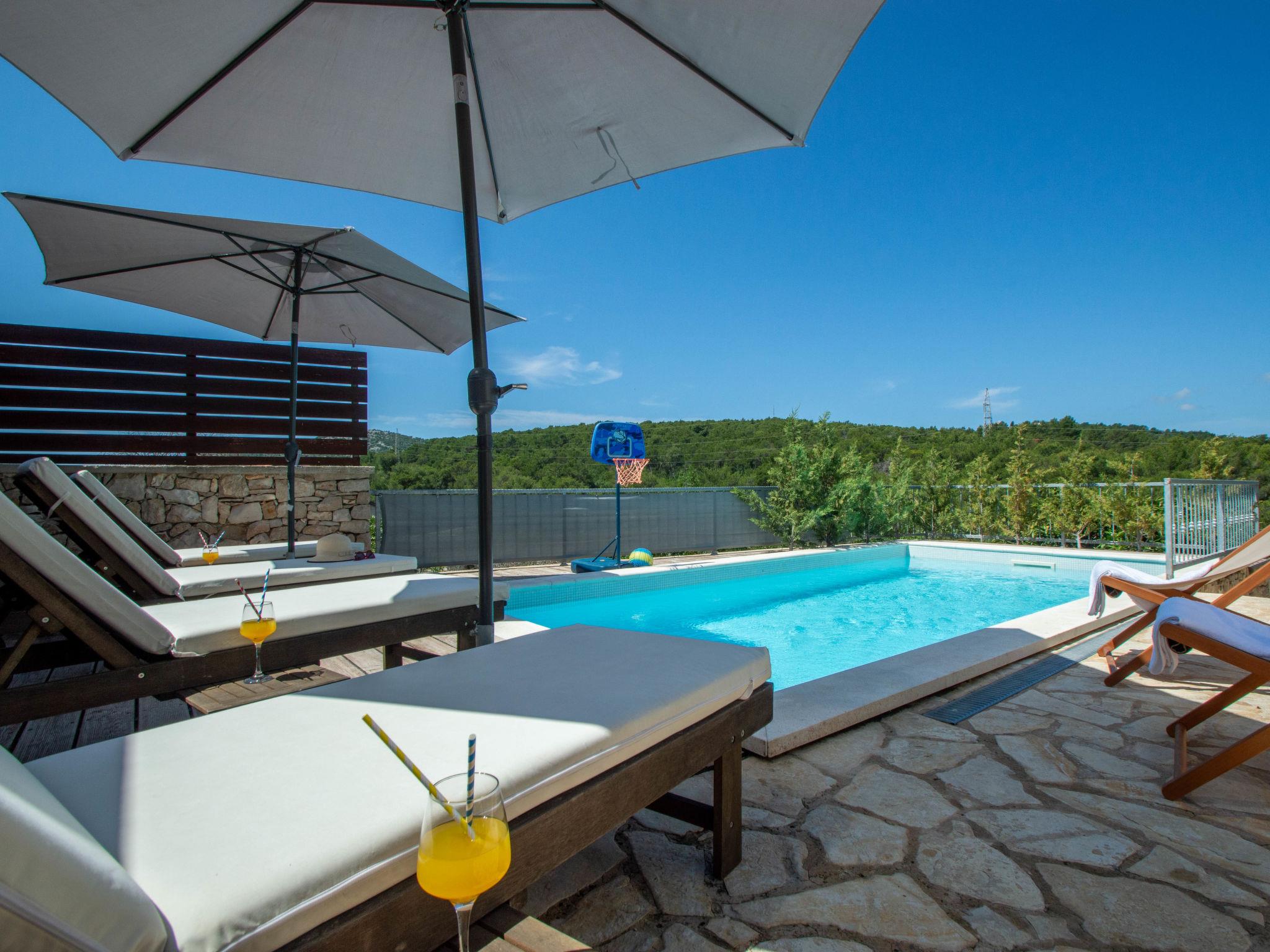 Bilice: Beautiful single-family house "Dalmacia", 2 storeys. 2.5 km from the centre of Bilice, 5 km from the centre of Šibenik, in a sunny position, 5 km from the sea, 2.5 km from the lake, located by a road. Private: property 500 m2, wildlife garden and trees, swimming pool angular (6 x 3 m, depth 150 cm, seasonal availability: 28.May. - 03.Oct.) with internal staircase. Outdoor shower, children's playground (slide, swing). In the house: internet access, washing machine. Parking (for 3 cars) at the house on the premises. Shop 1 km, restaurant 3.5 km, café 200 m, bus stop 600 m, pebble beach 5 km, bathing lake 2.5 km. Nearby attractions: NP Krka 10 km. Well-known lakes can easily be reached: Prokljansko jezero 2.5 km. Part of the house is closed and unoccupied.