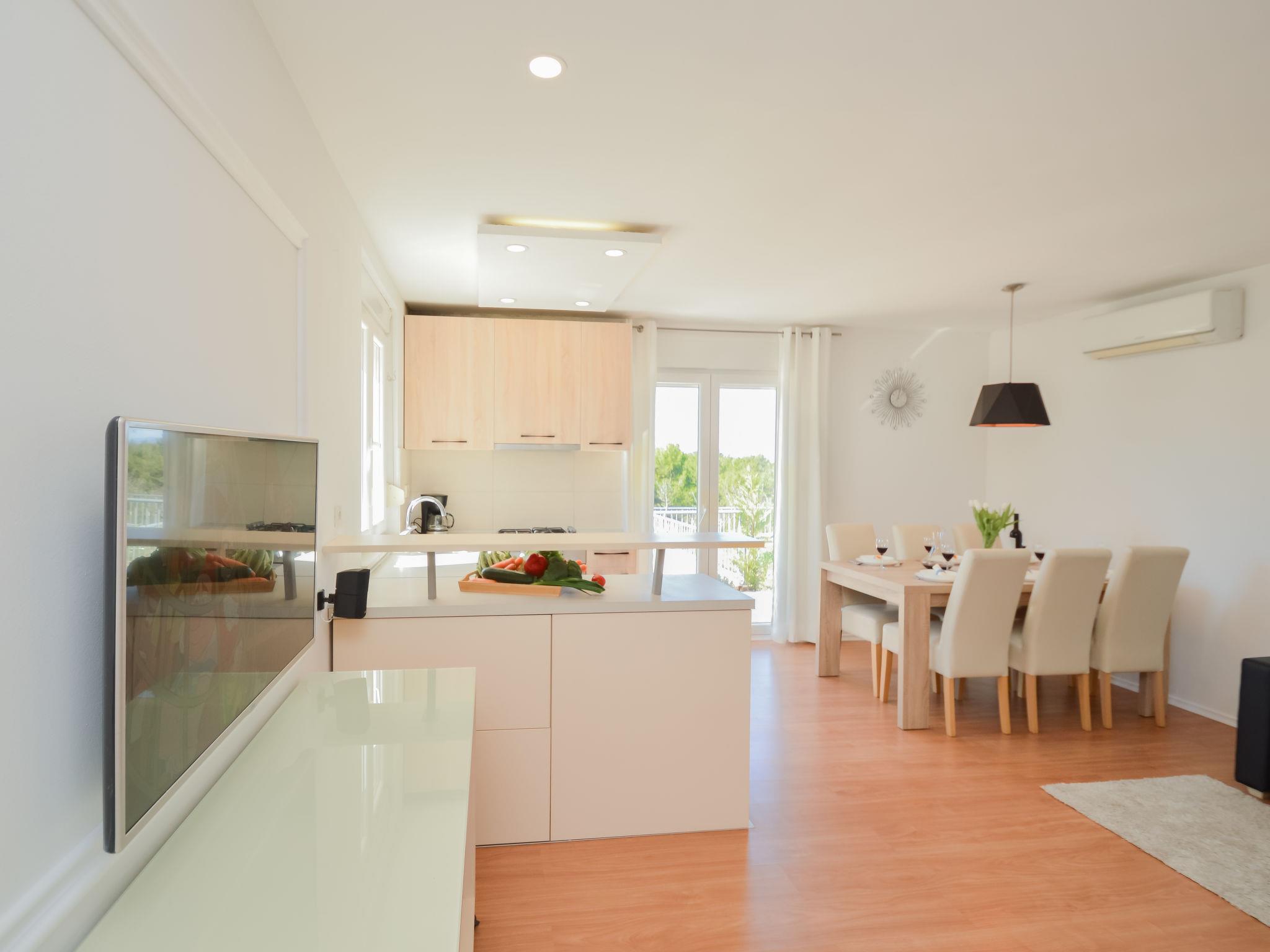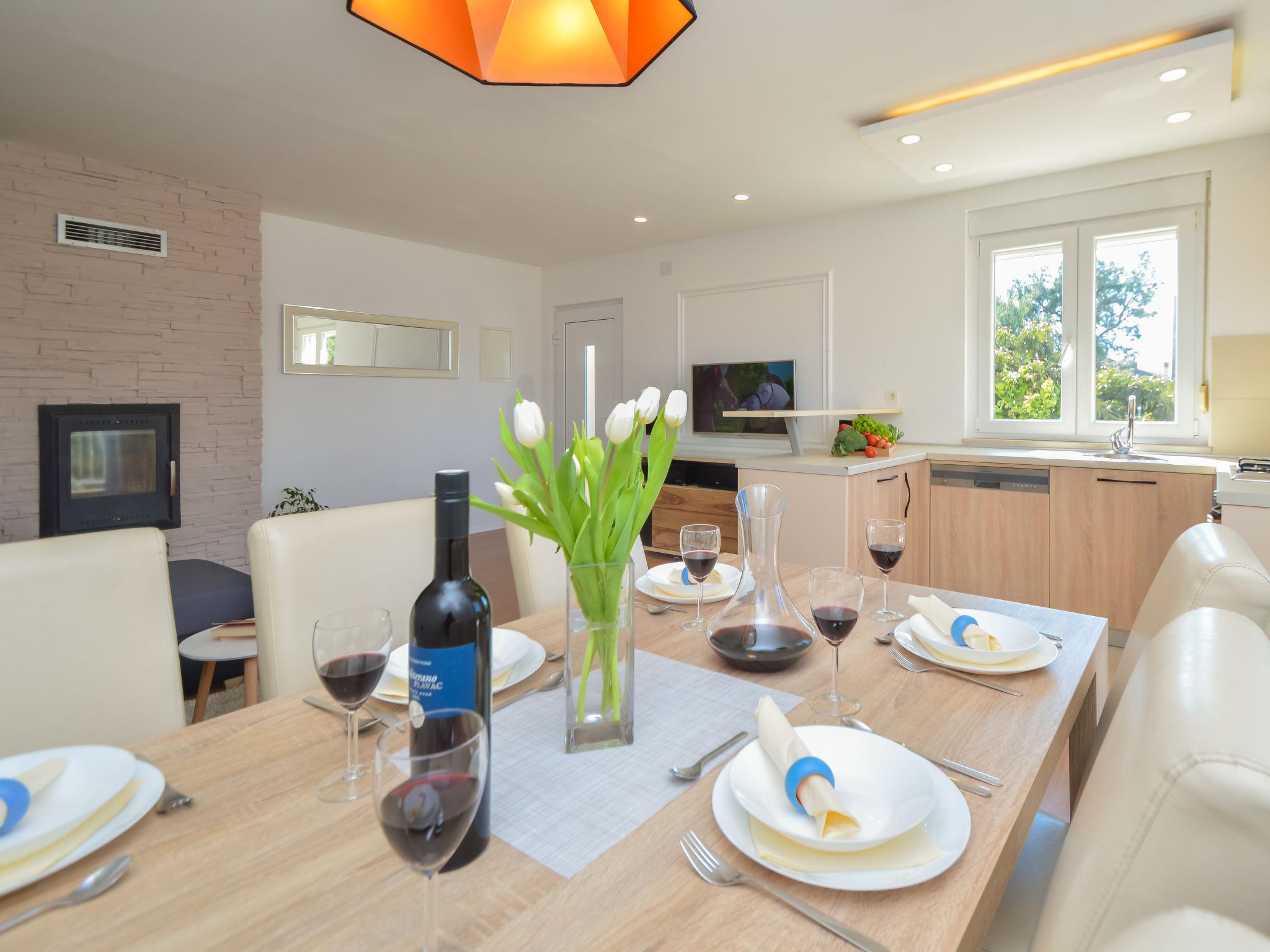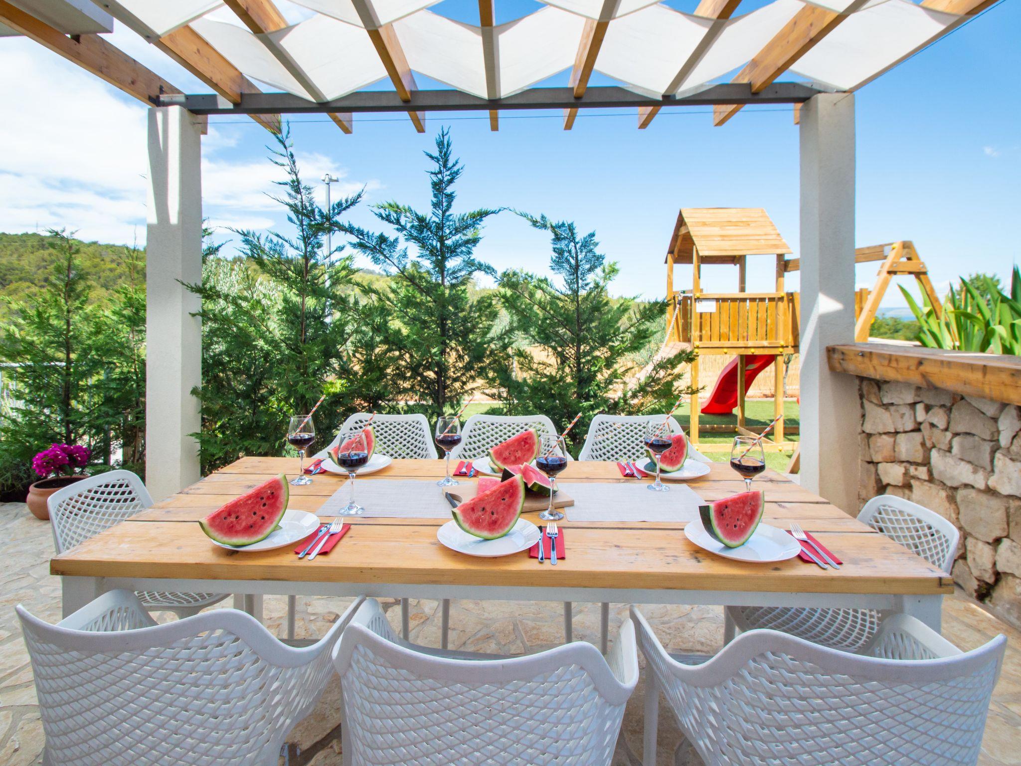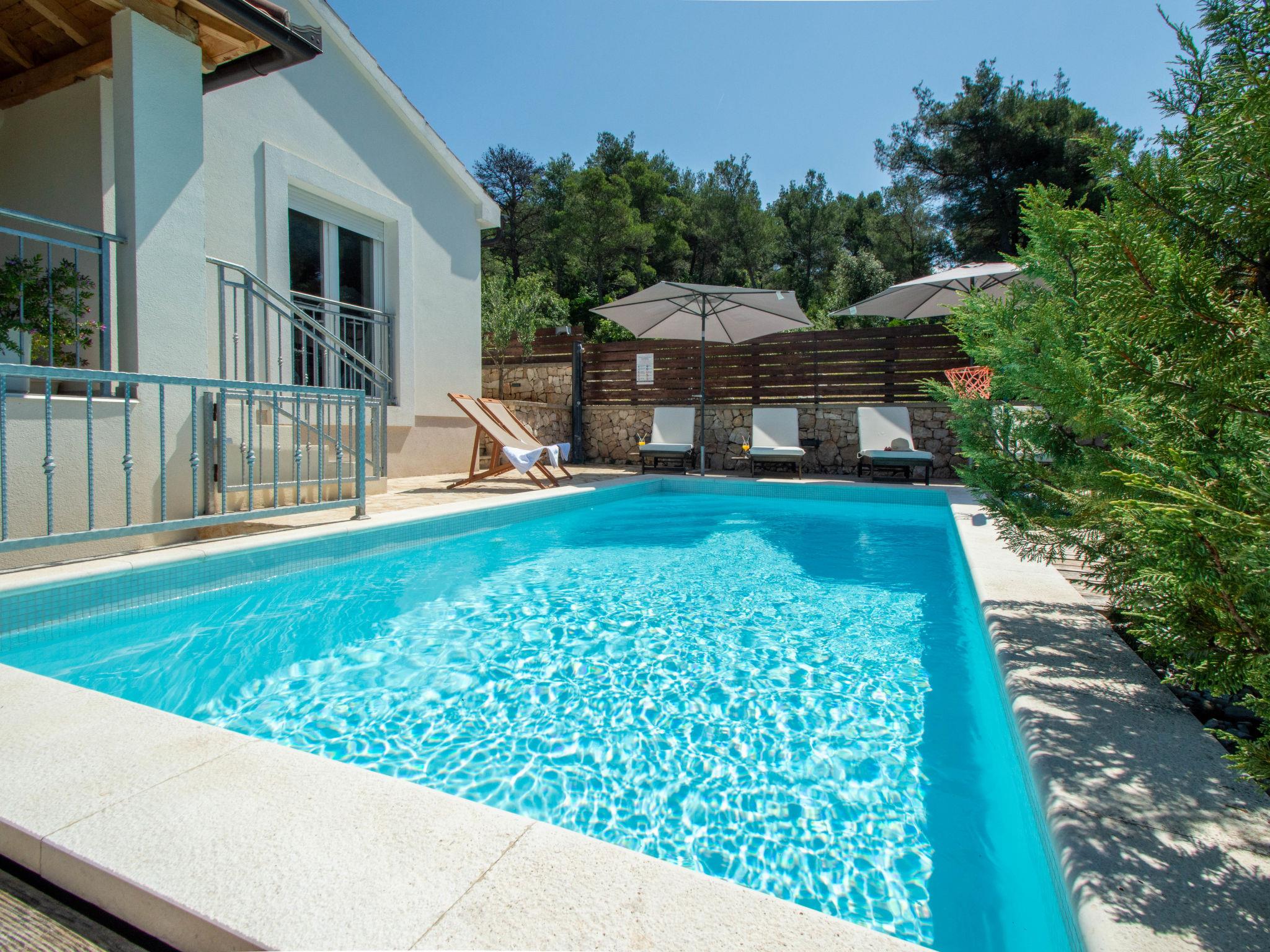 Bilice: Beautiful single-family house "Dalmacia", 2 storeys. 2.5 km from the centre of Bilice, 5 km from the centre of Šibenik, in a sunny position, 5 km from the sea, 2.5 km from the lake, located by a road. Private: property 500 m2, wildlife garden and trees, swimming pool angular (6 x 3 m, depth 150 cm, seasonal availability: 28.May. - 03.Oct.) with internal staircase. Outdoor shower, children's playground (slide, swing). In the house: internet access, washing machine. Parking (for 3 cars) at the house on the premises. Shop 1 km, restaurant 3.5 km, café 200 m, bus stop 600 m, pebble beach 5 km, bathing lake 2.5 km. Nearby attractions: NP Krka 10 km. Well-known lakes can easily be reached: Prokljansko jezero 2.5 km. Part of the house is closed and unoccupied.