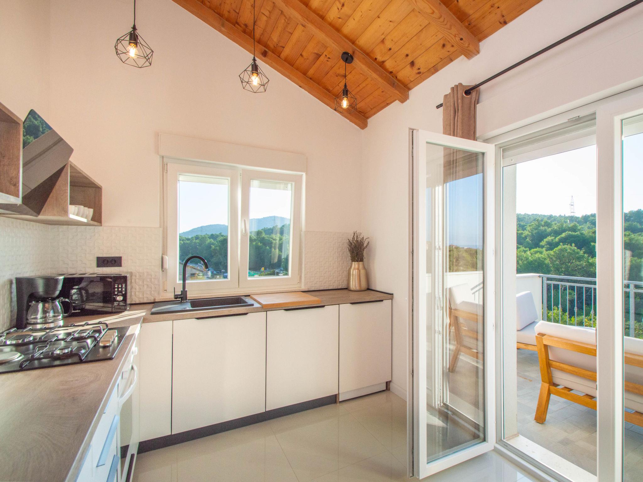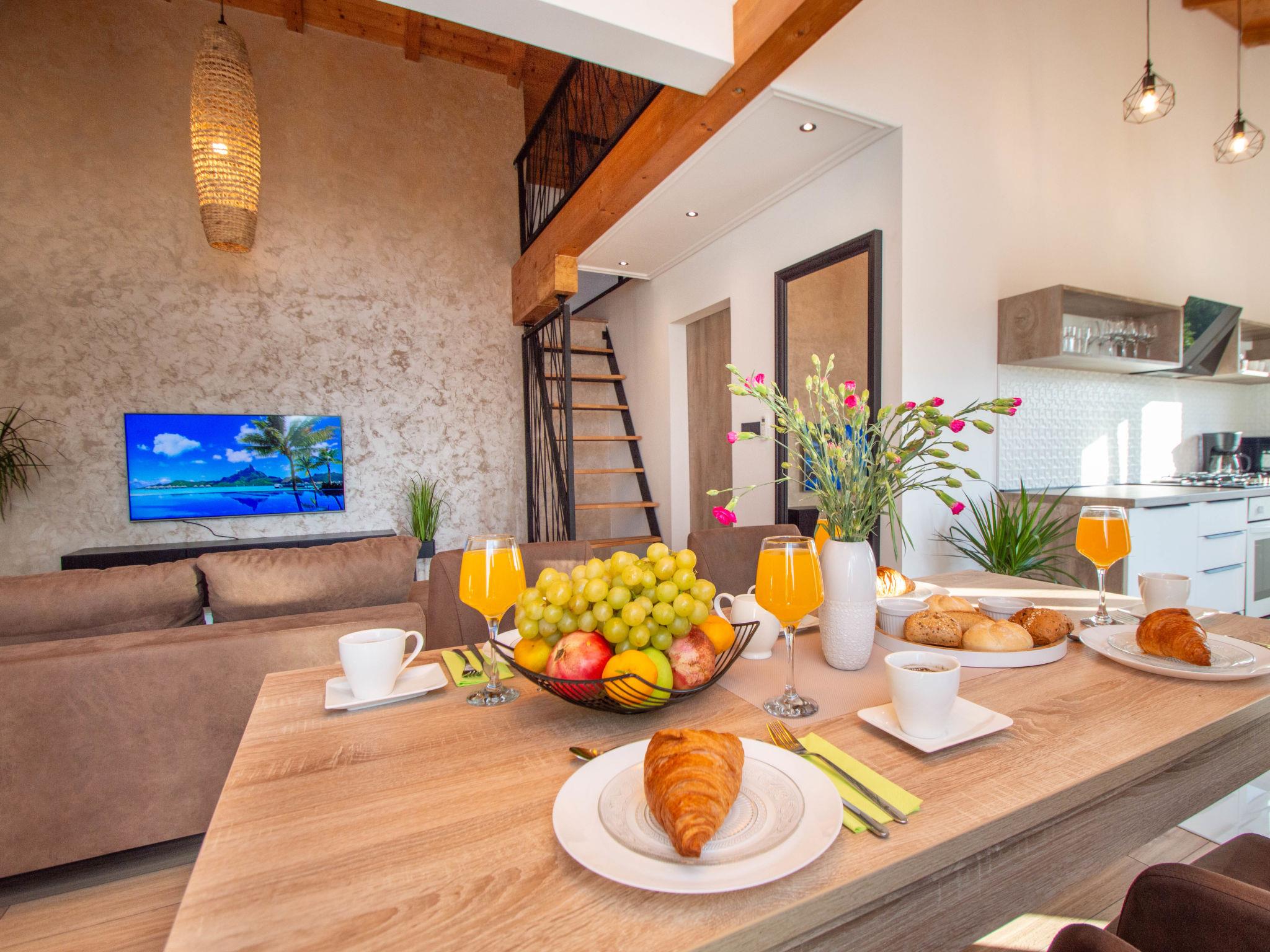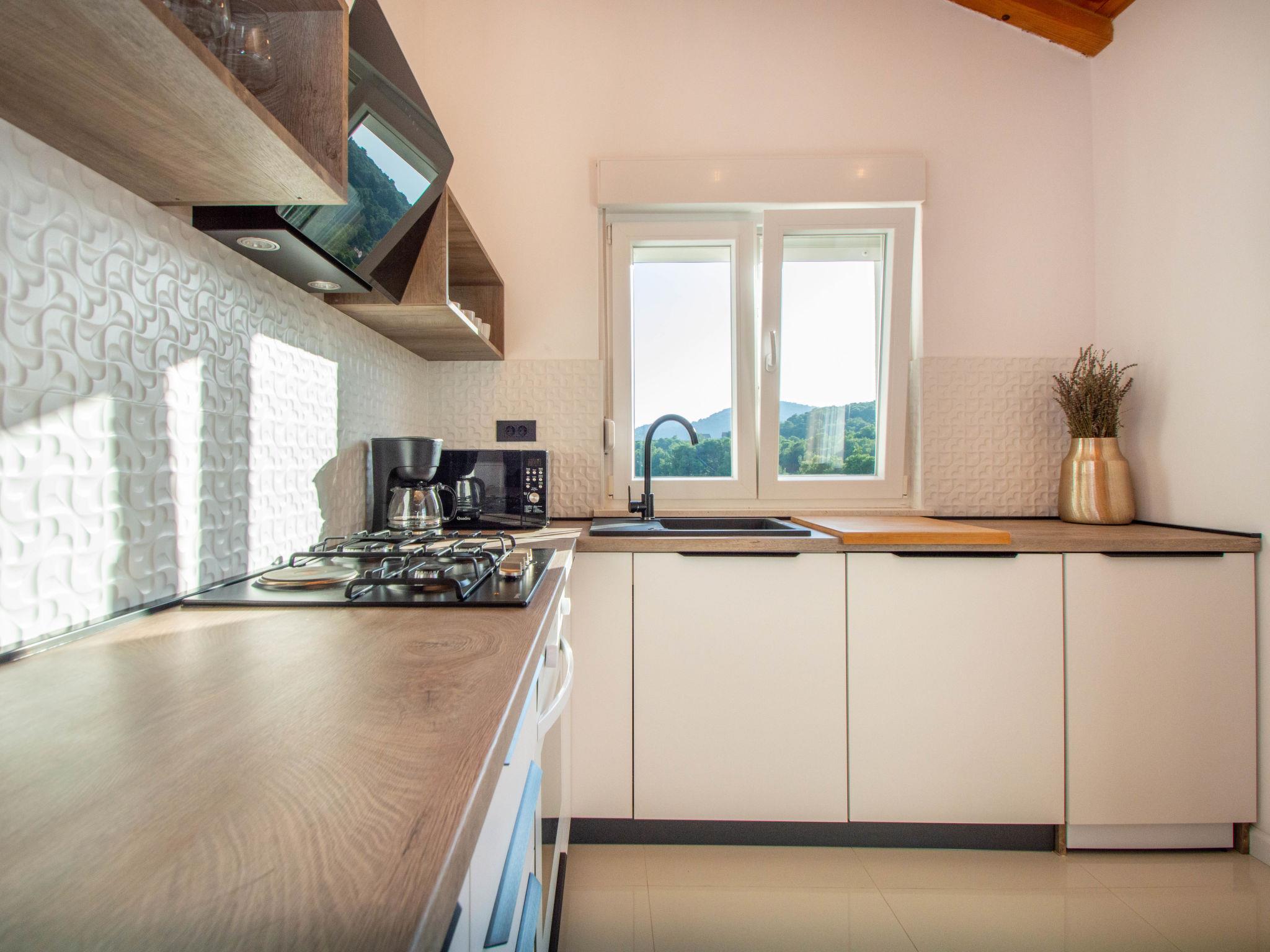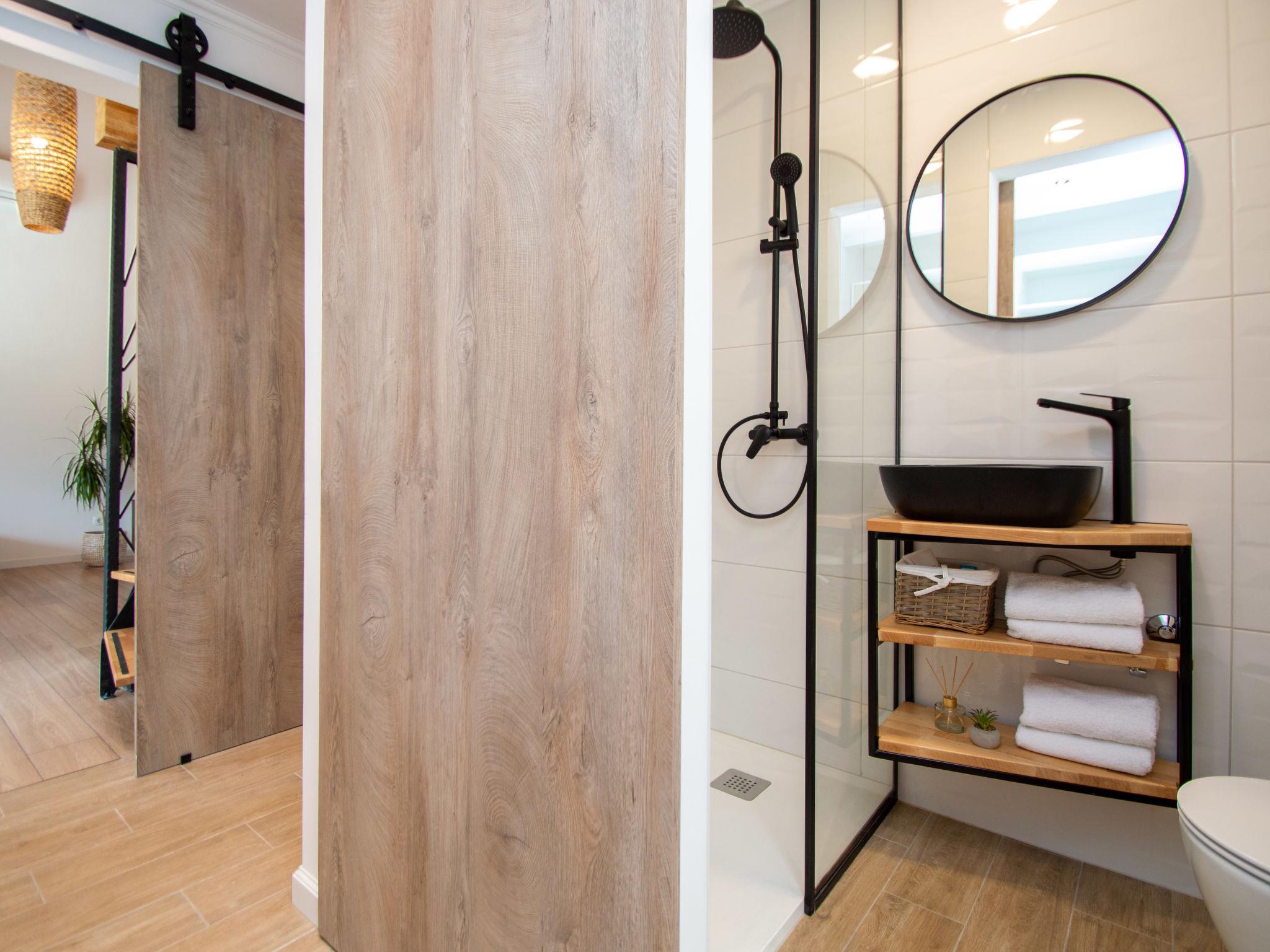 4-room house 118 m2 on 2 levels, south facing position. Cosy furnishings: living/dining room with open-hearth fireplace and satellite TV (flat screen), air conditioning. Exit to the terrace. 1 room with 1 french bed (160 cm, length 200 cm), TV (flat screen). Exit to the terrace. 1 room 7 m2 with 1 x 2 bunk beds (90 cm, length 200 cm). Open kitchen (4 hot plates, oven, dishwasher, toaster, kettle, microwave, freezer, electric coffee machine). Shower/WC. Upper floor: (exterior staircase) living/dining room with 1 double sofabed (140 cm, length 200 cm), satellite TV (flat screen), air conditioning. Exit to the terrace. (steep stair) open gallery with sloping ceilings, ceiling height 115 - 230 cm with rooflight with 1 french bed (160 cm, length 200 cm), air conditioning. Open kitchen (4 hot plates, oven, kettle). Shower/WC. Terrace 30 m2, terrace 18 m2. Terrace furniture, deck chairs. View of the swimming pool. Facilities: safe, iron, hair dryer. Internet (WiFi, free).