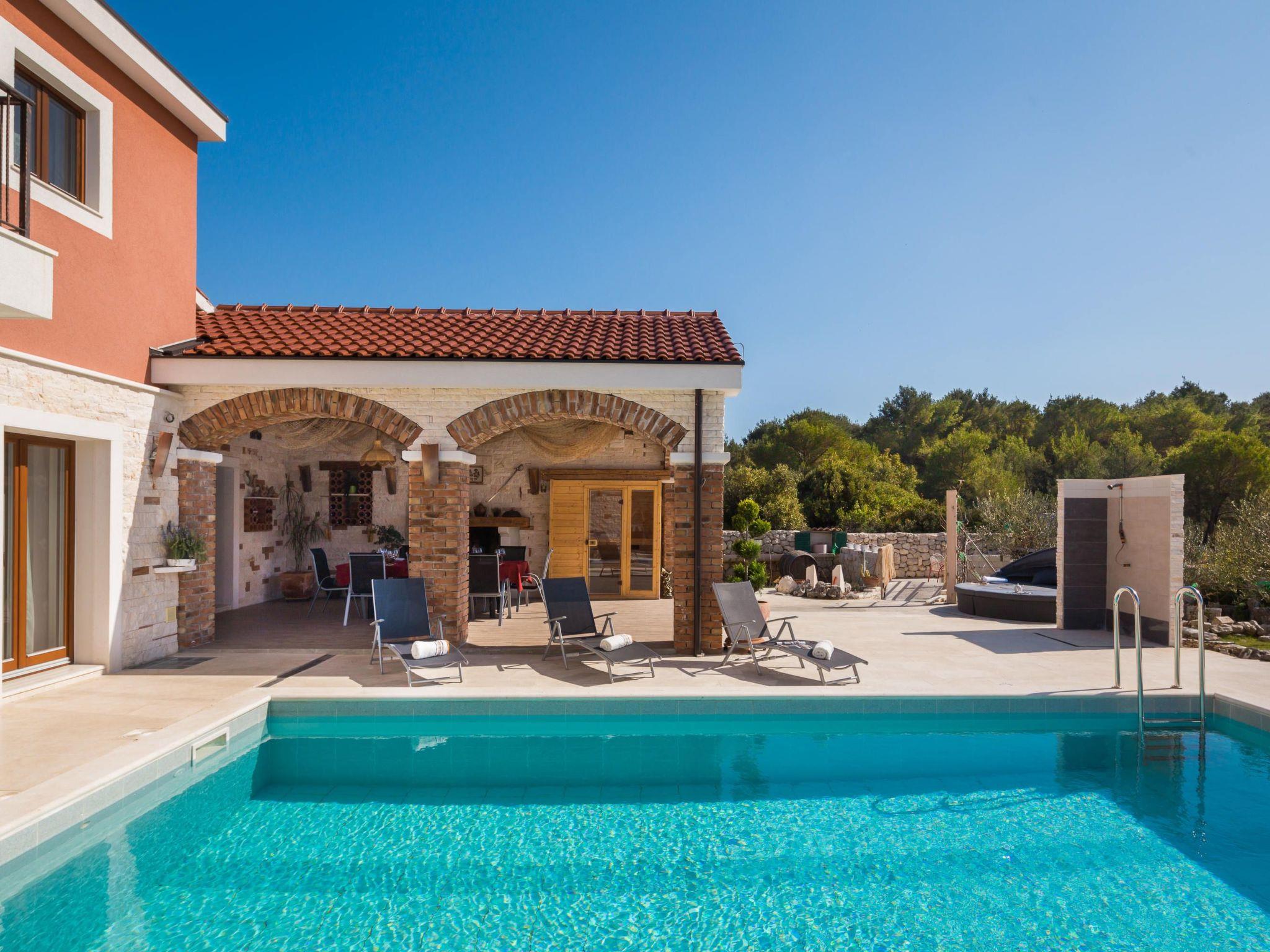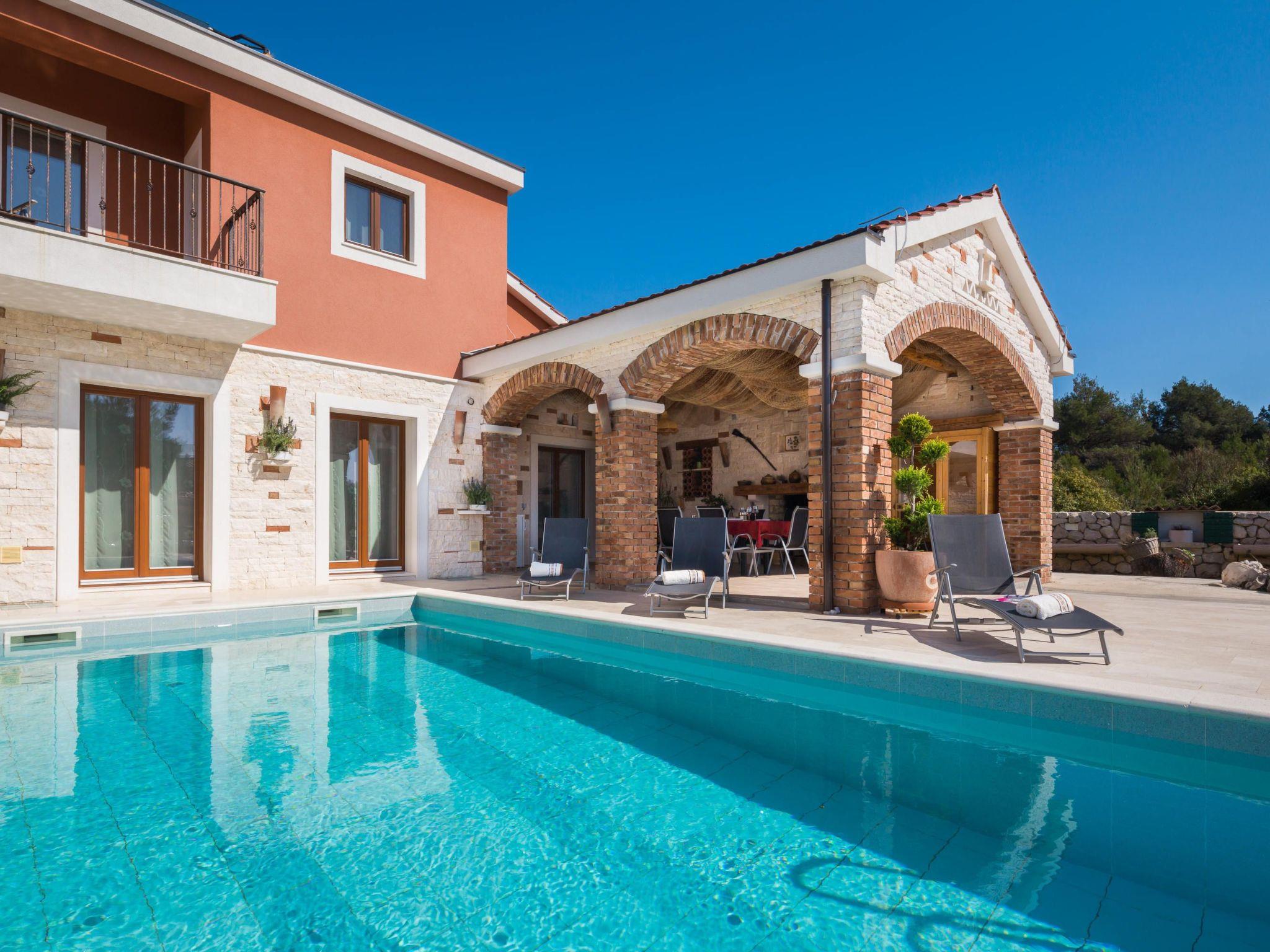 Welcome to your dream vacation retreat nestled in the pristine landscapes of Šibenik, Dalmatia. This serene villa is your gateway to an unforgettable holiday experience, where you're invited to relax and soak in the beauty of the Dalmatian coast. With three elegantly appointed bedrooms and four fully equipped bathrooms, this villa offers privacy and comfort for up to 8 guests. Whether you're lounging by the private pool or gathering around the fireplace, every moment promises to be as delightful as the next.