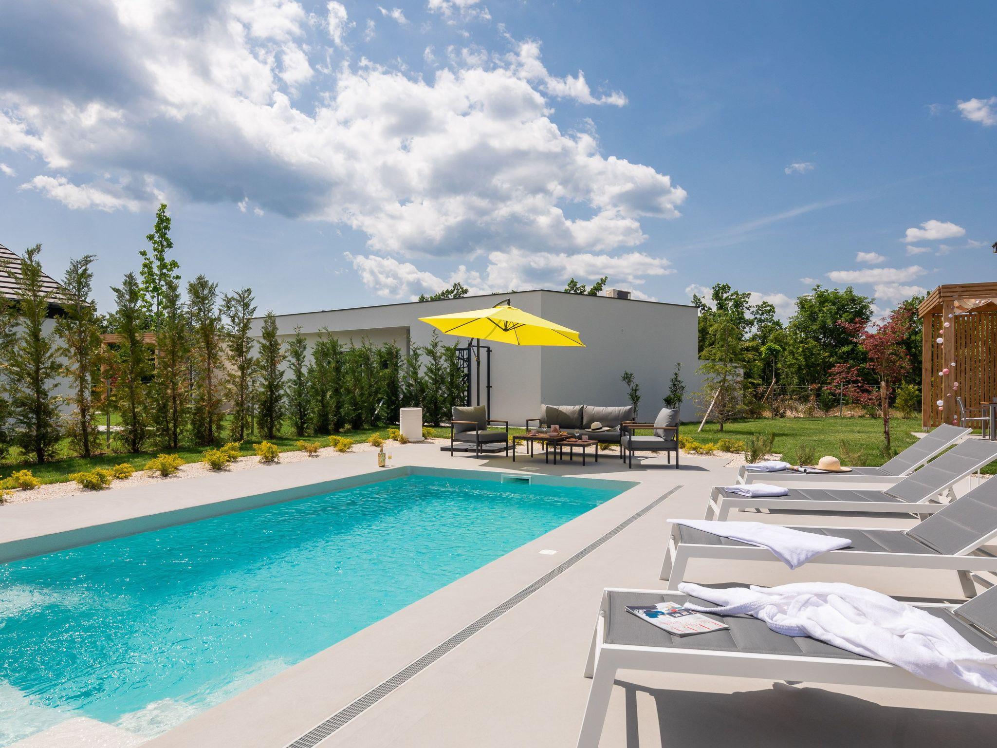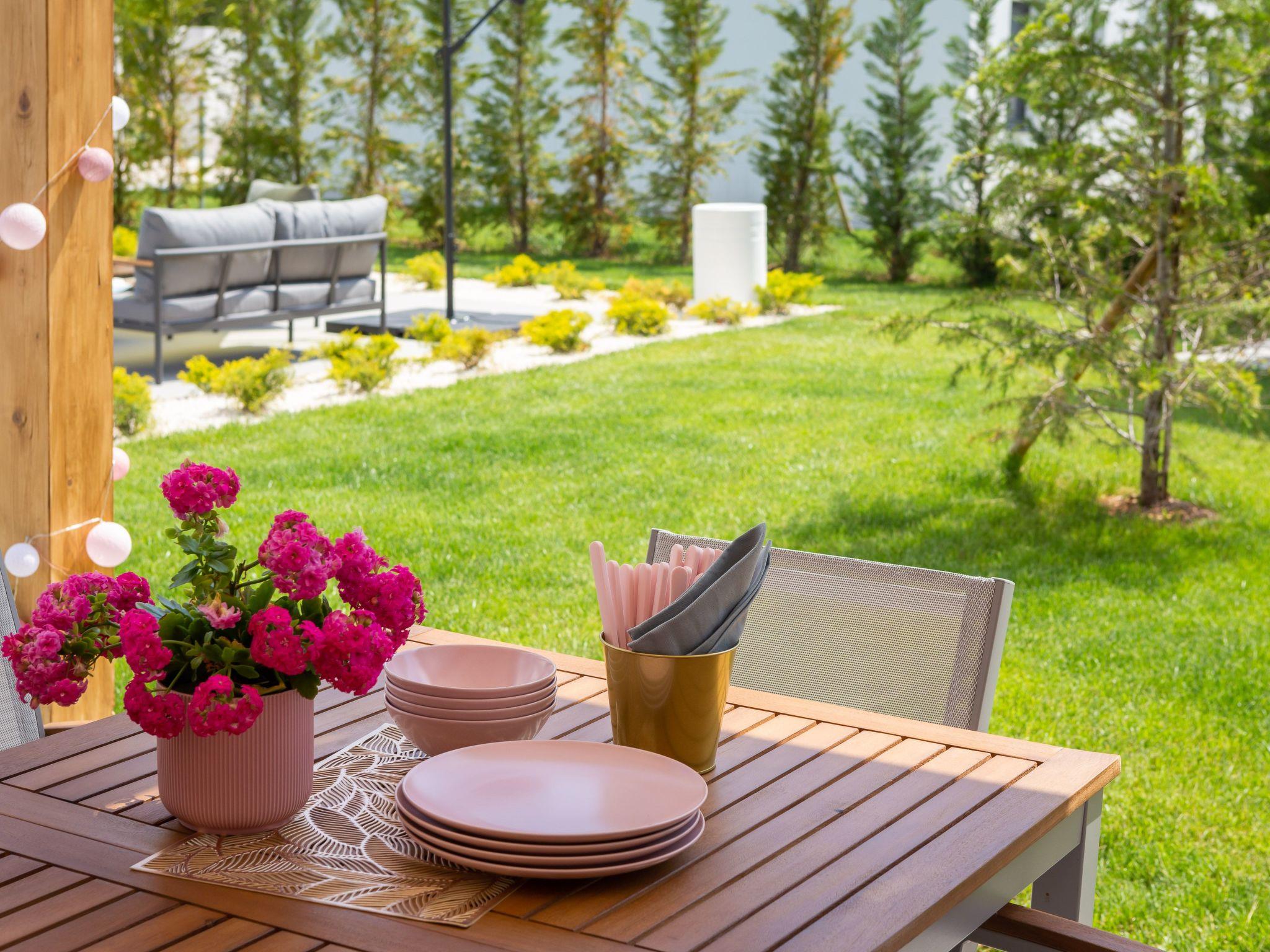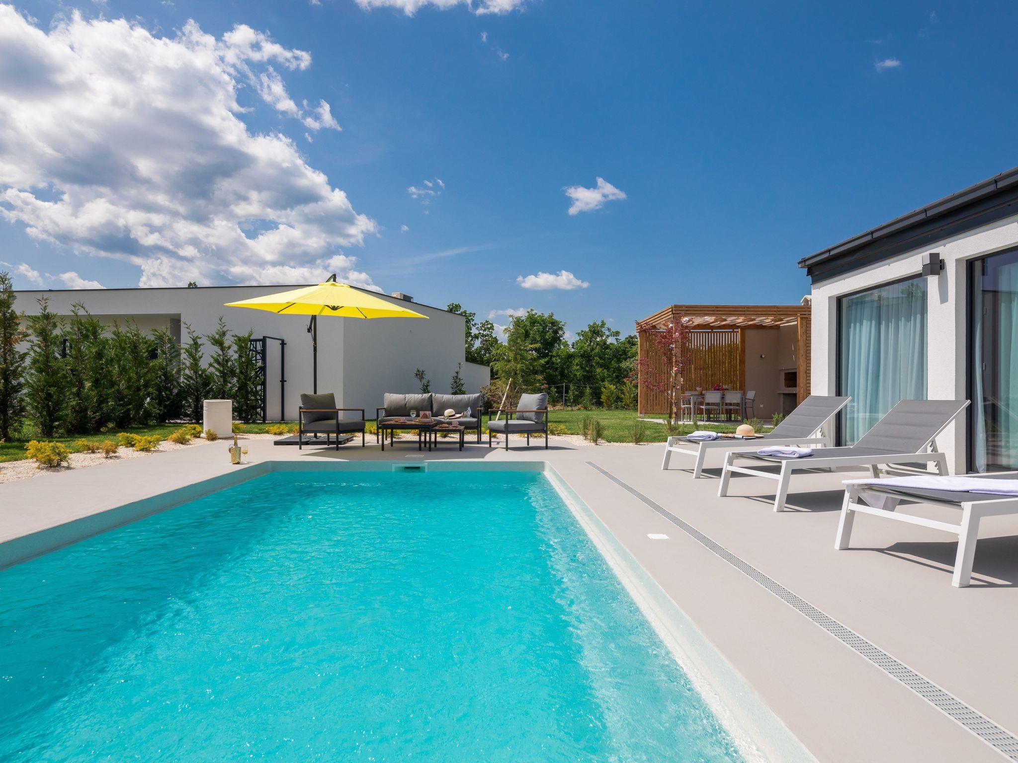 Just like you can cook in the indoor area, you can do it in the outdoor. Right by the beautiful outdoor dining area, under a wooden arbour, is the outdoor kitchen with a BBQ. While you are preparing your meals, the rest of the crew can swim in the pool, tan on the loungers, or drink a cocktail on the garden furniture.