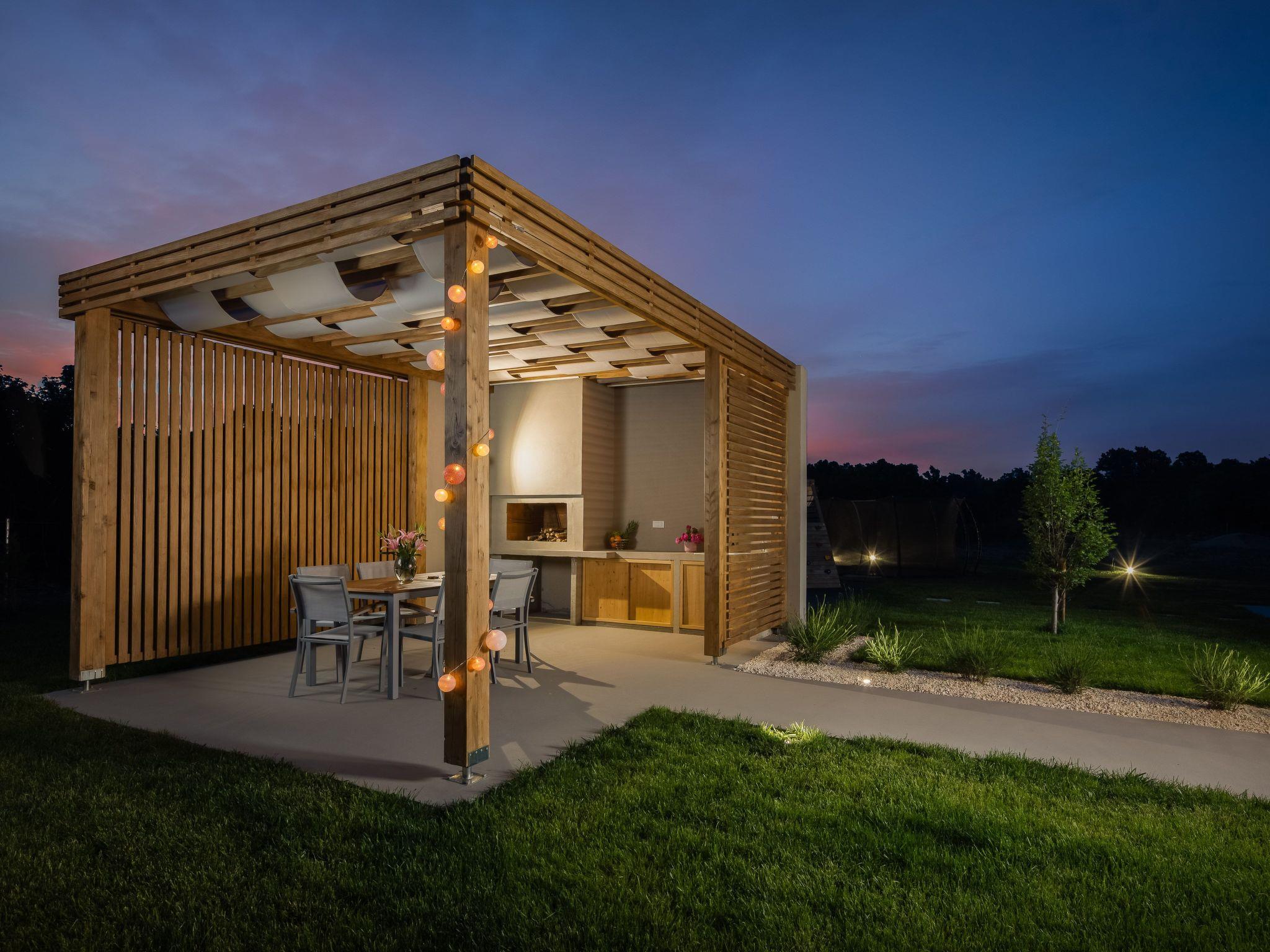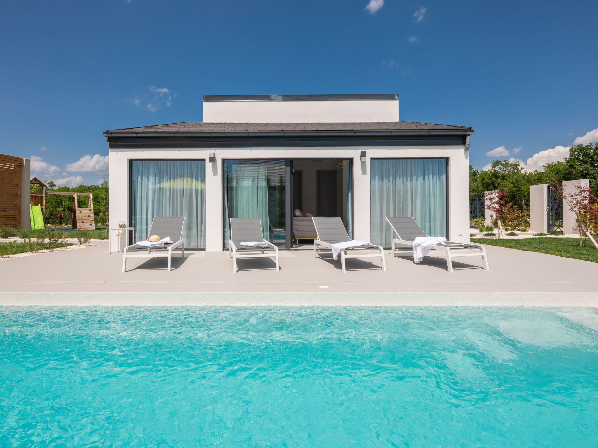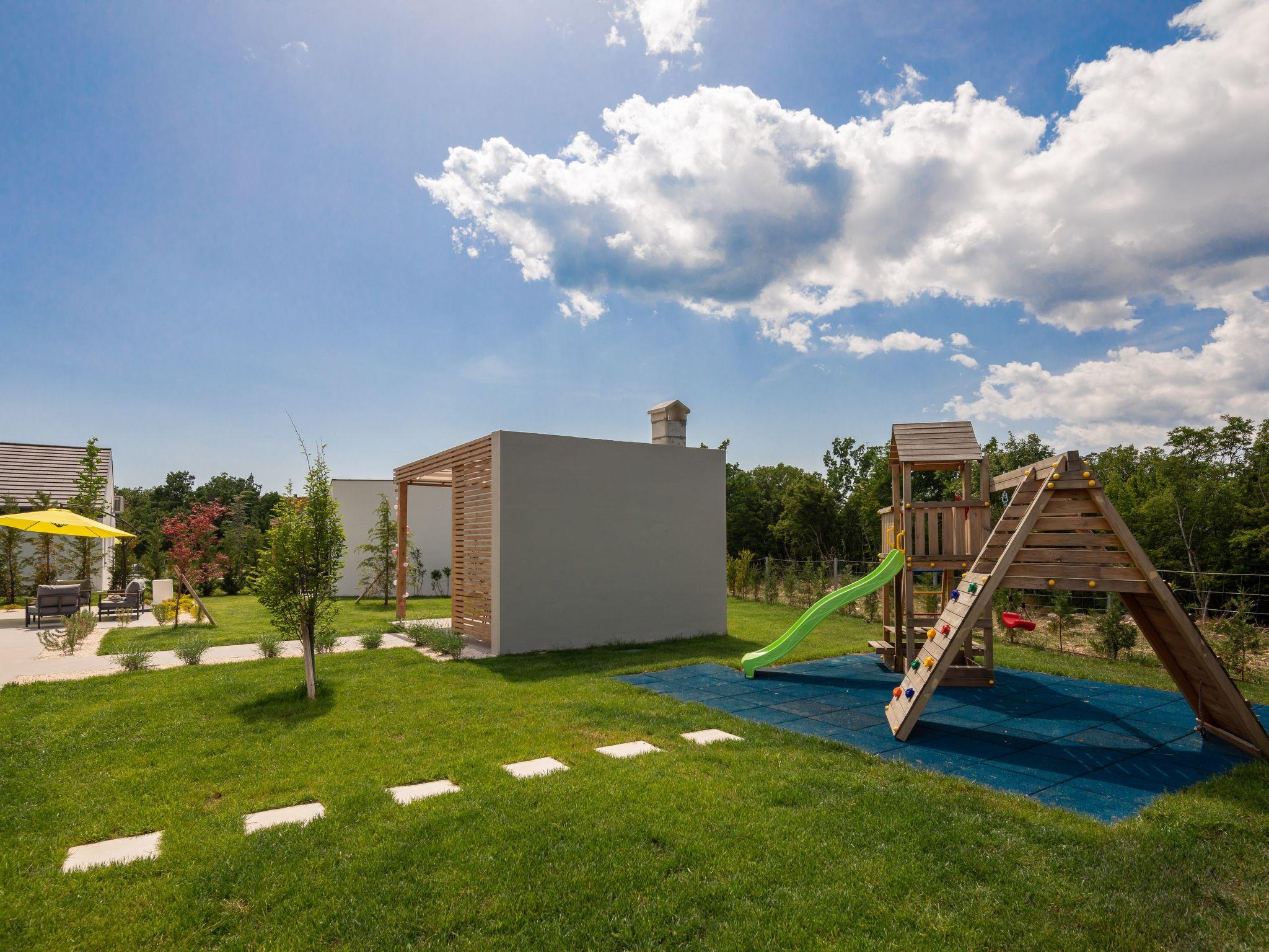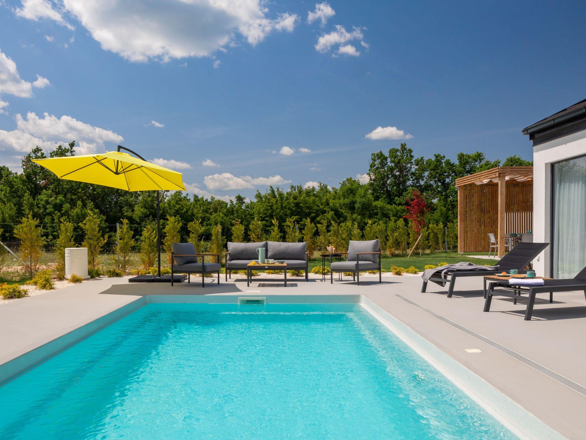 Just like you can cook in the indoor area, you can do it in the outdoor. Right by the beautiful outdoor dining area, under a wooden arbour, is the outdoor kitchen with a BBQ. While you are preparing your meals, the rest of the crew can swim in the pool, tan on the loungers, or drink a cocktail on the garden furniture.