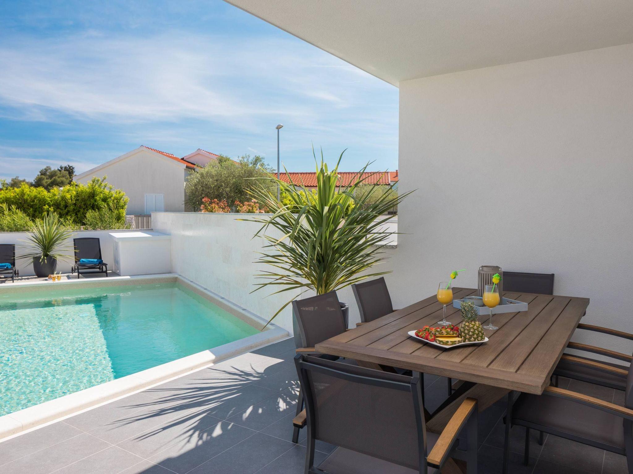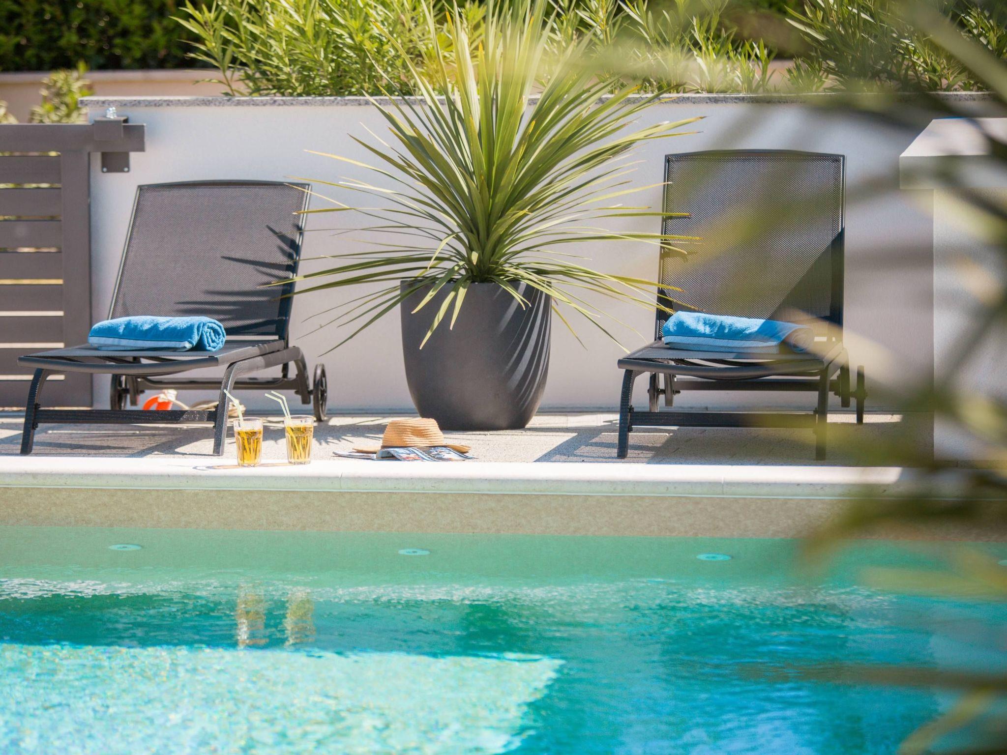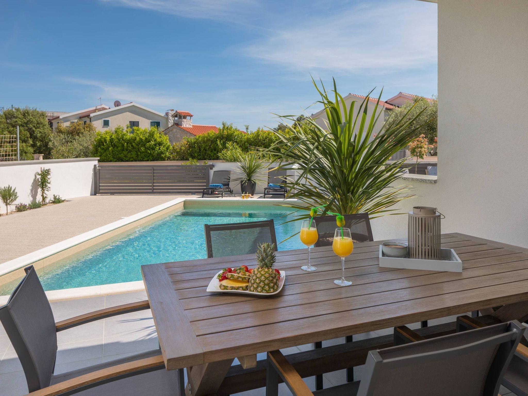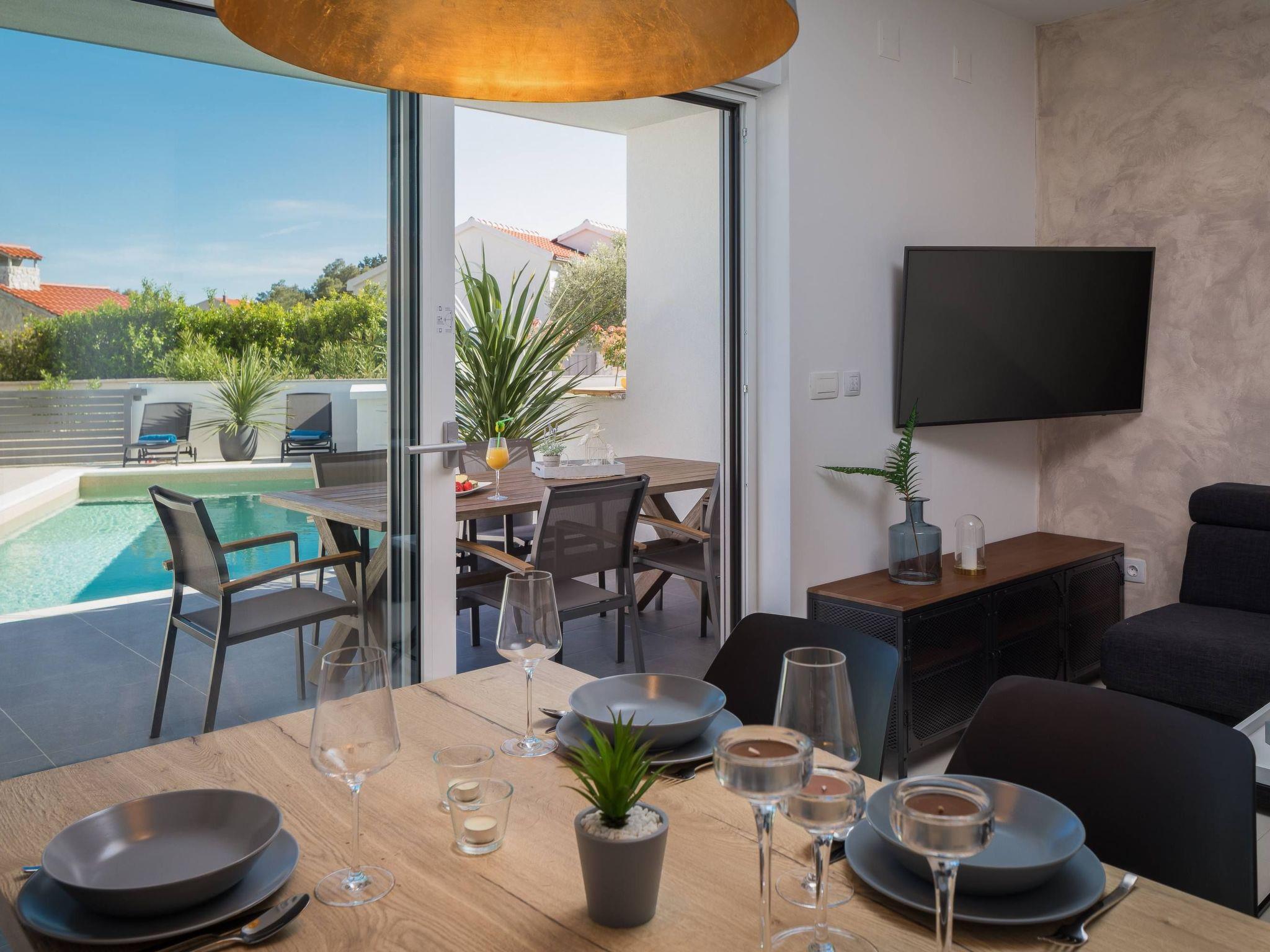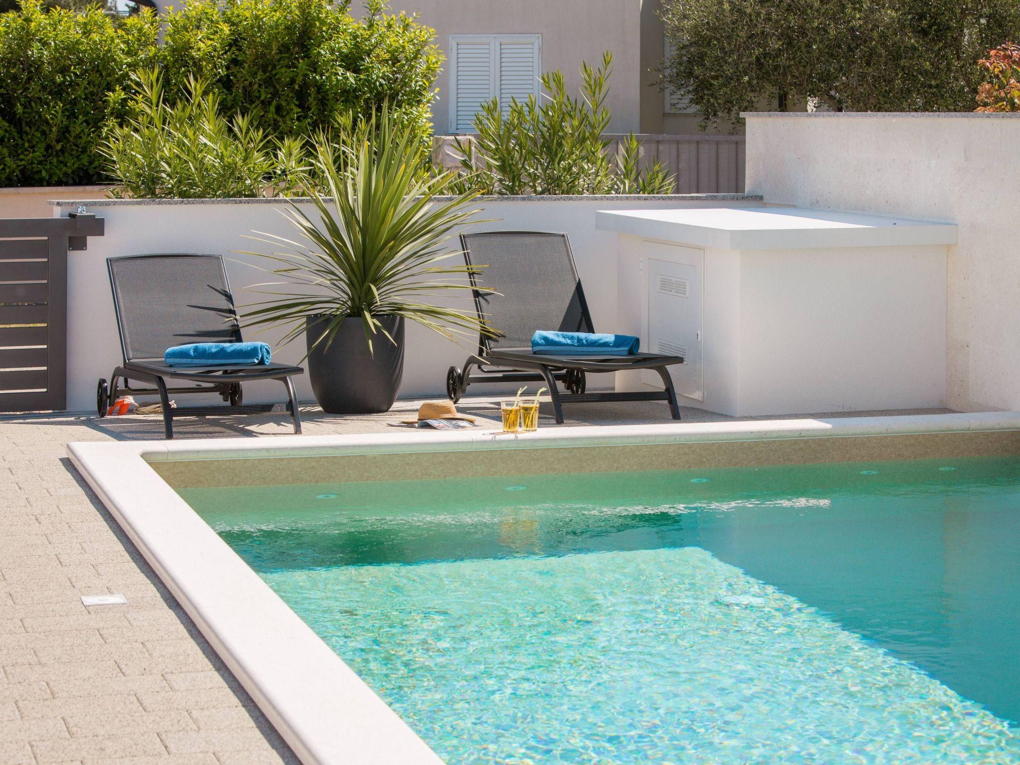 Villa Sibinium is a newly built, modern furnished semi-detached house, only 350 m from a pebble beach and less than 15 minutes drive by car from city of Šibenik, providing exceptional comfort whether you rest in a private garden with olive trees, Mediterranean herbs and 30m2 pool with night lights, or in a conditioned spacious interior fully equipped for your enjoyable and relaxing vacation.