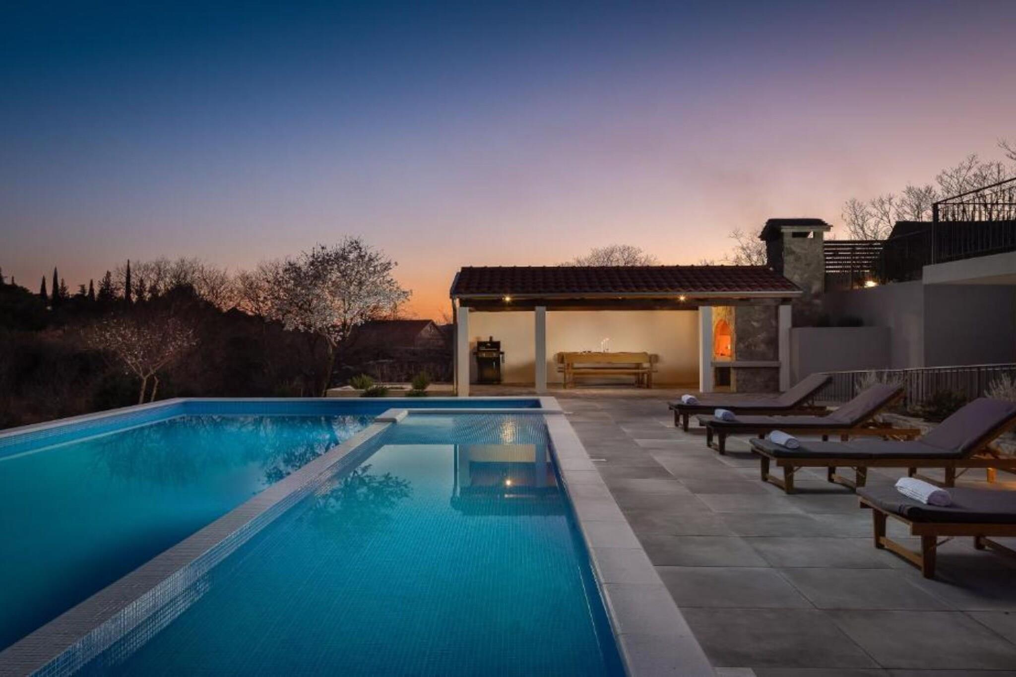 Villa Casa di Pietra is a luxurious holiday retreat located in the picturesque region of Šibenik, within the Šibenik-Knin County of Croatia. The villa is nestled in a tranquil countryside setting, approximately 8 kilometers from the historic town center of Šibenik, making it an ideal location for those seeking peace while being close to cultural and natural attractions. Villa Casa di Pietra is an ideal getaway for families, friends, or couples looking for a mix of relaxation, adventure, and cultural exploration in the heart of Croatia. Note: Parking is not available. Wi-Fi is available throughout the property. Pets are not allowed. This three-bedroom can accommodate up to eight guests. It features a Video game console, Cable TV, Flat screen TV, Satellite TV, Billiards, Table tennis and is combined with a living room and kitchen. The private bathroom is equipped with a shower and toilet. Thanks to its excellent location, everything you'll need for your vacation is just a short walk away from the property. Grocery stores-4.00 km, cafes-3.00 km, restaurants—7.00 km. The beach is 9.00 km away from the property. The airport is 54 km away from the property.