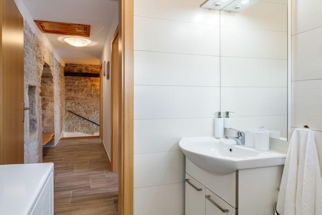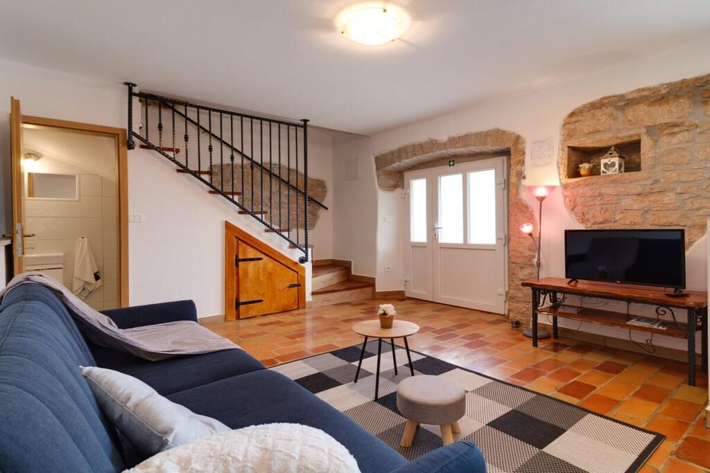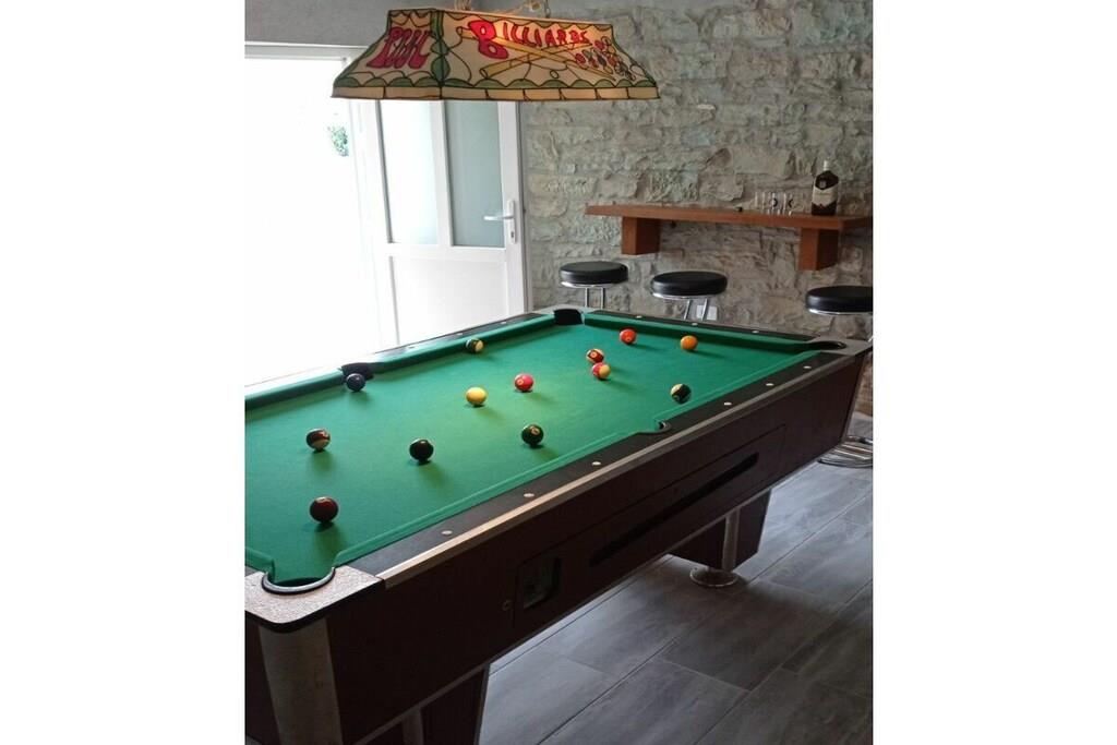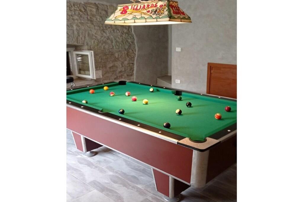 Die Fläche einer Villa beträgt 70 m2 mit zwei Etagen. Im Erdgeschoss befindet sich eine Küche mit einem kleinen Badezimmer. Treppensteigen im ersten Stock sind zwei Schlafzimmer und ein Badezimmer mit Dusche und Waschmaschine. In der Mitte des Hauses, wo sich ein weiterer Raum befindet, stehen Ihnen Billard und elektronische Darts zur Verfügung. Es gibt auch ein weiteres zusätzliches WC. Das Wichtigste ist ein großer Garten mit einem Pool von 48 m2 und ein Grill mit Gartenmöbeln. Das gesamte Erlebnis Ihres Urlaubs wird durch den istrischen Stil des Gartens ergänzt, der von Grün, Olivenbäumen und istrischem Stein umgeben ist. Natürlich sind die Haustiere willkommen. Vor dem Eingang zum Garten befindet sich ein Parkplatz für 2 Autos.