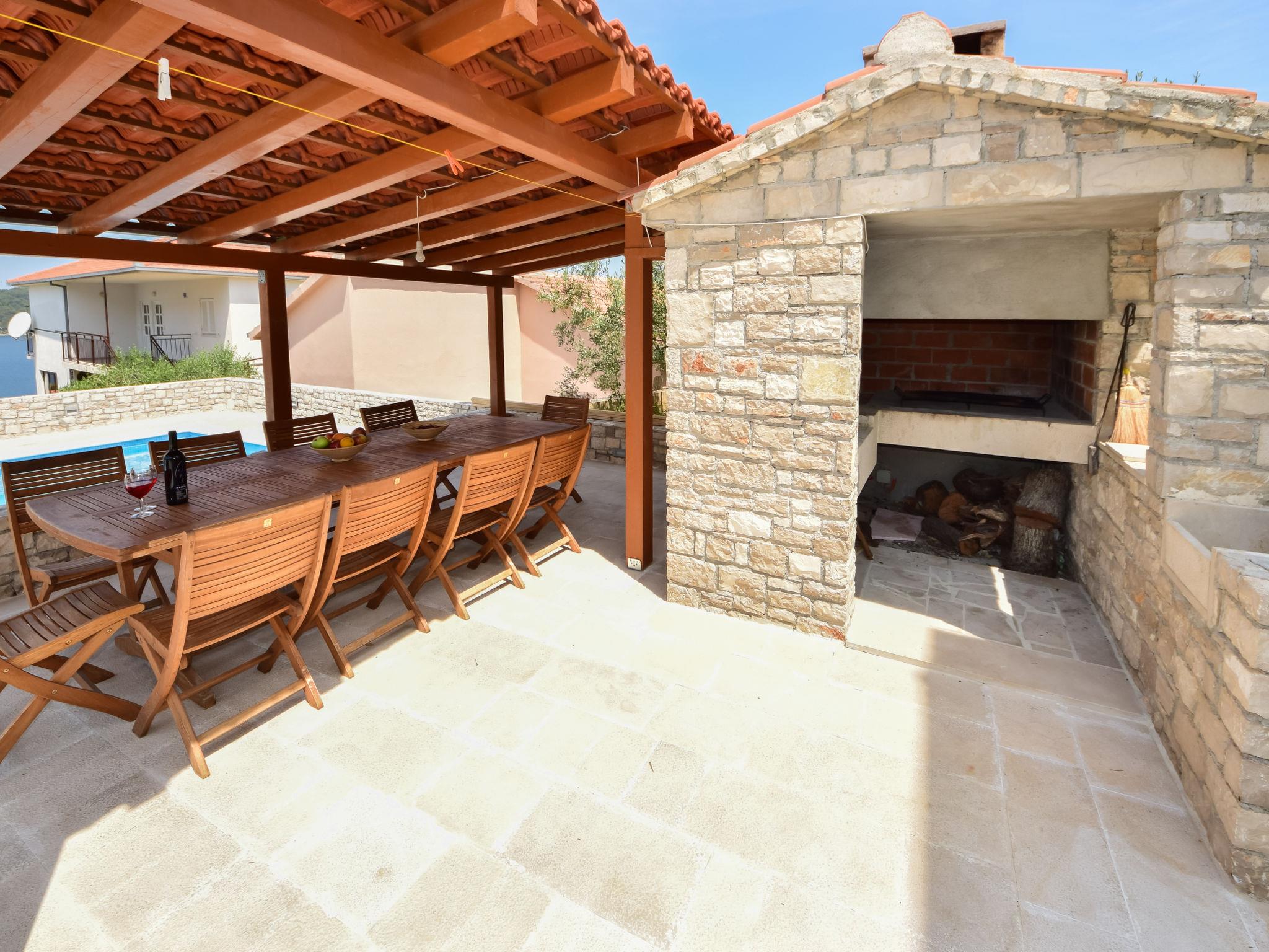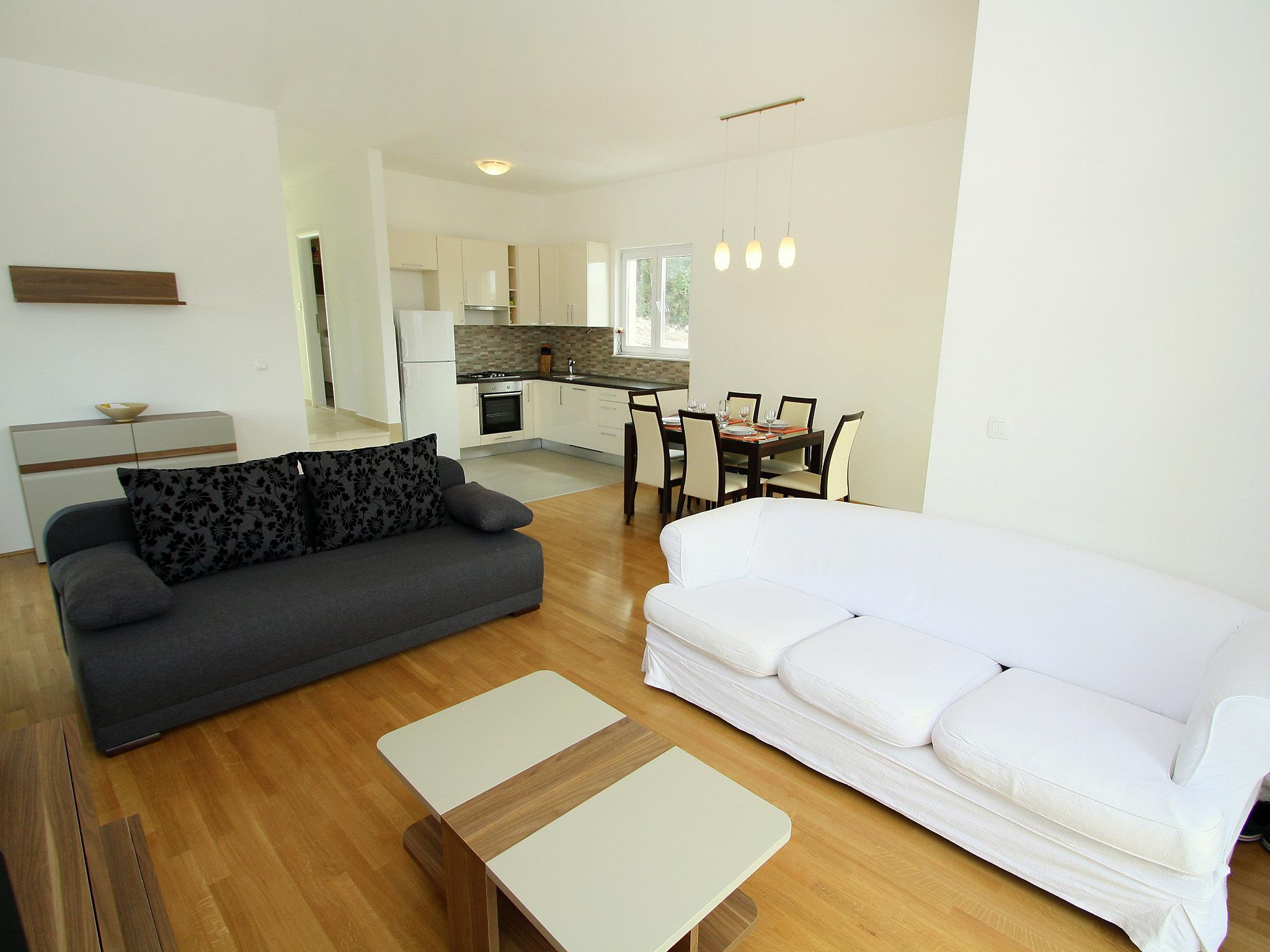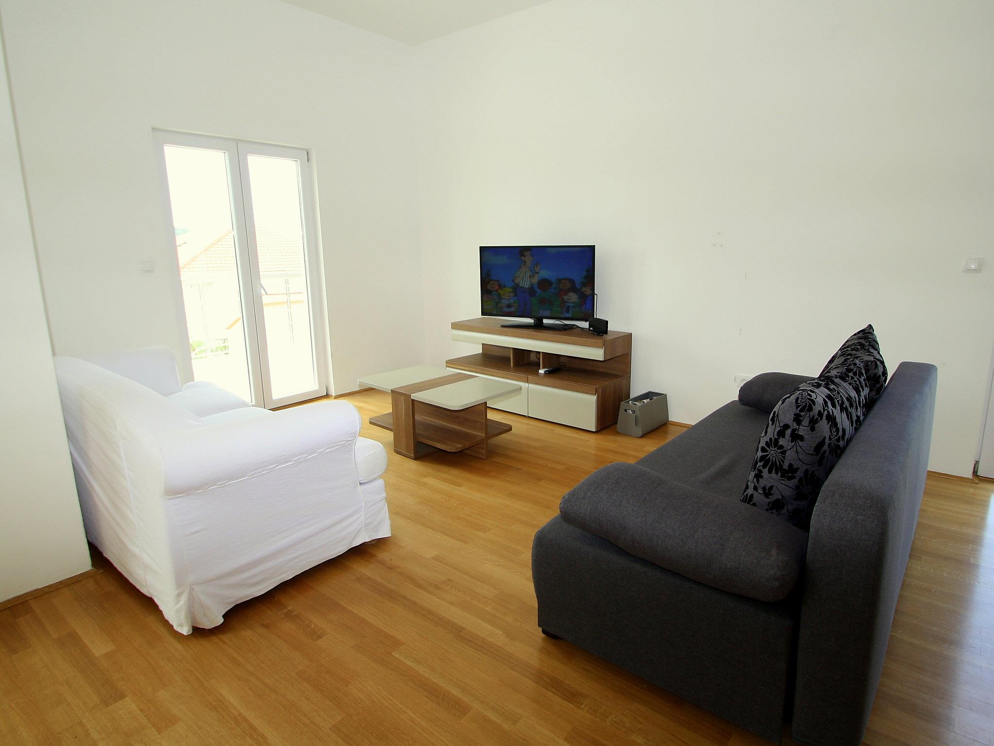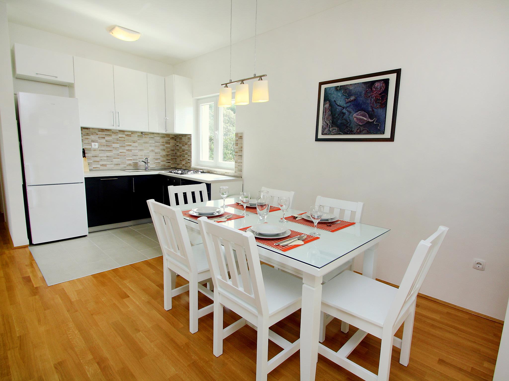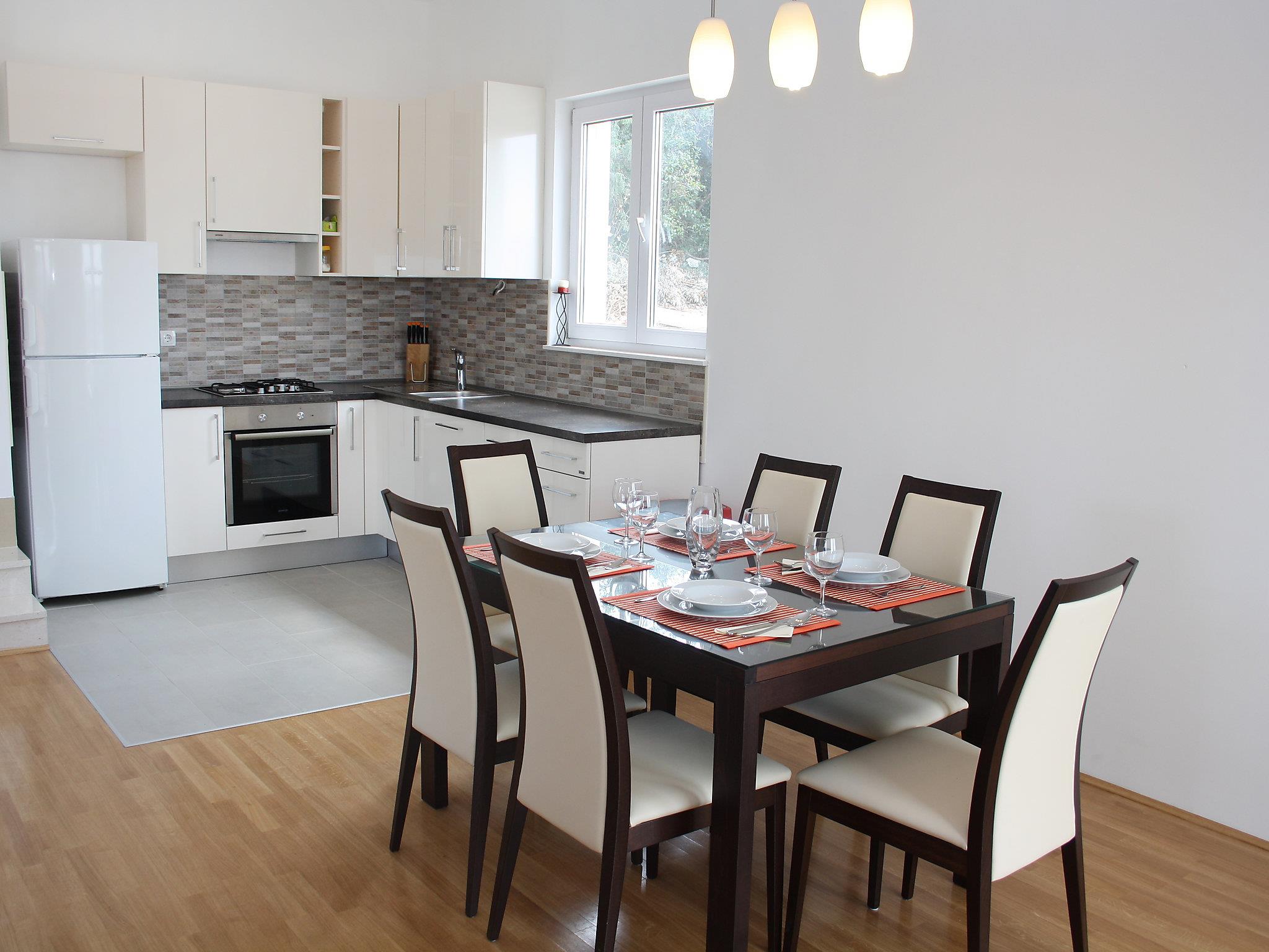 3-family house "Gabriela", 3 storeys. In a quiet, sunny, elevated position, 200 m from the sea, 200 m from the beach. Private: swimming pool angular (9 x 3 m, 29 m2, depth 150 cm, seasonal availability: 01.May. - 01.Oct.) with internal staircase. Outdoor shower, garden furniture, barbecue. In the house: internet access, washing machine. Parking at the house on the premises. Shop 5 km, restaurant 250 m, bus stop 550 m, pebble beach 500 m, rocky beach 200 m. Shop 850 m (15.06.-15.09.).