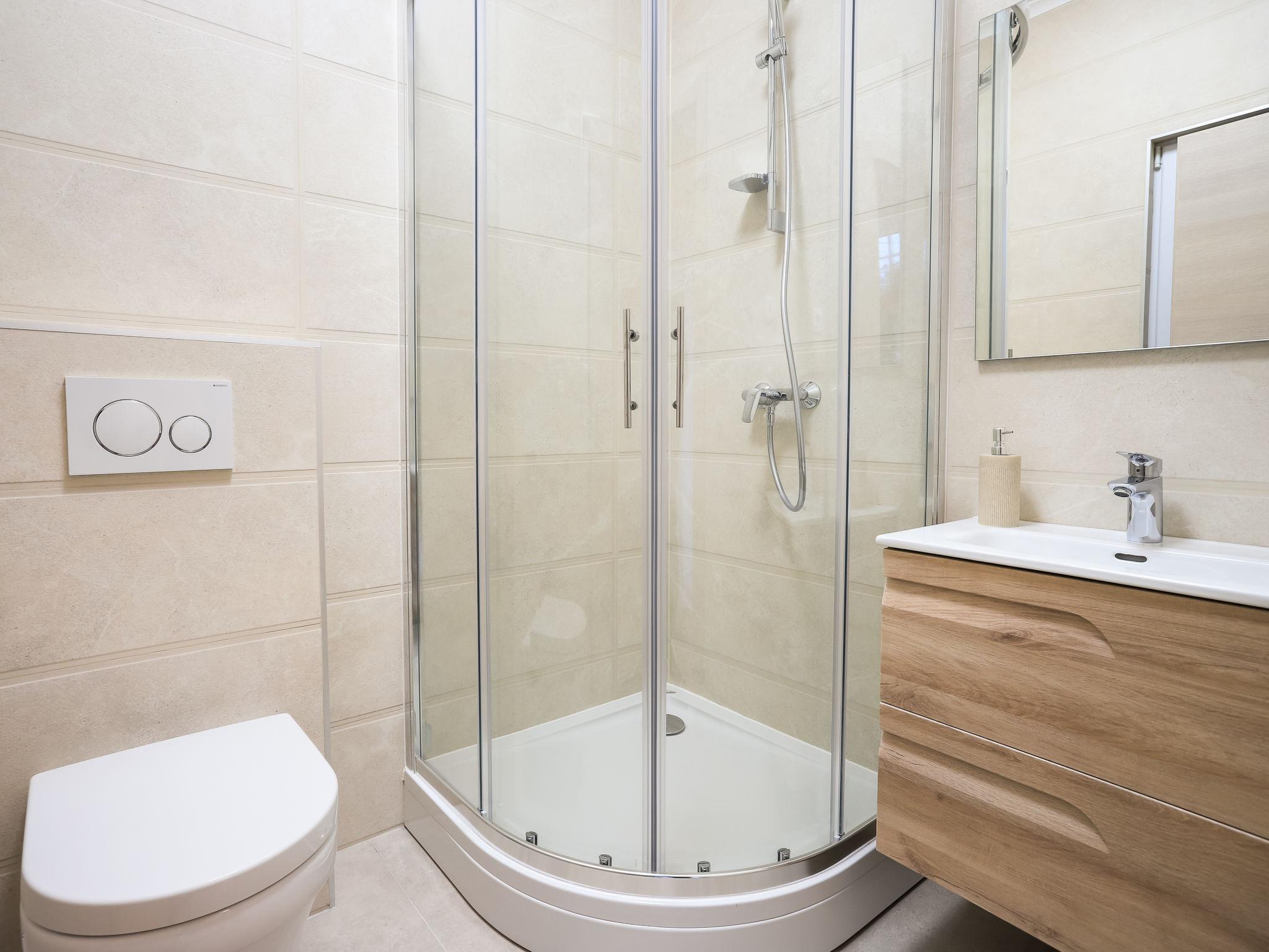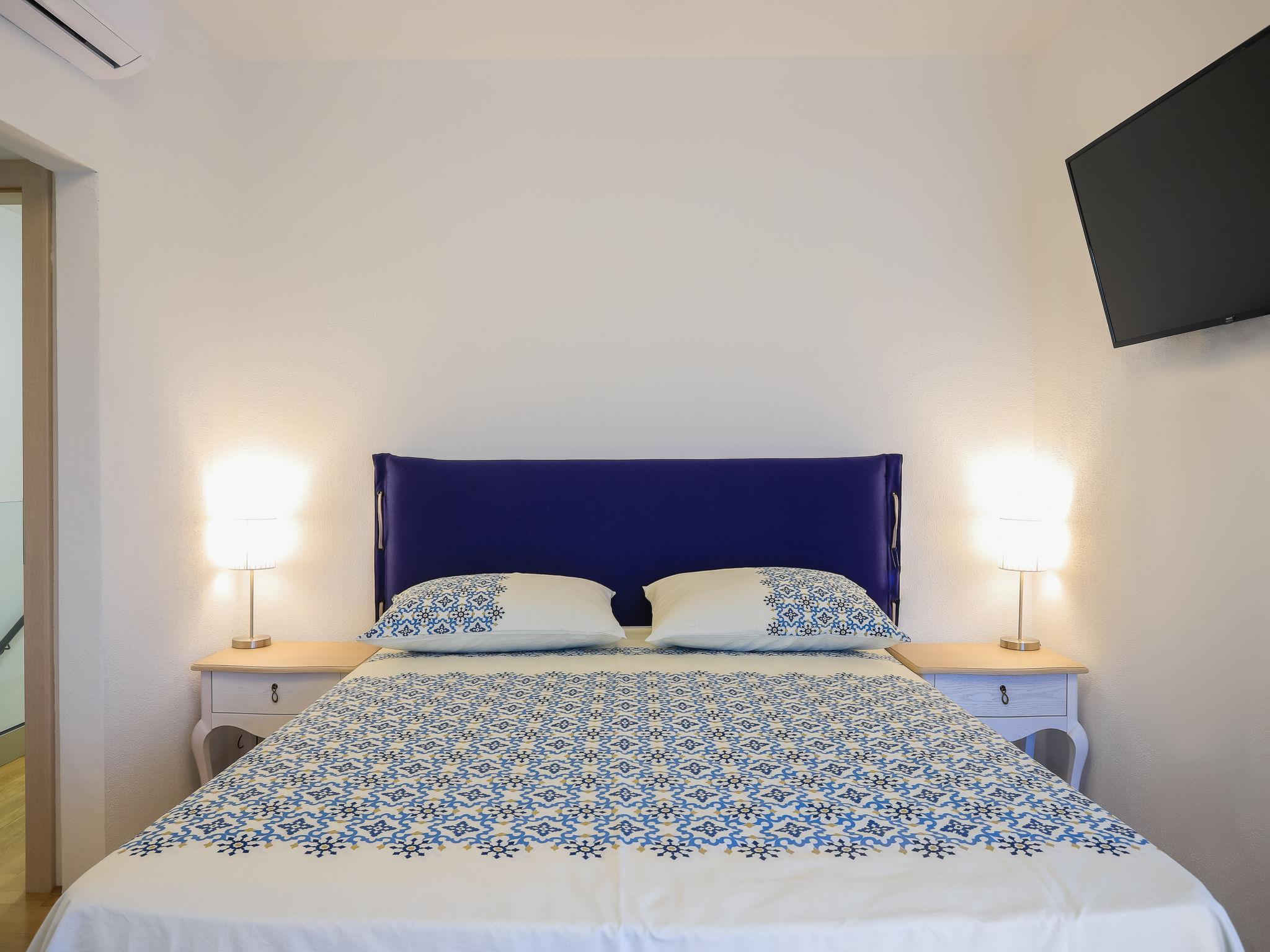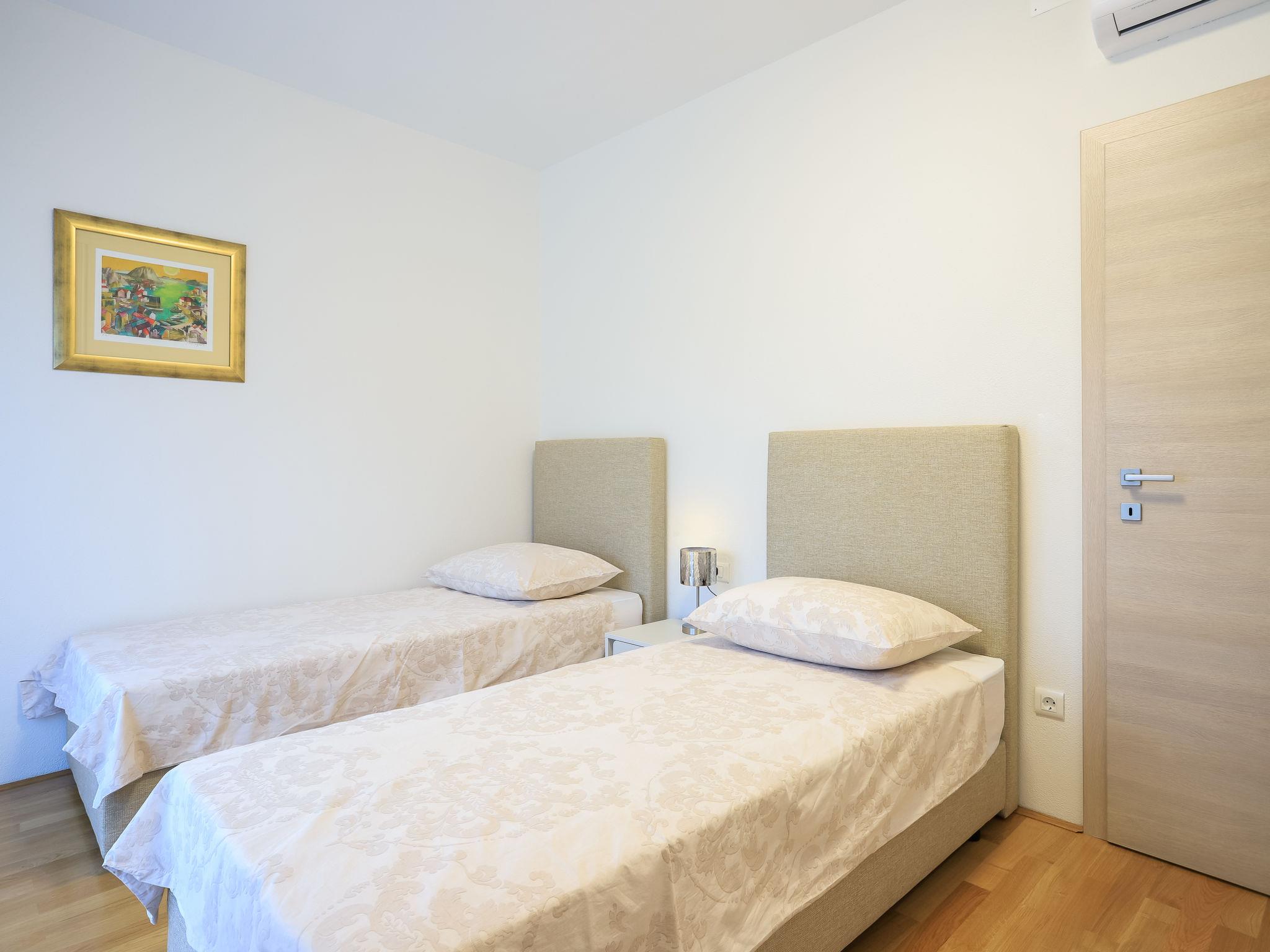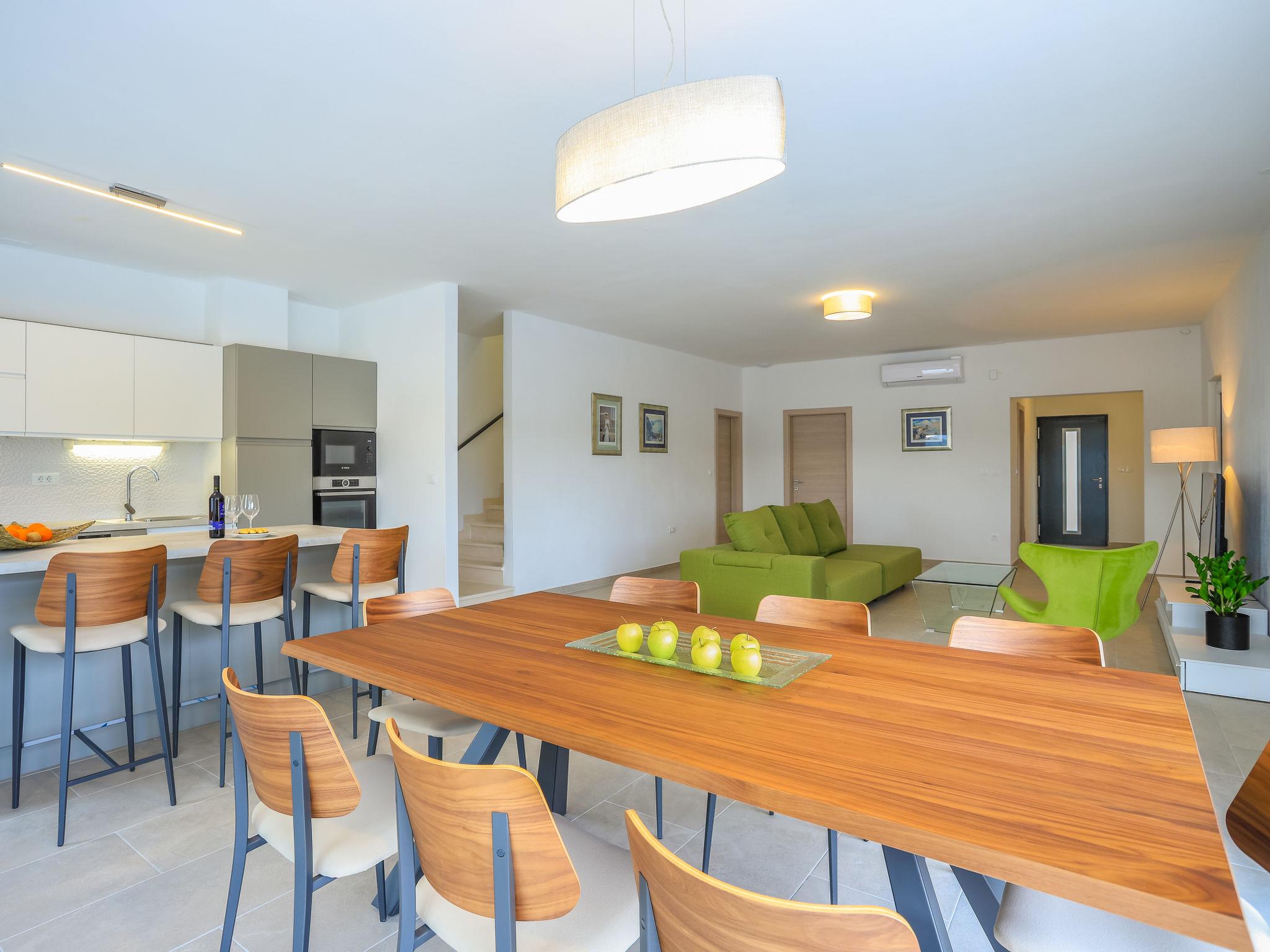 Single-family house "Jakša", 2 storeys, built in 2019. In a quiet, sunny, elevated position, 200 m from the sea, 200 m from the beach. Private: property 450 m2, swimming pool angular, heated (8 x 2 m, 20 m2, depth 150 cm, seasonal availability: 01.May. - 01.Oct.). Outdoor shower, terrace (60 m2), garden furniture. In the house: internet access, washing machine, tumble dryer. Available: bicycles (3). Parking (for 2 cars) at the house on the premises. Shop 5 km, restaurant 250 m, bus stop 550 m, pebble beach 500 m, rocky beach 200 m. Shop 850 m (15.06.-15.09.). Swimming pool heated (extra). Available: kayak (included in the price).