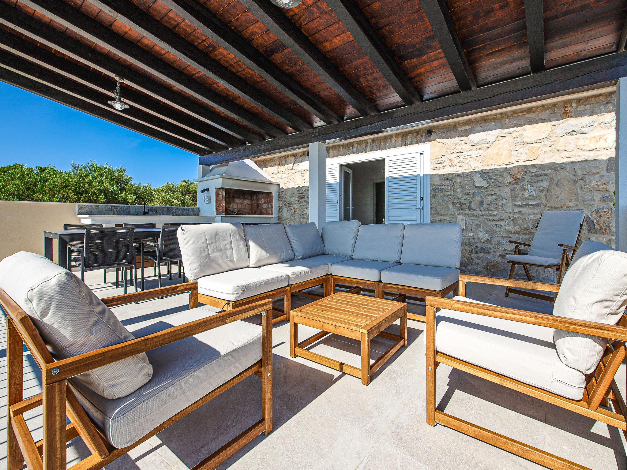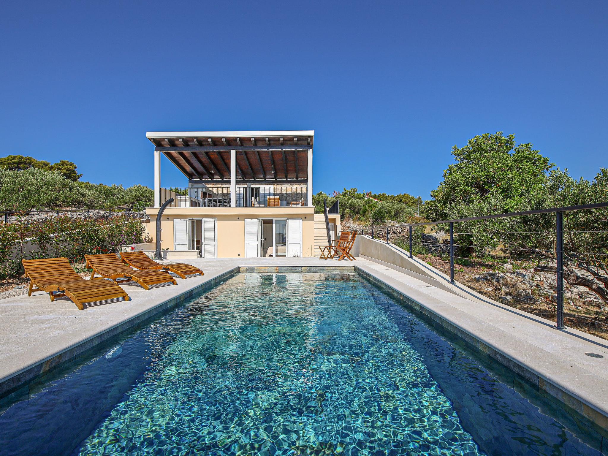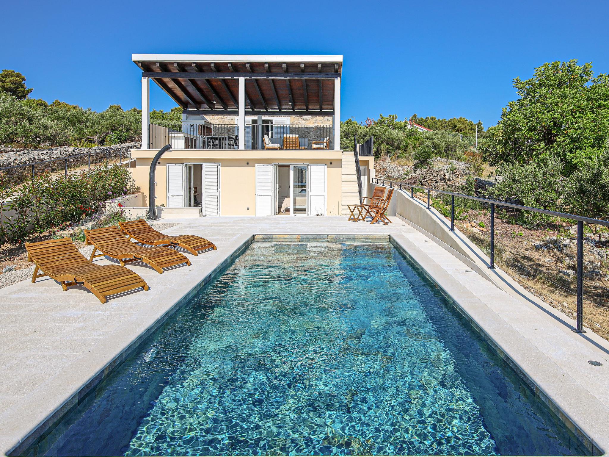 Single-family house "Sova", 2 storeys. 2.5 km from the centre of Grohote, in a quiet, sunny position, 200 m from the sea, 200 m from the beach, in a cul-de-sac, in the countryside. Private: property 500 m2, garden 20 m2, swimming pool angular, heated (7 x 3 m, depth 150 cm, seasonal availability: 01.May. - 01.Oct.) with internal staircase. Outdoor shower, boules, terrace (50 m2), garden furniture, barbecue, pool maintenance by the owner/gardener. In the house: internet access, table tennis, washing machine, tumble dryer. Parking (for 2 cars) at the house on the premises. E-charging station. Supermarket 2.5 km, restaurant 2.5 km, bakery 2.5 km, bus stop 2 km, pebble beach 450 m, rocky beach 200 m. Marina 2 km. Swimming pool heated (extra). ,It is necessary to announce 7 days in advance if the heating is required.