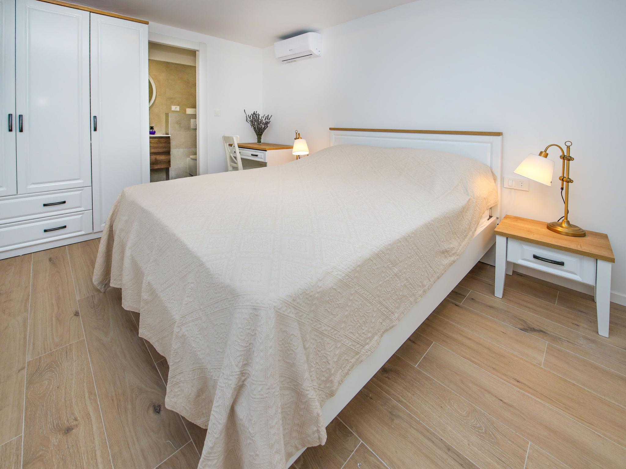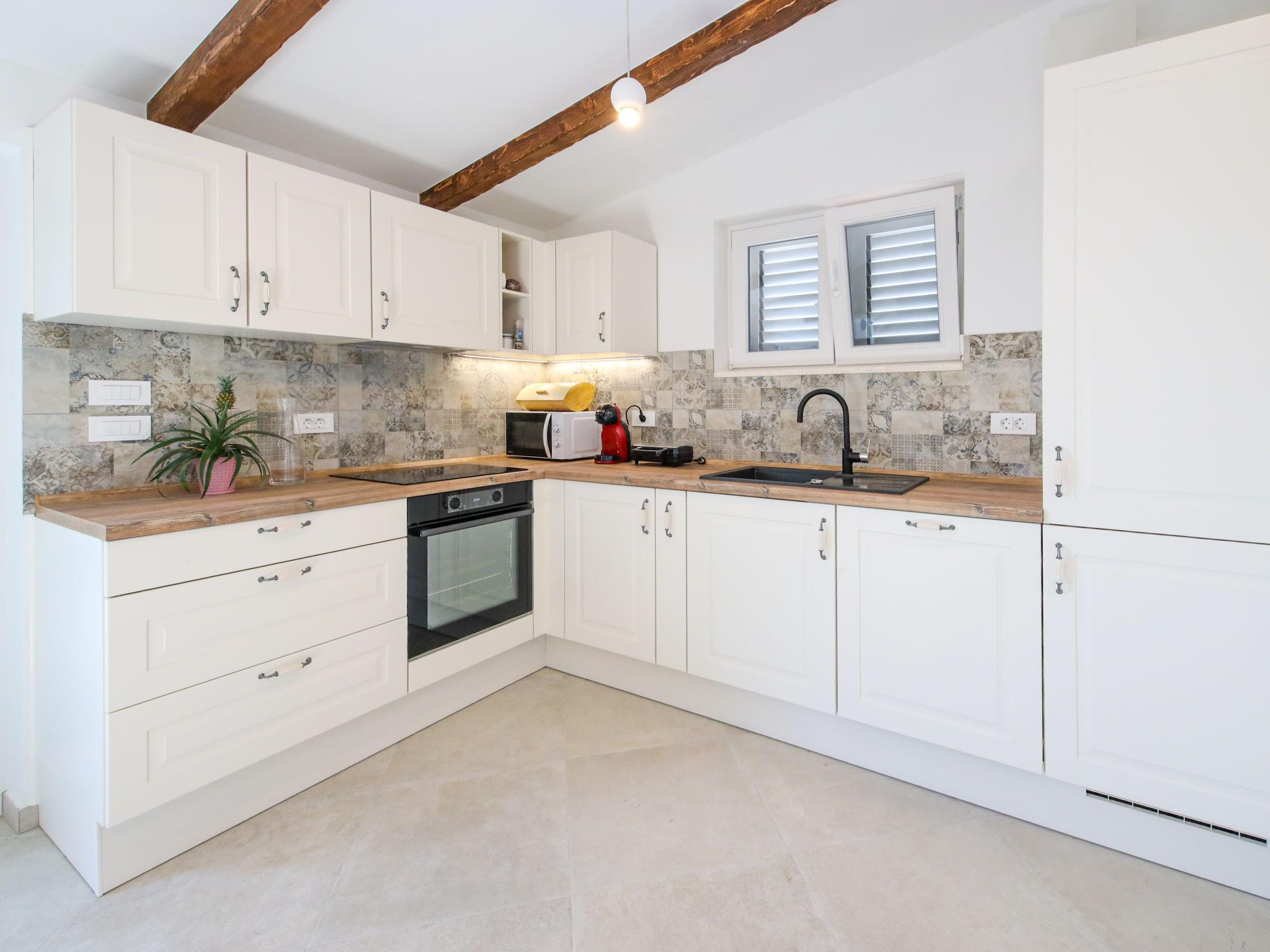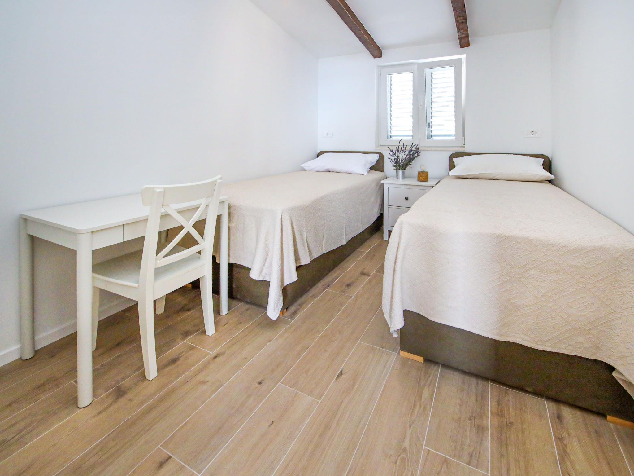 Single-family house "Sova", 2 storeys. 2.5 km from the centre of Grohote, in a quiet, sunny position, 200 m from the sea, 200 m from the beach, in a cul-de-sac, in the countryside. Private: property 500 m2, garden 20 m2, swimming pool angular, heated (7 x 3 m, depth 150 cm, seasonal availability: 01.May. - 01.Oct.) with internal staircase. Outdoor shower, boules, terrace (50 m2), garden furniture, barbecue, pool maintenance by the owner/gardener. In the house: internet access, table tennis, washing machine, tumble dryer. Parking (for 2 cars) at the house on the premises. E-charging station. Supermarket 2.5 km, restaurant 2.5 km, bakery 2.5 km, bus stop 2 km, pebble beach 450 m, rocky beach 200 m. Marina 2 km. Swimming pool heated (extra). ,It is necessary to announce 7 days in advance if the heating is required.