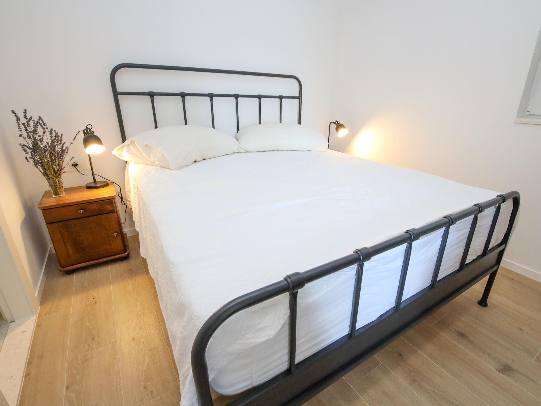 5-room house 100 m2 on 2 levels, east facing position. Living/dining room with satellite TV (flat screen), air conditioning. Exit to the terrace. 1 room with 1 french bed (160 cm, length 200 cm), shower/WC and air conditioning. 1 room with 2 beds (90 cm, length 200 cm), shower/WC and air conditioning. Open kitchen (oven, dishwasher, 4 ceramic glass hob hotplates, toaster, kettle, microwave, freezer, electric coffee machine). On the lower ground floor: living room with satellite TV (flat screen). 1 room with 1 french bed (160 cm, length 200 cm), shower/WC and air conditioning. Sep. WC. No heating option. Terrace 32 m2, roofed. Terrace furniture, deck chairs. Beautiful view of the sea. Facilities: hair dryer. Internet (WiFi, free).