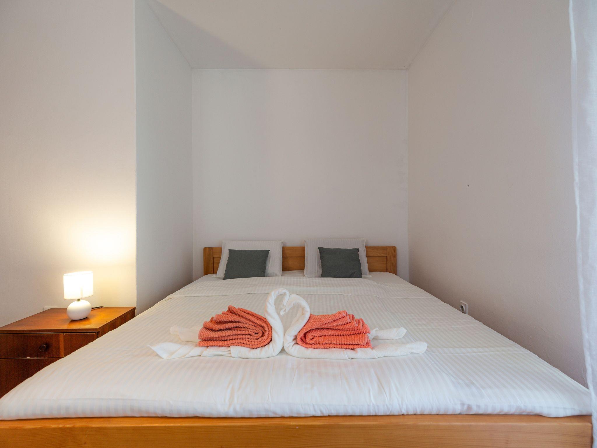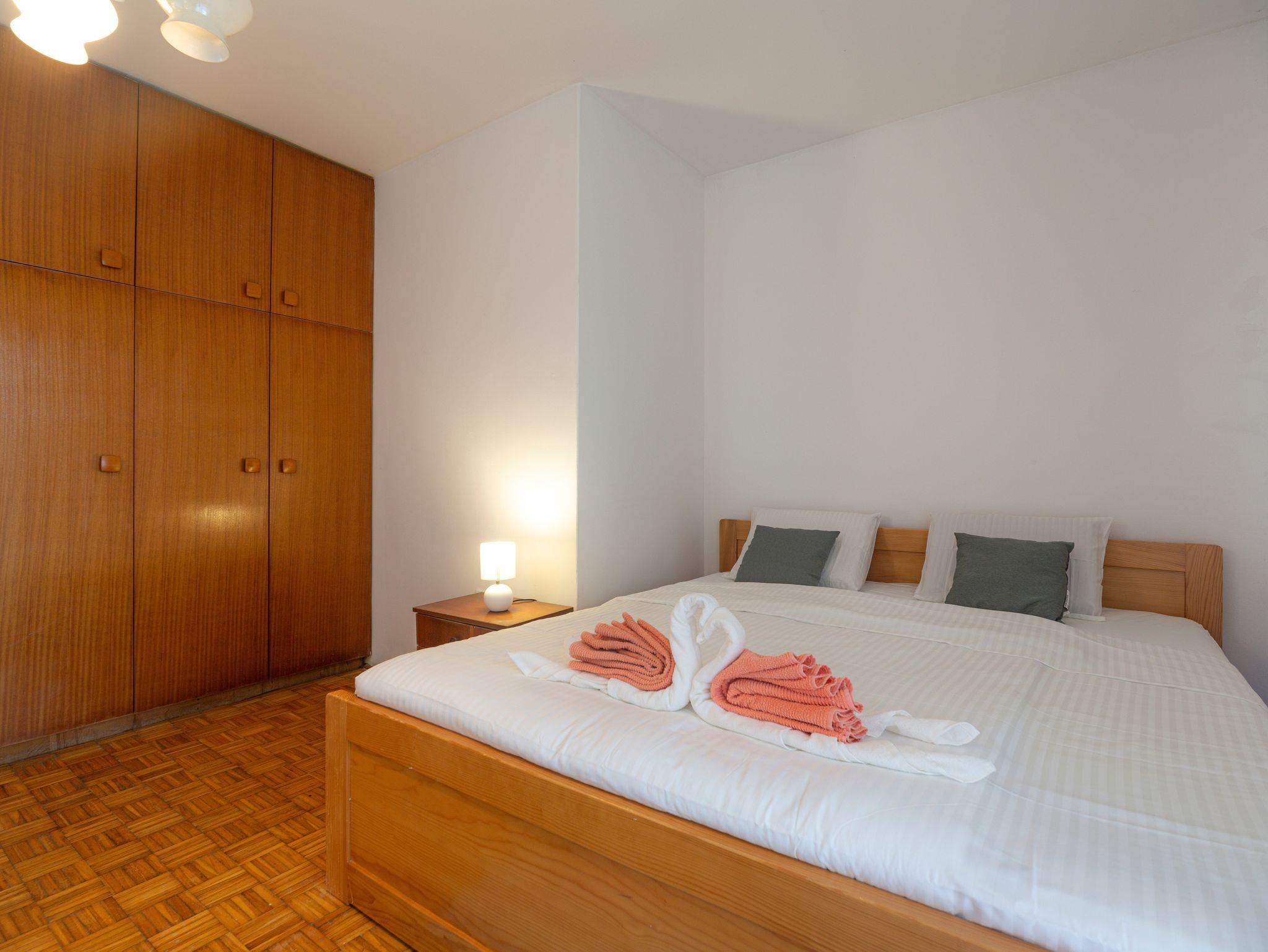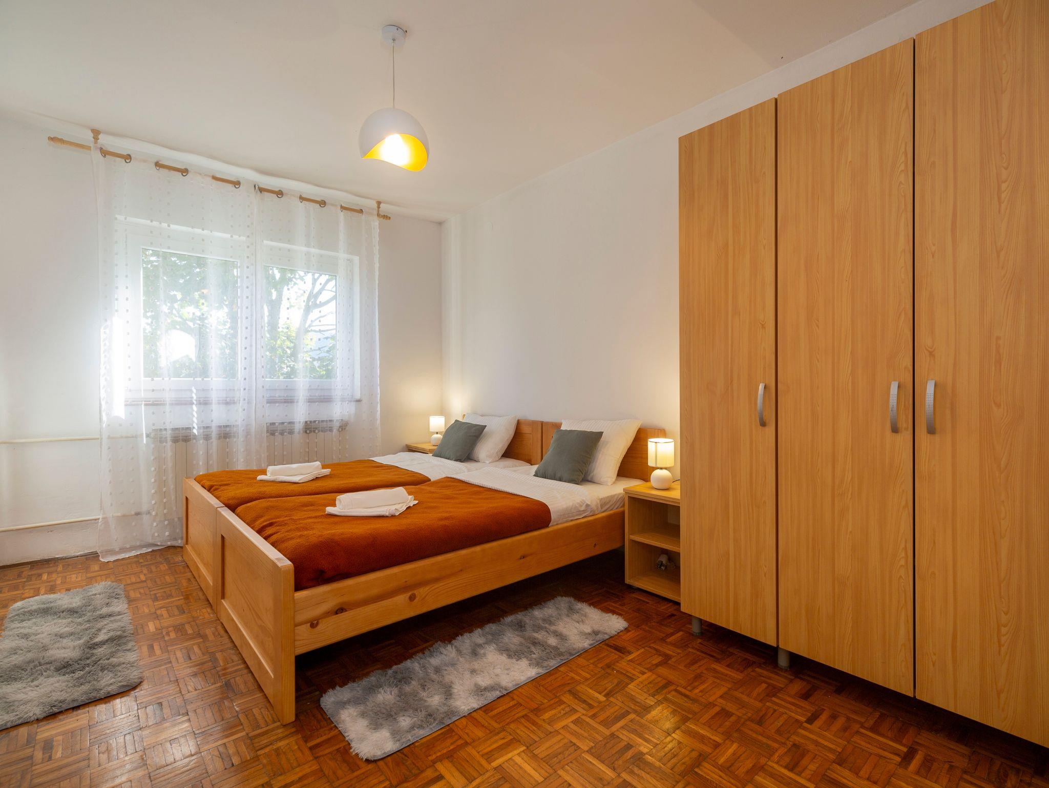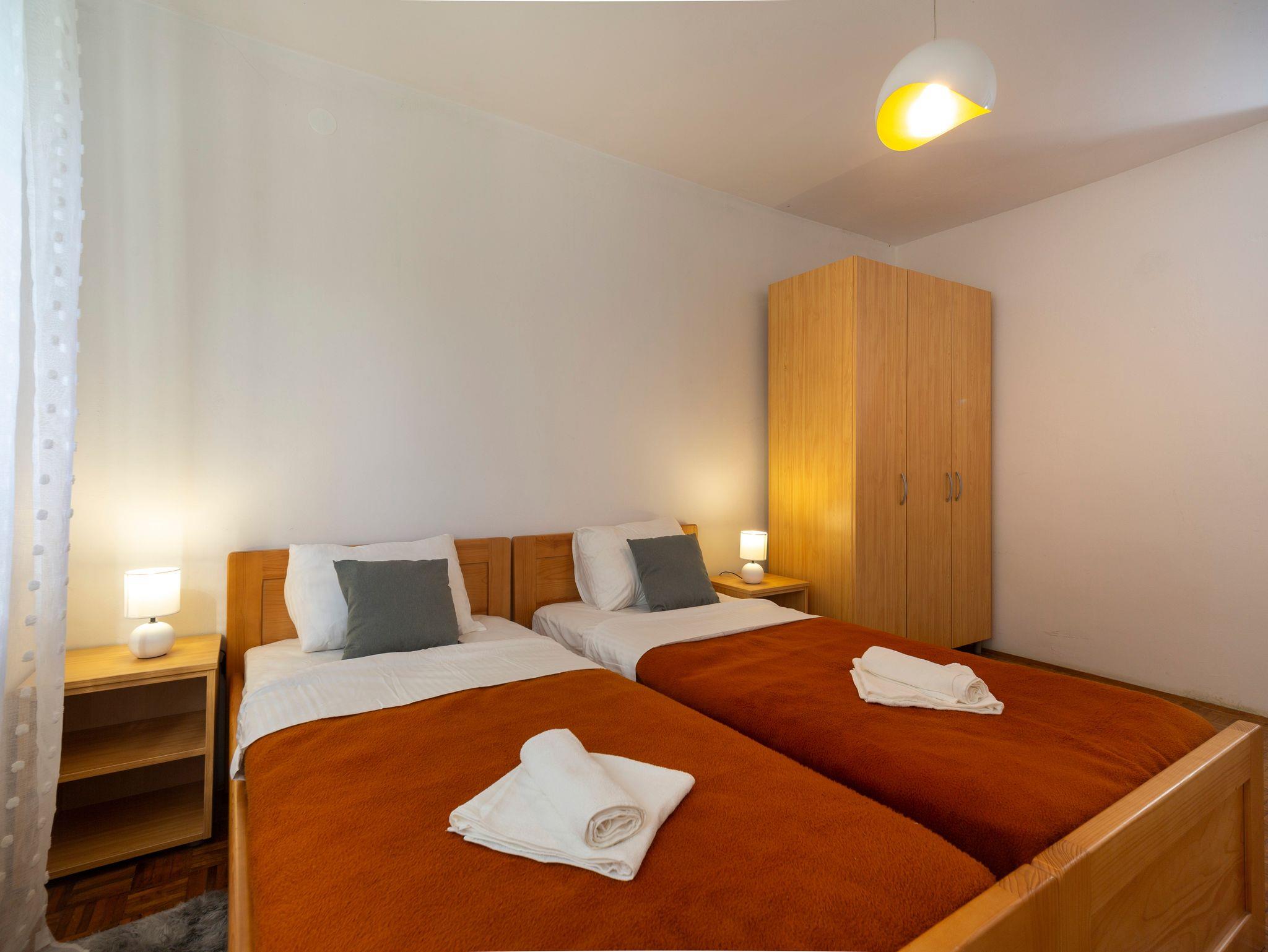 Haus bietet Platz für 5 Gäste. Die Betten sind in Schlafzimmern, die es 2 gibt, innerhalb einer Gesamtfläche von 52m2, angeordnet. Die Gäste haben einen eigenen Balkon zur Verfügung, auf der sie in warmen Sommernächten genießen können. Für vollen Genuss und Entspannung gibt es einen privaten Grill für Gäste dieser Unterkunft. In der Unterkunftseinheit besteht die Möglichkeit des Mitbringens von Haustieren gegen Aufpreis. IM PREIS INBEGRIFFEN: Kurtaxe, Endreinigung, Parkplatz, Internet, Bügeleisen, Bügelbrett, Föhn. VERBINDLICHE ZUSÄTZLICHE KOSTEN: Aufzahlung für Kurzaufenthalte (prozentualer Zuschlag pro Nächtigungsanzahl: 30% - 1, 20% - 2, 10% - 3). UNVERBINDLICHE ZUSÄTZLICHE KOSTEN: Haustiere (10,00 € pro Nacht). Die Verfügbarkeit zusätzlicher Dienstleistungen in Ihrem reservierten Termin und die Preise derselben (falls nicht aufgeführt) müssen im Voraus überprüft werden. Zusätzliche Dienstleistungen die in der Zahlungsaufforderung nicht aufgeführt sind werden direkt beim Vermieter bezahlt, angenommen der Gast nutzt auch diese.