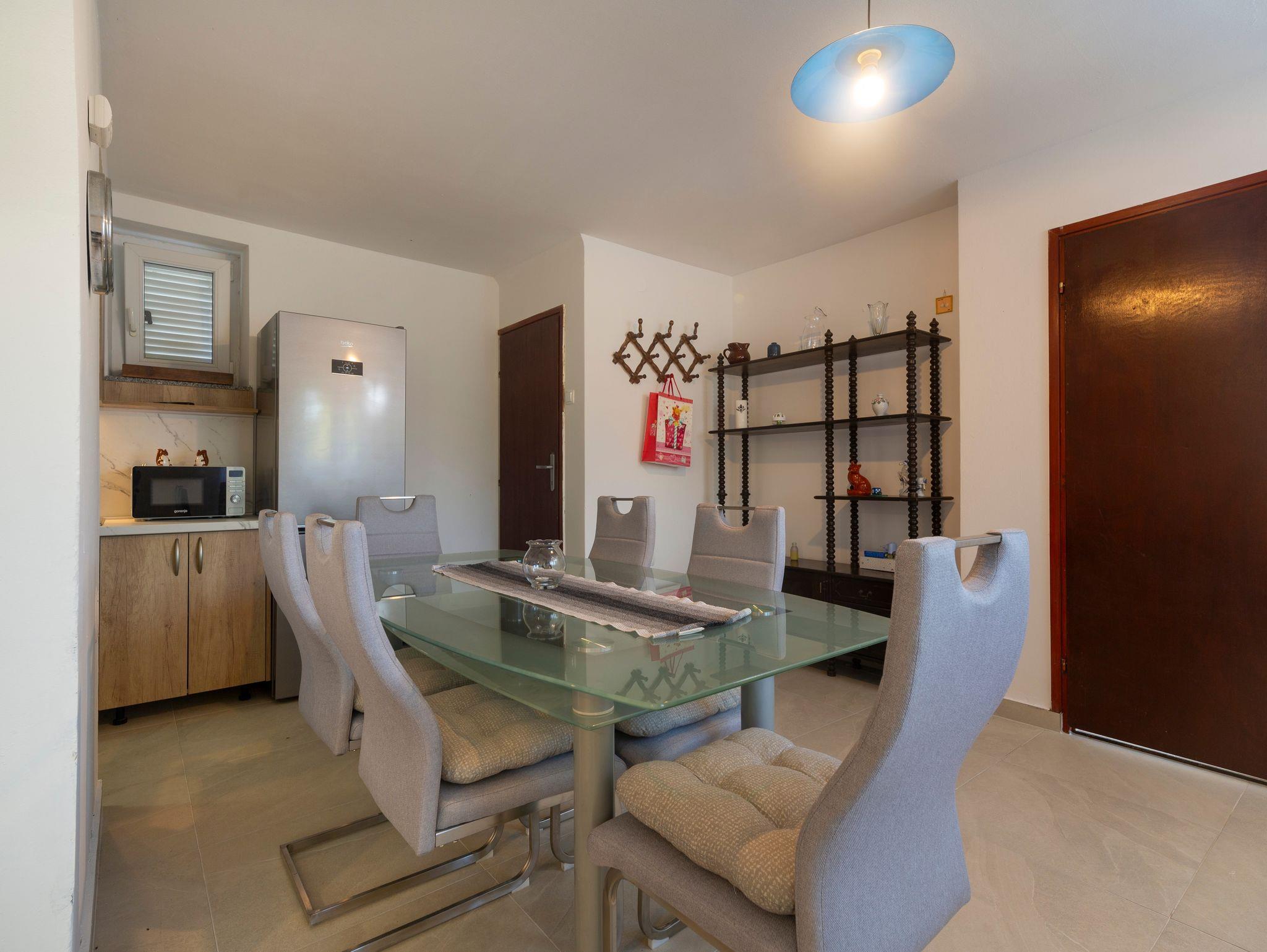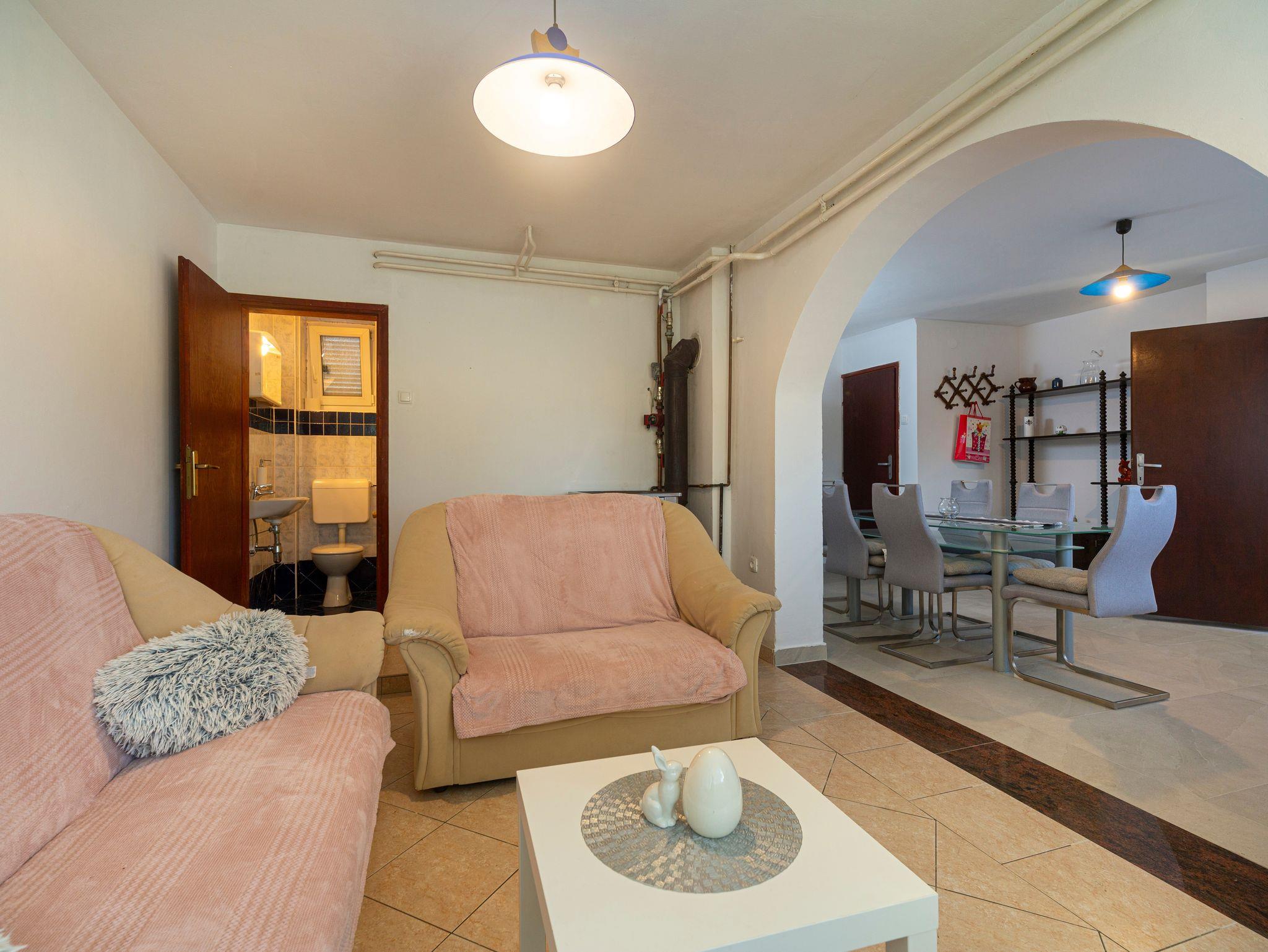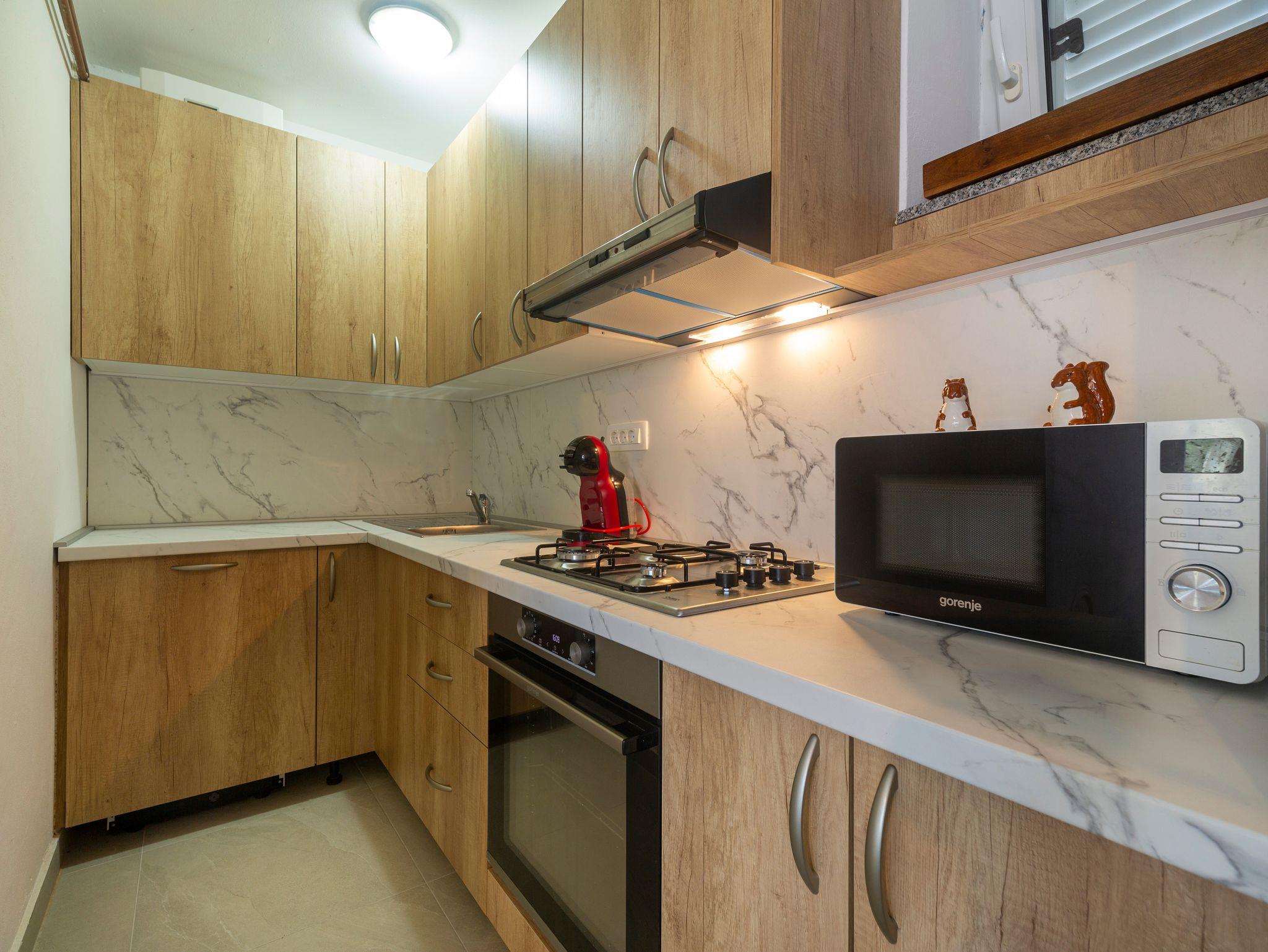 Haus bietet Platz für 5 Gäste. Die Betten sind in Schlafzimmern, die es 2 gibt, innerhalb einer Gesamtfläche von 52m2, angeordnet. Die Gäste haben einen eigenen Balkon zur Verfügung, auf der sie in warmen Sommernächten genießen können. Für vollen Genuss und Entspannung gibt es einen privaten Grill für Gäste dieser Unterkunft. In der Unterkunftseinheit besteht die Möglichkeit des Mitbringens von Haustieren gegen Aufpreis. IM PREIS INBEGRIFFEN: Kurtaxe, Endreinigung, Parkplatz, Internet, Bügeleisen, Bügelbrett, Föhn. VERBINDLICHE ZUSÄTZLICHE KOSTEN: Aufzahlung für Kurzaufenthalte (prozentualer Zuschlag pro Nächtigungsanzahl: 30% - 1, 20% - 2, 10% - 3). UNVERBINDLICHE ZUSÄTZLICHE KOSTEN: Haustiere (10,00 € pro Nacht). Die Verfügbarkeit zusätzlicher Dienstleistungen in Ihrem reservierten Termin und die Preise derselben (falls nicht aufgeführt) müssen im Voraus überprüft werden. Zusätzliche Dienstleistungen die in der Zahlungsaufforderung nicht aufgeführt sind werden direkt beim Vermieter bezahlt, angenommen der Gast nutzt auch diese.