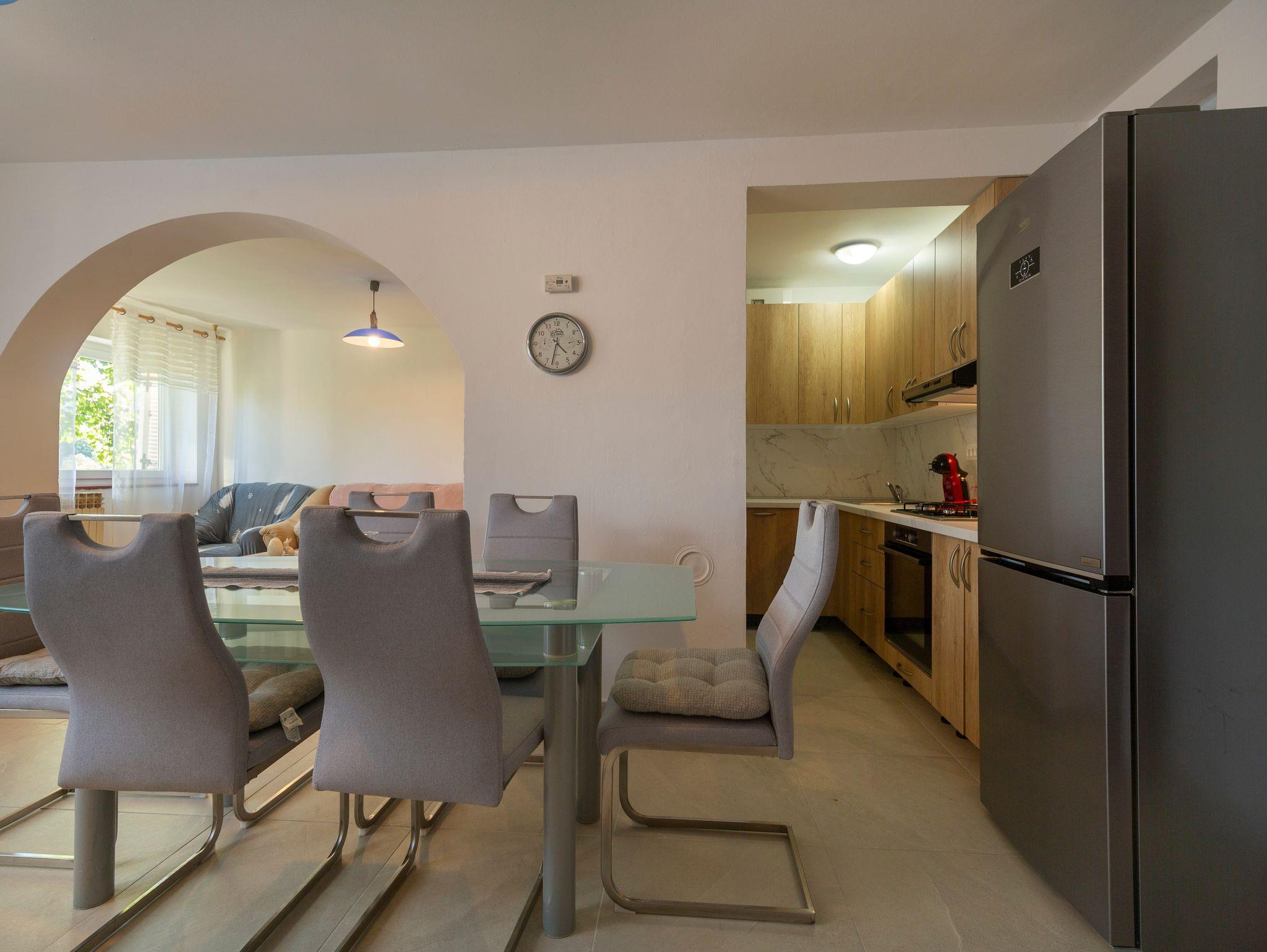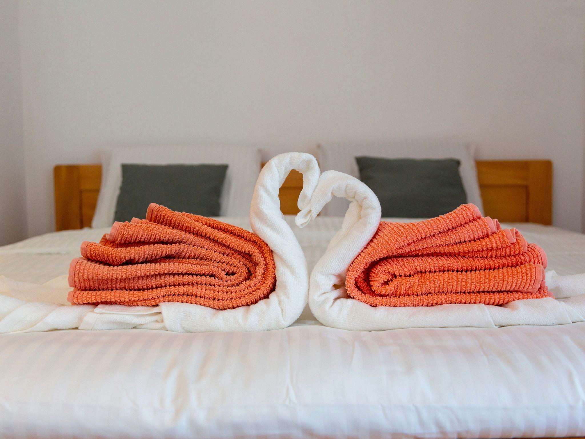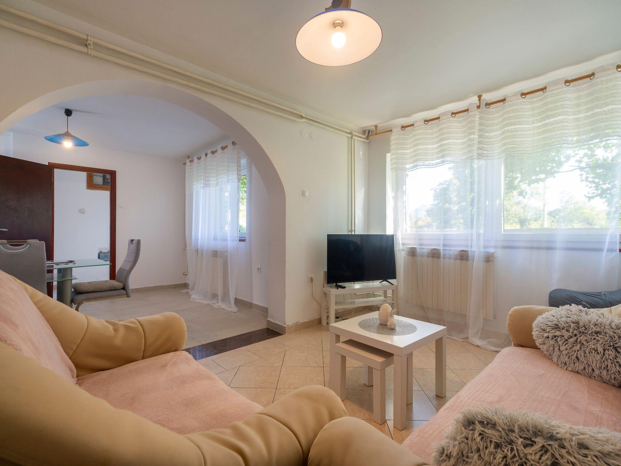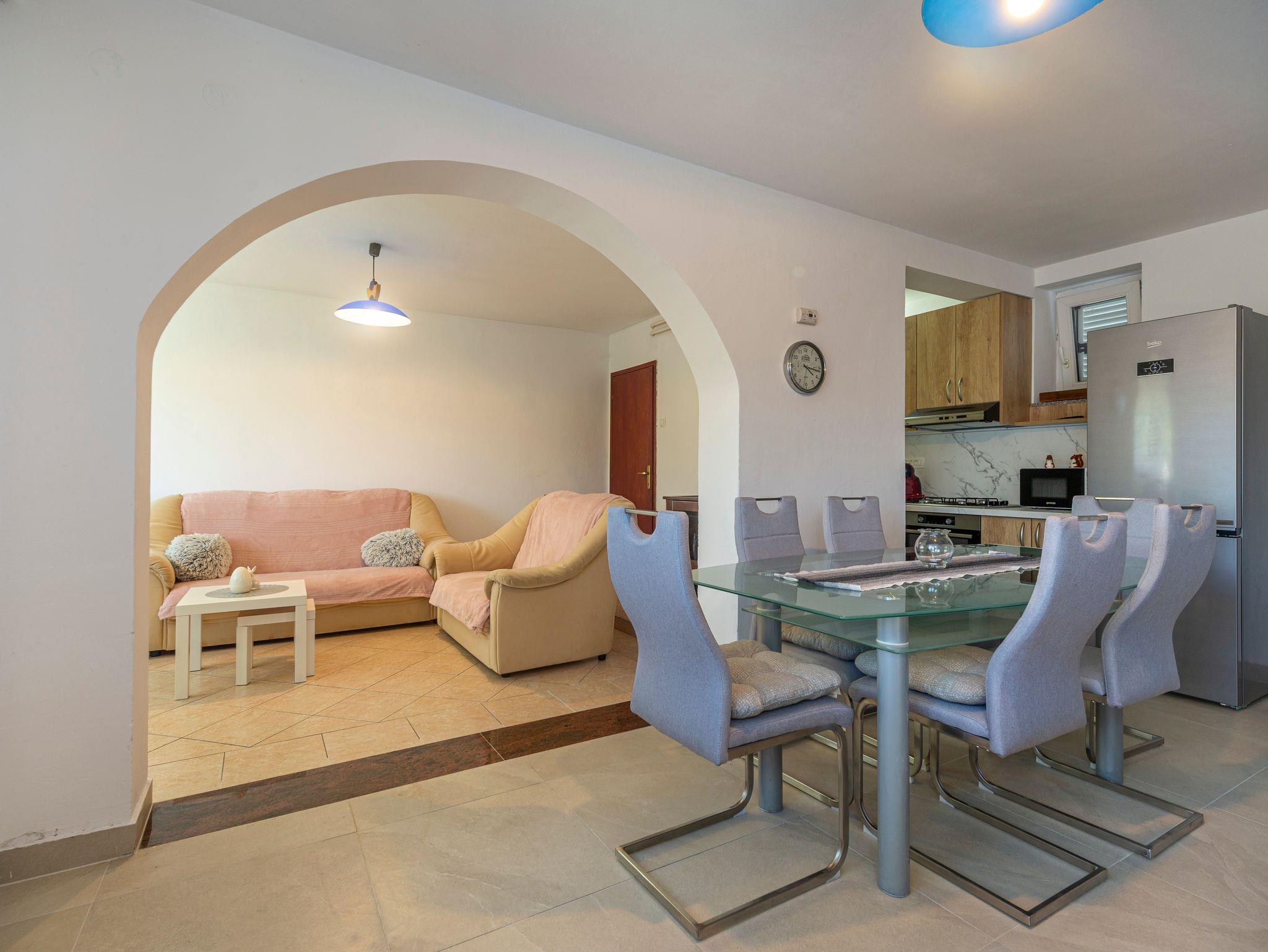 Haus bietet Platz für 5 Gäste. Die Betten sind in Schlafzimmern, die es 2 gibt, innerhalb einer Gesamtfläche von 52m2, angeordnet. Die Gäste haben einen eigenen Balkon zur Verfügung, auf der sie in warmen Sommernächten genießen können. Für vollen Genuss und Entspannung gibt es einen privaten Grill für Gäste dieser Unterkunft. In der Unterkunftseinheit besteht die Möglichkeit des Mitbringens von Haustieren gegen Aufpreis. IM PREIS INBEGRIFFEN: Kurtaxe, Endreinigung, Parkplatz, Internet, Bügeleisen, Bügelbrett, Föhn. VERBINDLICHE ZUSÄTZLICHE KOSTEN: Aufzahlung für Kurzaufenthalte (prozentualer Zuschlag pro Nächtigungsanzahl: 30% - 1, 20% - 2, 10% - 3). UNVERBINDLICHE ZUSÄTZLICHE KOSTEN: Haustiere (10,00 € pro Nacht). Die Verfügbarkeit zusätzlicher Dienstleistungen in Ihrem reservierten Termin und die Preise derselben (falls nicht aufgeführt) müssen im Voraus überprüft werden. Zusätzliche Dienstleistungen die in der Zahlungsaufforderung nicht aufgeführt sind werden direkt beim Vermieter bezahlt, angenommen der Gast nutzt auch diese.