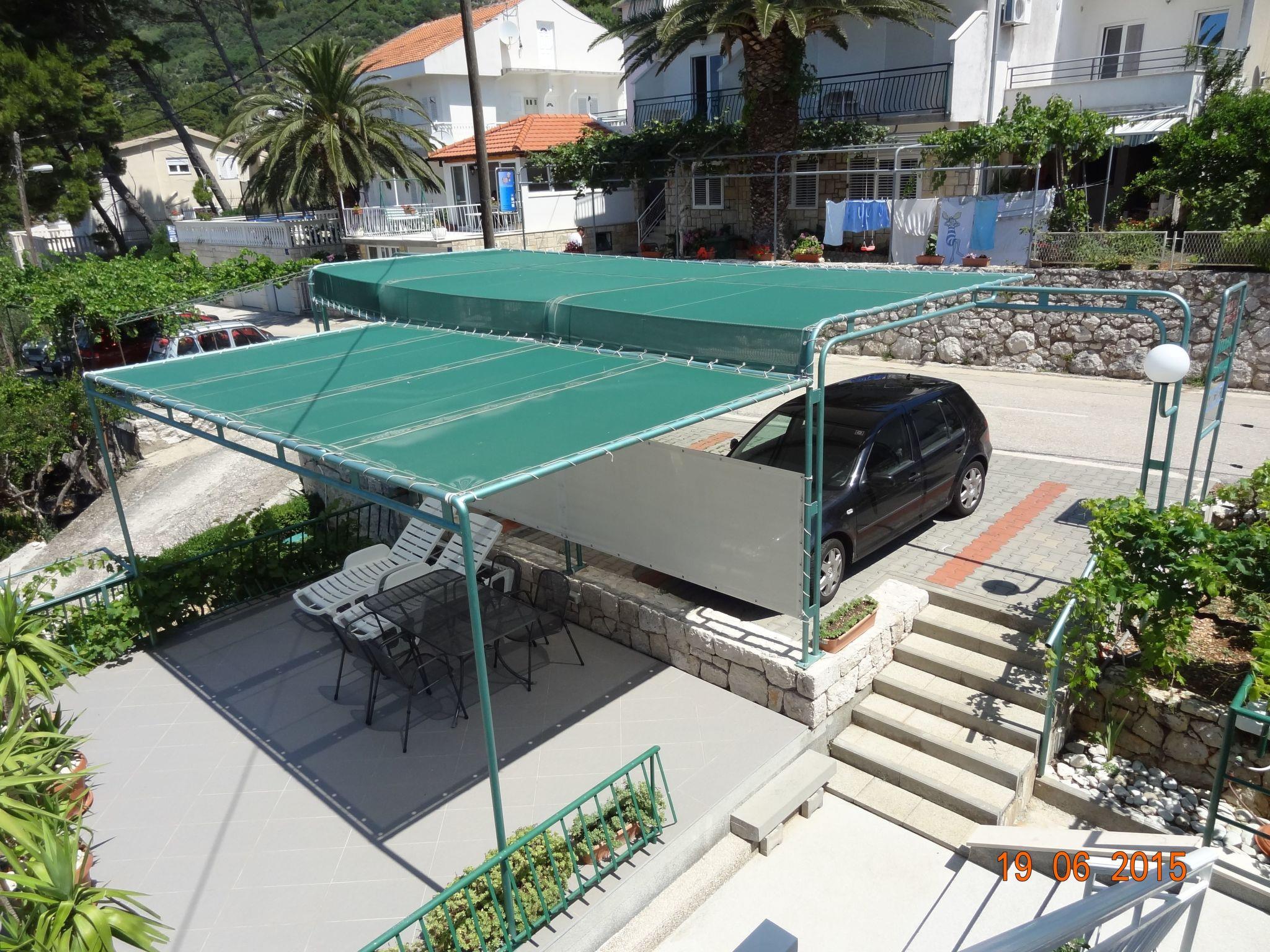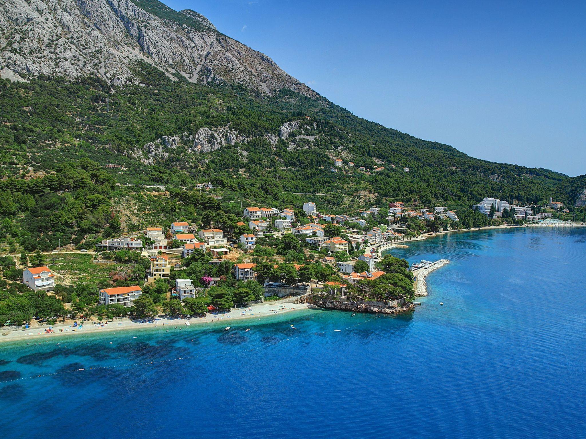 This detached timber house with two holiday apartments is close to the beach, in a tranquil setting along a not-often used road in the town/village of Zivogosce.The following description is a first draft, which is still awaiting revision. Please contact our Customer Service if it contains any gaps.