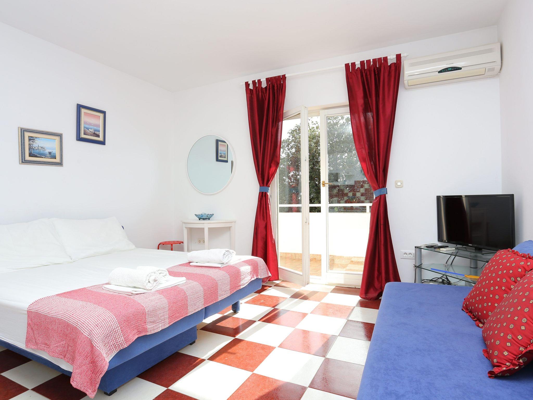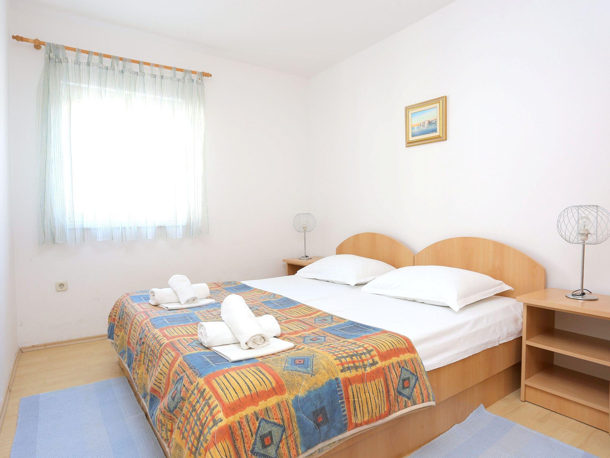 Ferienwohnung bietet Platz für 4 Gäste. Die Betten sind in Schlafzimmern, die es 1 gibt, und in Wohnzimmer, innerhalb einer Gesamtfläche von 36m2, angeordnet. Die Gäste haben eine eigene Terrasse zur Verfügung, auf der sie in warmen Sommernächten genießen können. Das Apartment bietet Meerblick. Es ist erlaubt, Speisen auf dem Gemeinschafts-Grill vorzubereiten. In der Unterkunftseinheit besteht die Möglichkeit des Mitbringens von Haustieren gegen Aufpreis. IM PREIS INBEGRIFFEN: Kurtaxe, Endreinigung, Klimatisierung, Parkplatz, Internet, Wäschewaschen, Kinderbett, Bügeleisen, Föhn, tragbarer Grill. VERBINDLICHE ZUSÄTZLICHE KOSTEN: Aufzahlung für Kurzaufenthalte (prozentualer Zuschlag pro Nächtigungsanzahl: 30% - 1, 20% - 2, 10% - 3). UNVERBINDLICHE ZUSÄTZLICHE KOSTEN: Haustiere (10,00 € pro Nacht). Die Verfügbarkeit zusätzlicher Dienstleistungen in Ihrem reservierten Termin und die Preise derselben (falls nicht aufgeführt) müssen im Voraus überprüft werden. Zusätzliche Dienstleistungen die in der Zahlungsaufforderung nicht aufgeführt sind werden direkt beim Vermieter bezahlt, angenommen der Gast nutzt auch diese.