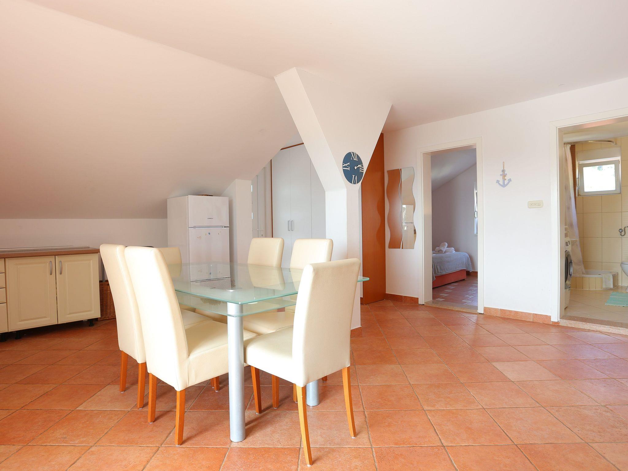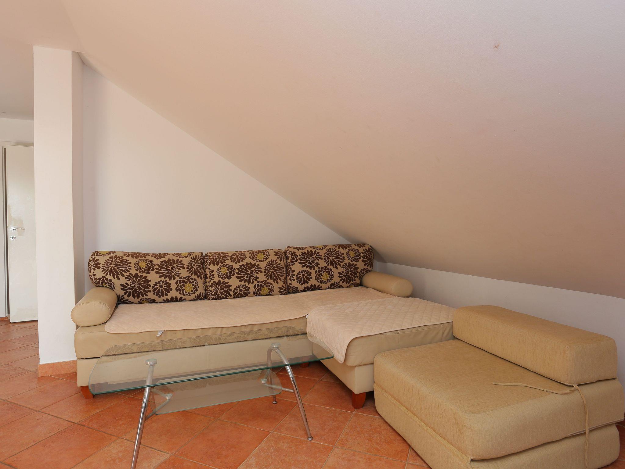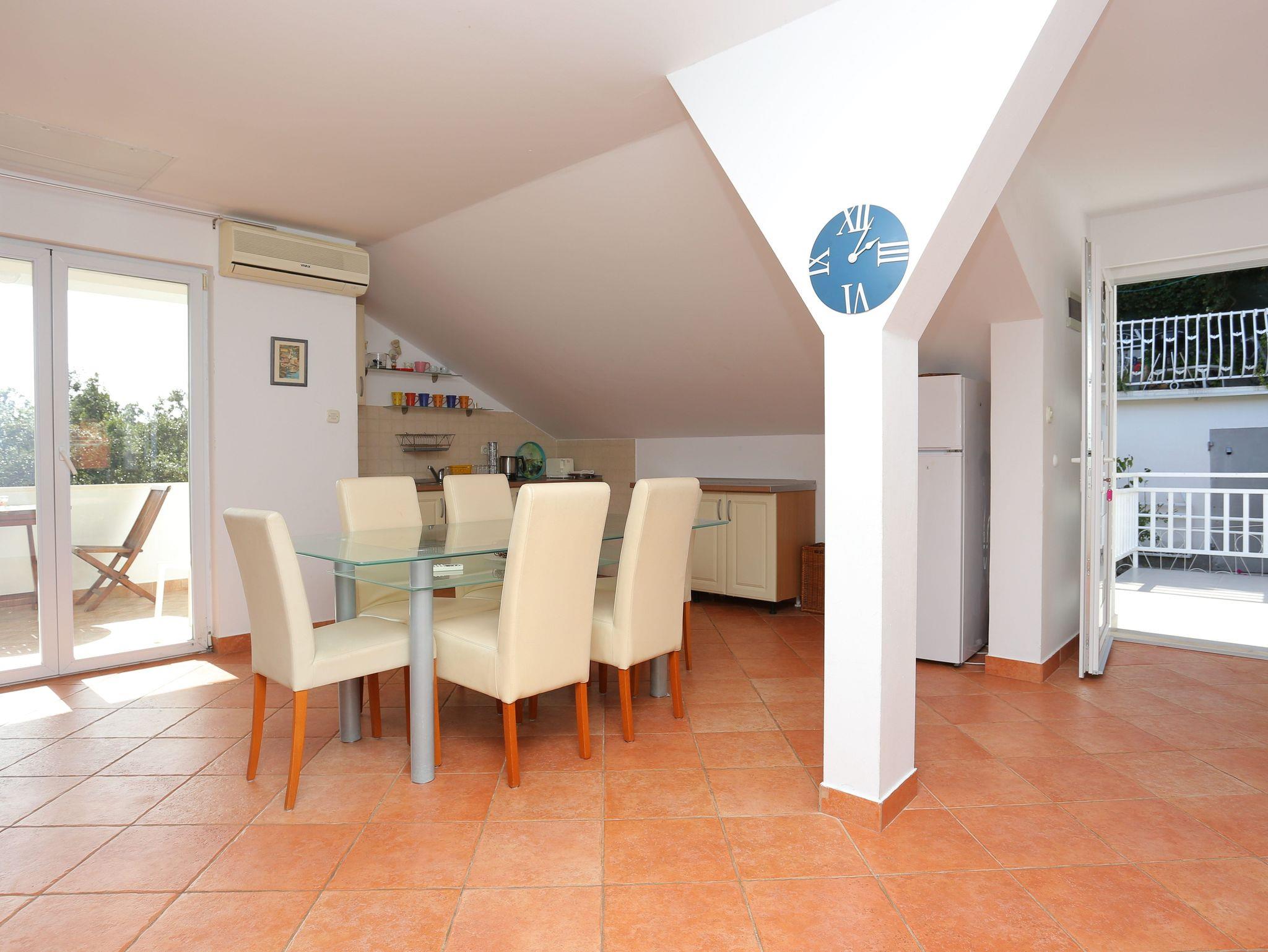 Ferienwohnung bietet Platz für 6 Gäste. Die Betten sind in Schlafzimmern, die es 2 gibt, und in Wohnzimmer, innerhalb einer Gesamtfläche von 65m2, angeordnet. Die Gäste haben eine eigene Terrasse zur Verfügung, auf der sie in warmen Sommernächten genießen können. Das Apartment bietet Meerblick. Es ist erlaubt, Speisen auf dem Gemeinschafts-Grill vorzubereiten. In der Unterkunftseinheit besteht die Möglichkeit des Mitbringens von Haustieren gegen Aufpreis. IM PREIS INBEGRIFFEN: Kurtaxe, Endreinigung, Klimatisierung, Parkplatz, Internet, Wäschewaschen, Kinderbett, Bügeleisen, Föhn, tragbarer Grill. VERBINDLICHE ZUSÄTZLICHE KOSTEN: Aufzahlung für Kurzaufenthalte (prozentualer Zuschlag pro Nächtigungsanzahl: 30% - 1, 20% - 2, 10% - 3). UNVERBINDLICHE ZUSÄTZLICHE KOSTEN: Haustiere (10,00 € pro Nacht). Die Verfügbarkeit zusätzlicher Dienstleistungen in Ihrem reservierten Termin und die Preise derselben (falls nicht aufgeführt) müssen im Voraus überprüft werden. Zusätzliche Dienstleistungen die in der Zahlungsaufforderung nicht aufgeführt sind werden direkt beim Vermieter bezahlt, angenommen der Gast nutzt auch diese.