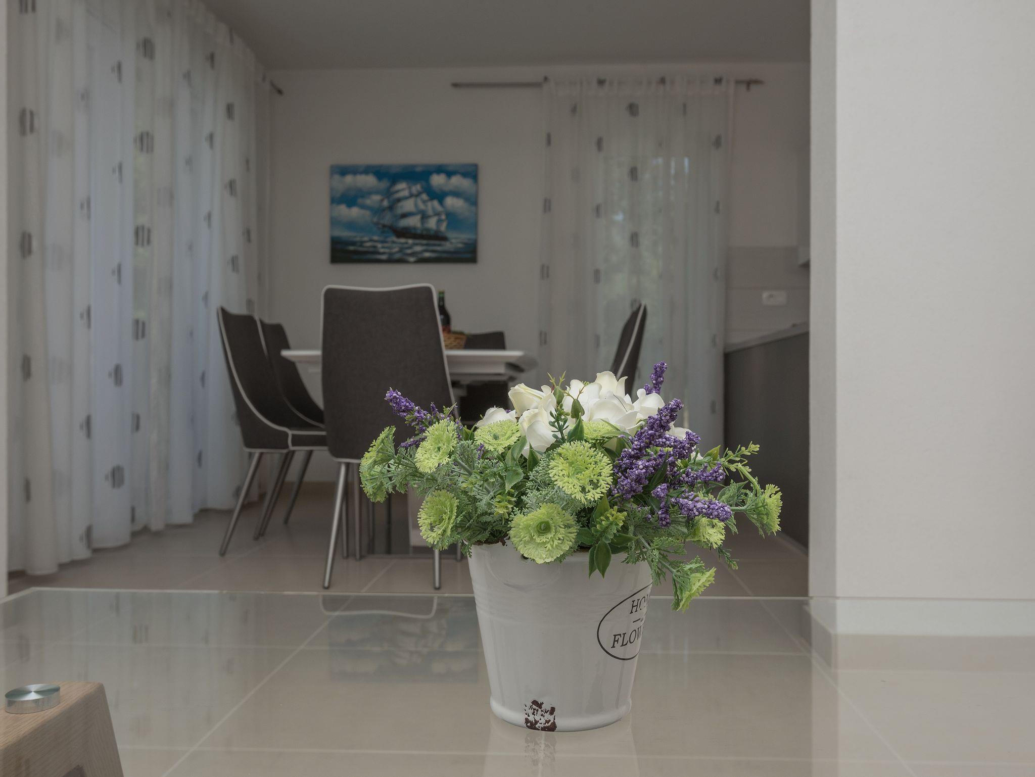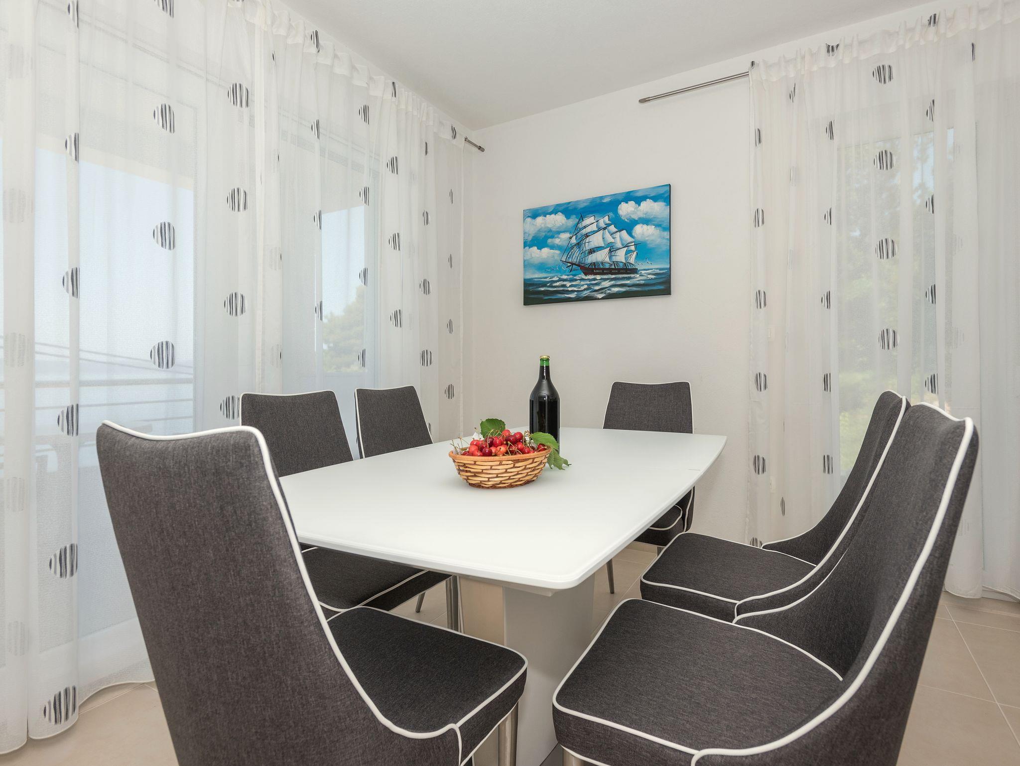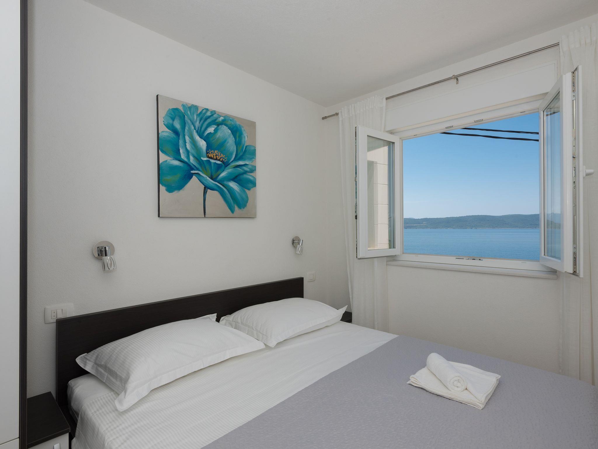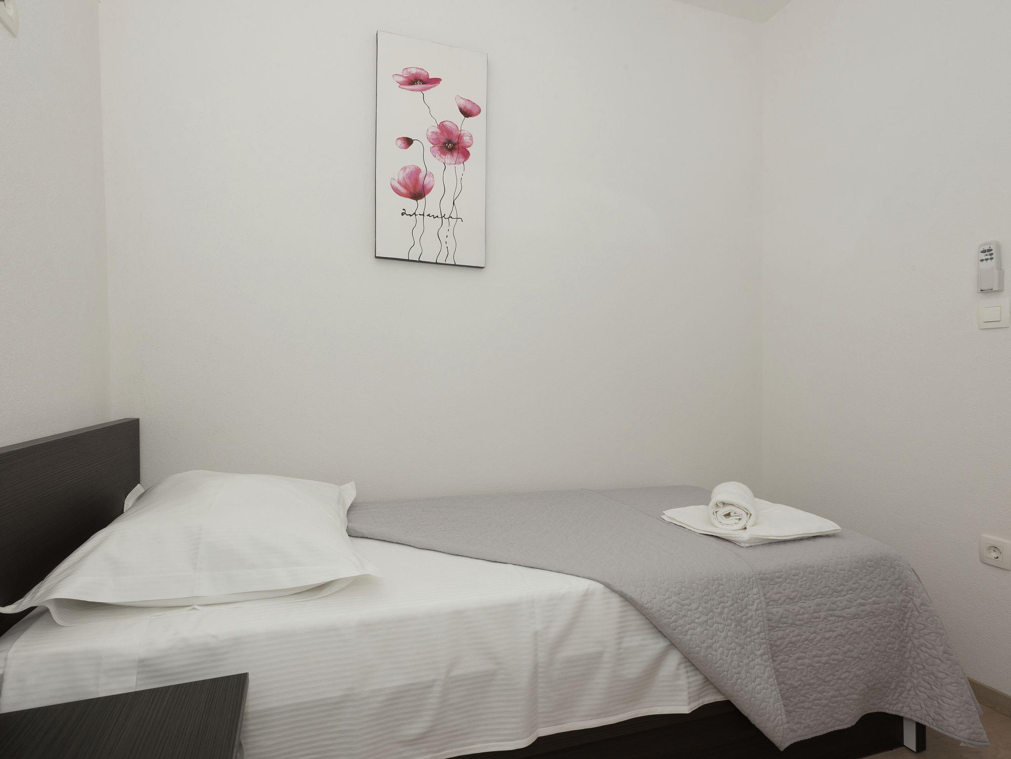 Ferienwohnung bietet Platz für 5 Gäste. Die Betten sind in Schlafzimmern, die es 3 gibt, innerhalb einer Gesamtfläche von 90m2, angeordnet. Die Gäste haben einen eigenen Balkon zur Verfügung, auf der sie in warmen Sommernächten genießen können. Das Apartment bietet Meerblick. Es ist erlaubt, Speisen auf dem Gemeinschafts-Grill vorzubereiten. IM PREIS INBEGRIFFEN: Kurtaxe, Endreinigung, Klimatisierung, Parkplatz, Internet, Bügeleisen, Bügelbrett, Föhn. Die Verfügbarkeit zusätzlicher Dienstleistungen in Ihrem reservierten Termin und die Preise derselben (falls nicht aufgeführt) müssen im Voraus überprüft werden. Zusätzliche Dienstleistungen die in der Zahlungsaufforderung nicht aufgeführt sind werden direkt beim Vermieter bezahlt, angenommen der Gast nutzt auch diese.