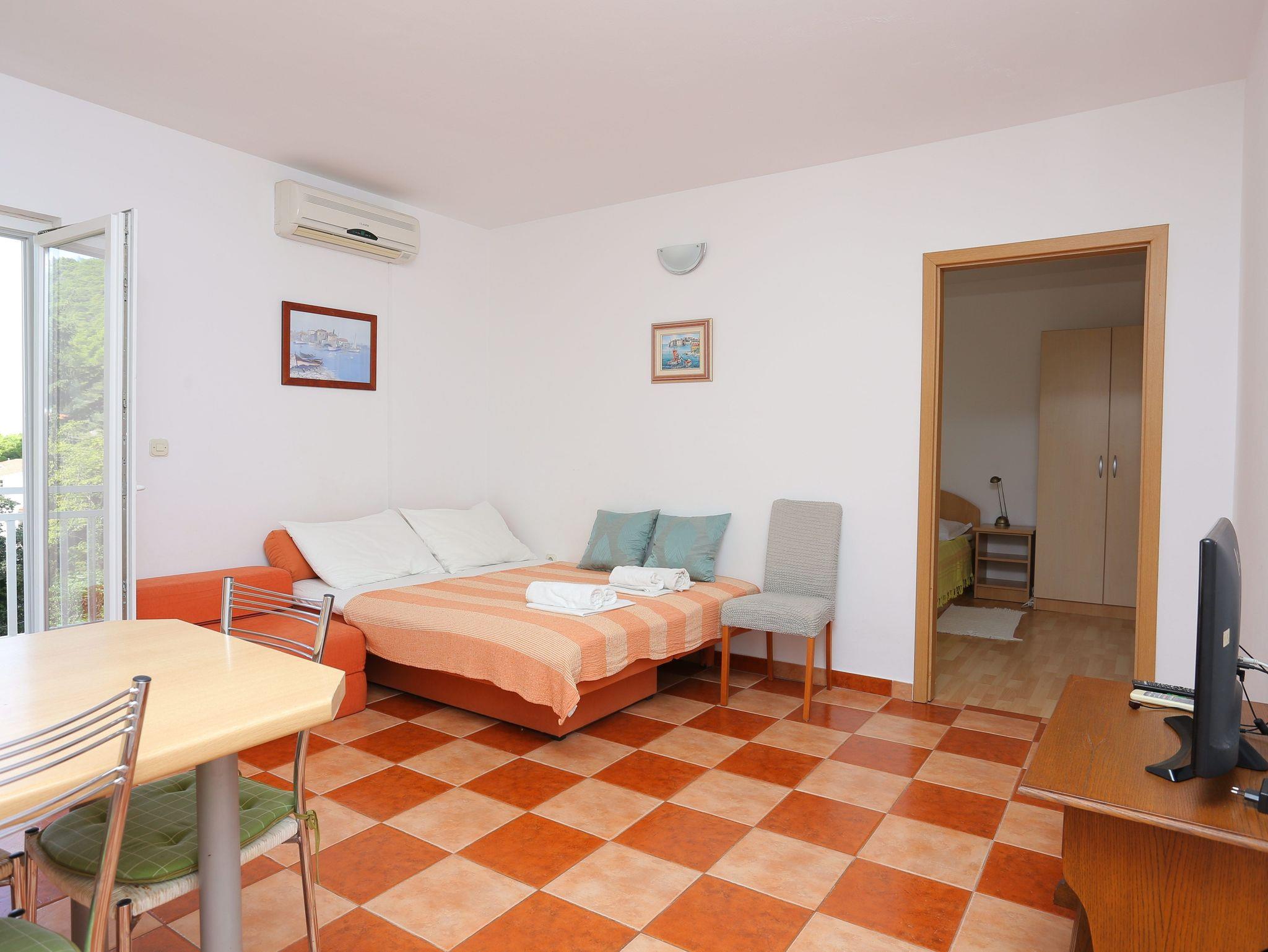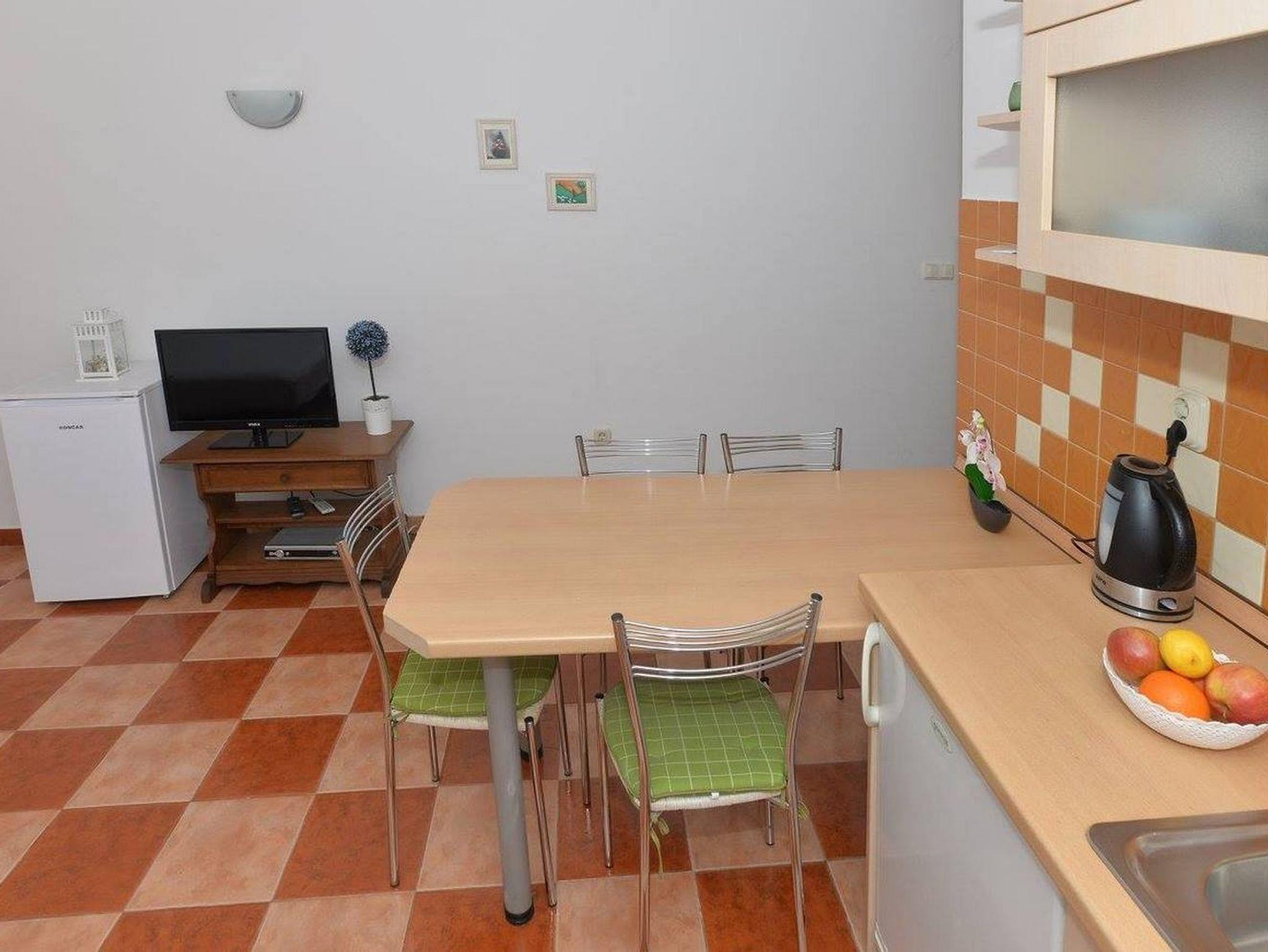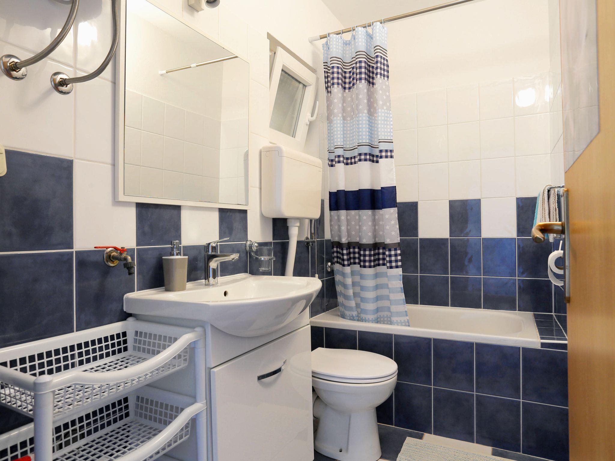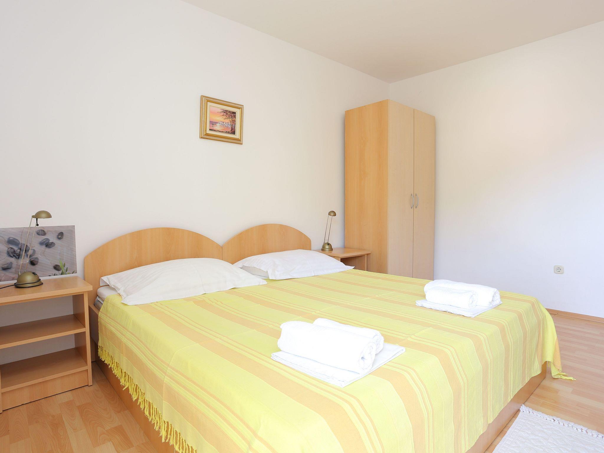 Ferienwohnung bietet Platz für 4 Gäste. Die Betten sind in Schlafzimmern, die es 1 gibt, und in Wohnzimmer, innerhalb einer Gesamtfläche von 34m2, angeordnet. Die Gäste haben einen eigenen Balkon zur Verfügung, auf der sie in warmen Sommernächten genießen können. Das Apartment bietet Meerblick. Es ist erlaubt, Speisen auf dem Gemeinschafts-Grill vorzubereiten. In der Unterkunftseinheit besteht die Möglichkeit des Mitbringens von Haustieren gegen Aufpreis. IM PREIS INBEGRIFFEN: Kurtaxe, Endreinigung, Klimatisierung, Parkplatz, Internet, Wäschewaschen, Kinderbett, Bügeleisen, Föhn, tragbarer Grill. VERBINDLICHE ZUSÄTZLICHE KOSTEN: Aufzahlung für Kurzaufenthalte (prozentualer Zuschlag pro Nächtigungsanzahl: 30% - 1, 20% - 2, 10% - 3). UNVERBINDLICHE ZUSÄTZLICHE KOSTEN: Haustiere (10,00 € pro Nacht). Die Verfügbarkeit zusätzlicher Dienstleistungen in Ihrem reservierten Termin und die Preise derselben (falls nicht aufgeführt) müssen im Voraus überprüft werden. Zusätzliche Dienstleistungen die in der Zahlungsaufforderung nicht aufgeführt sind werden direkt beim Vermieter bezahlt, angenommen der Gast nutzt auch diese.