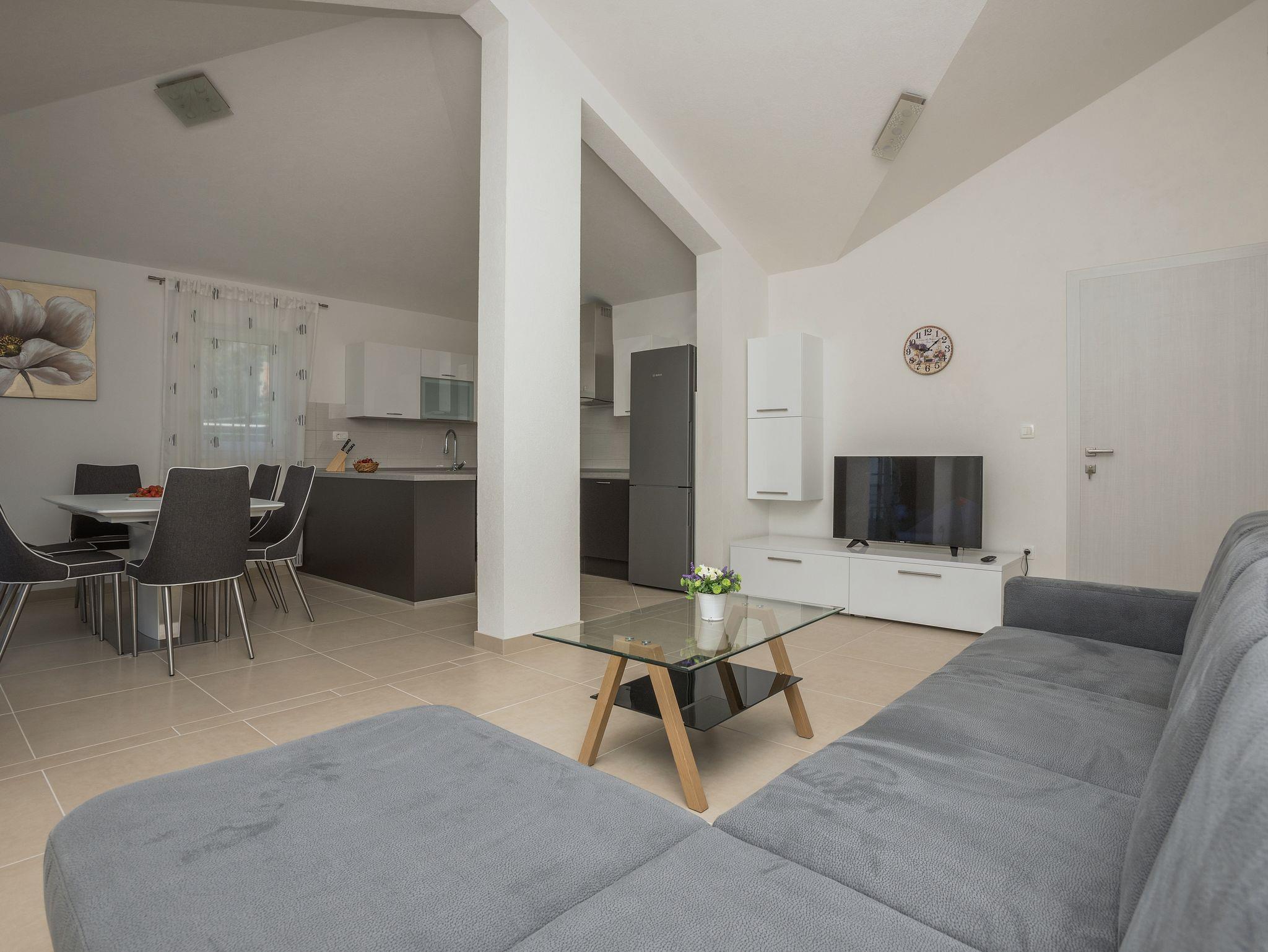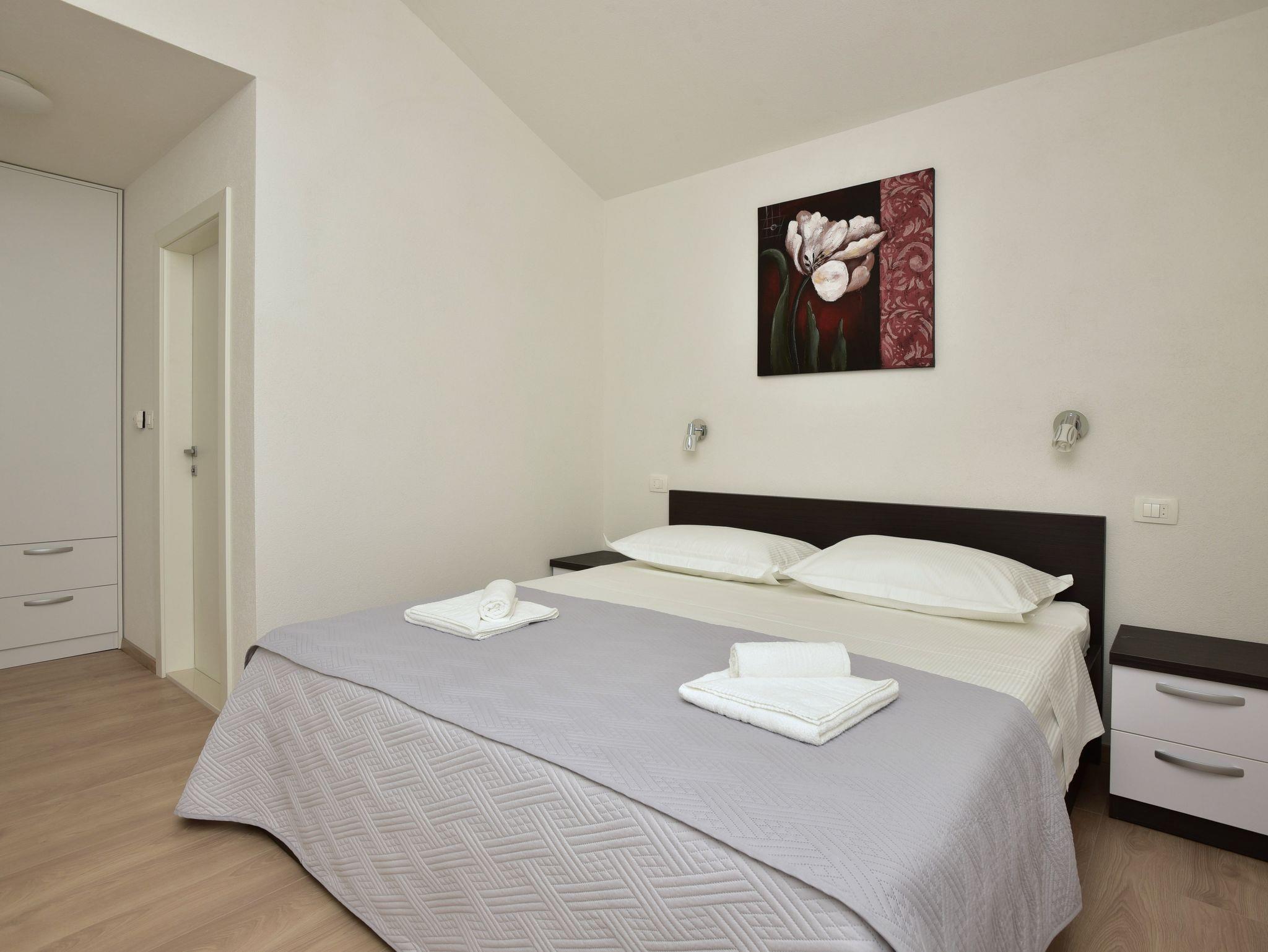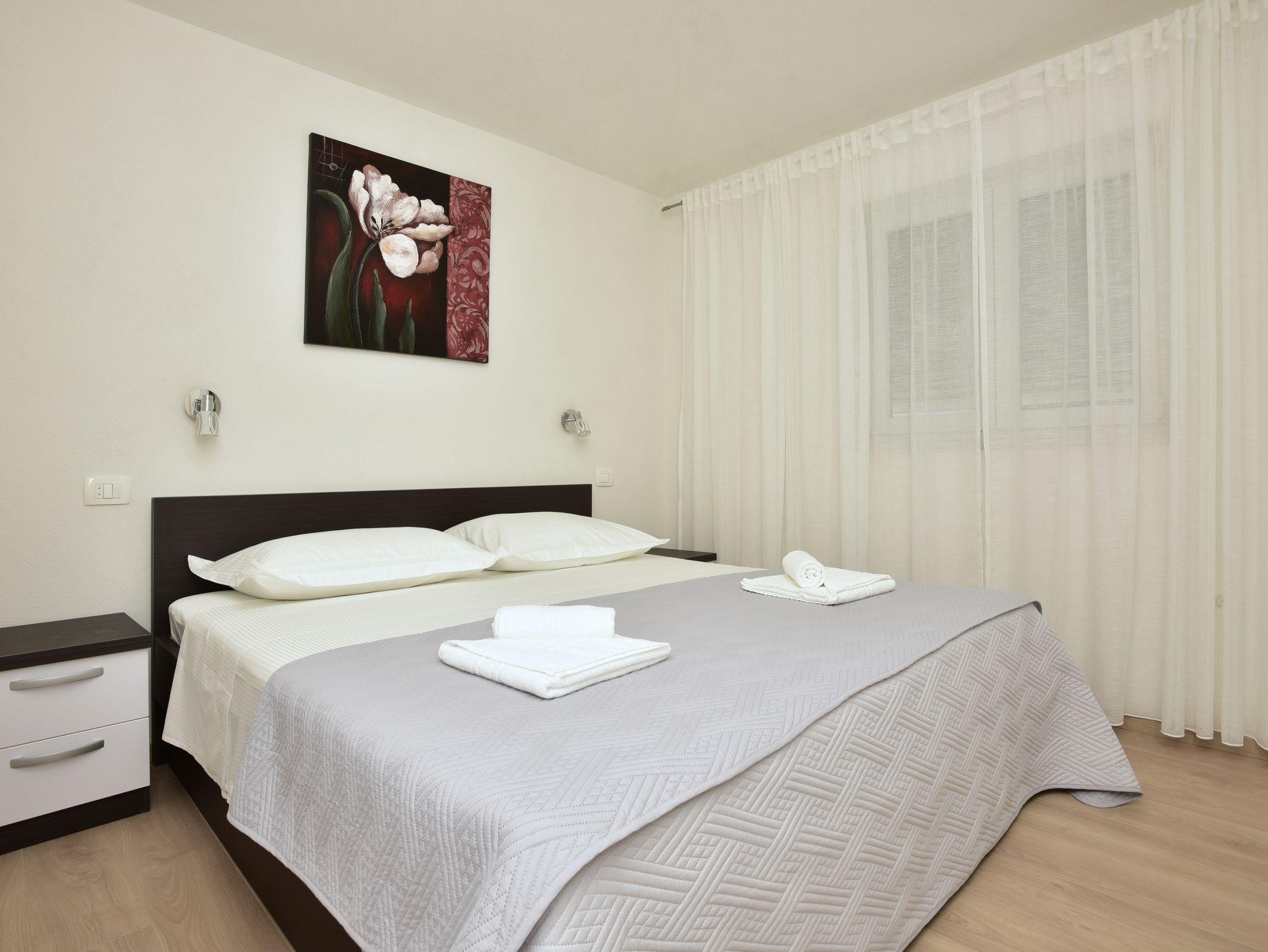 Ferienwohnung bietet Platz für 4 Gäste. Die Betten sind in Schlafzimmern, die es 2 gibt, innerhalb einer Gesamtfläche von 89m2, angeordnet. Die Gäste haben einen eigenen Balkon zur Verfügung, auf der sie in warmen Sommernächten genießen können. Das Apartment bietet Meerblick. Es ist erlaubt, Speisen auf dem Gemeinschafts-Grill vorzubereiten. IM PREIS INBEGRIFFEN: Kurtaxe, Endreinigung, Klimatisierung, Parkplatz, Internet, Bügeleisen, Bügelbrett, Föhn. Die Verfügbarkeit zusätzlicher Dienstleistungen in Ihrem reservierten Termin und die Preise derselben (falls nicht aufgeführt) müssen im Voraus überprüft werden. Zusätzliche Dienstleistungen die in der Zahlungsaufforderung nicht aufgeführt sind werden direkt beim Vermieter bezahlt, angenommen der Gast nutzt auch diese.