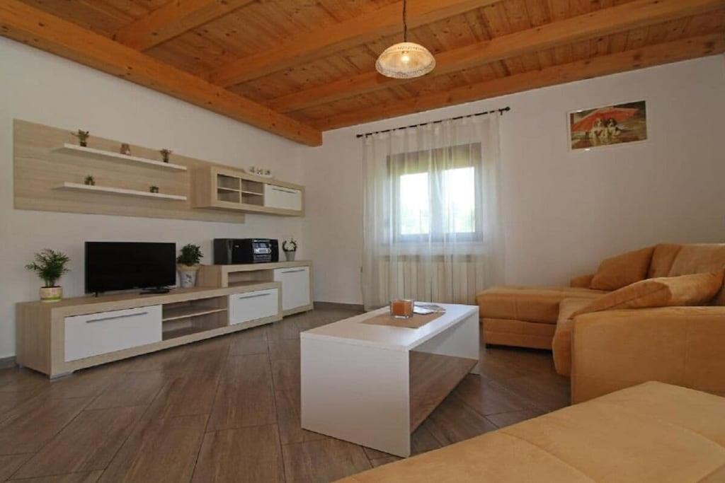 Stueetage: (Stue(, dobbeltsovesofa, Fjernsyn, DVD-afspiller, klimaanlæg), Køkken(kakkelovn, kakkelovn, komfur, ovn, køleskab, klimaanlæg), soveværelse(, , dobbeltseng), soveværelse(, , dobbeltseng), badeværelse(, toilet, bruser, håndvask)) , , , , Internetadgang, Internetadgang, Førstehjælp, vaskemaskine, balkon(balkon, havemøbler), terrasse(Grill center, Fjernsyn, spisebord, pejs, grill), have(Strand, Græsplæne, havemøbler, solstole, swimmingpool, Haveskur), parkering, strygebræt, strygejern