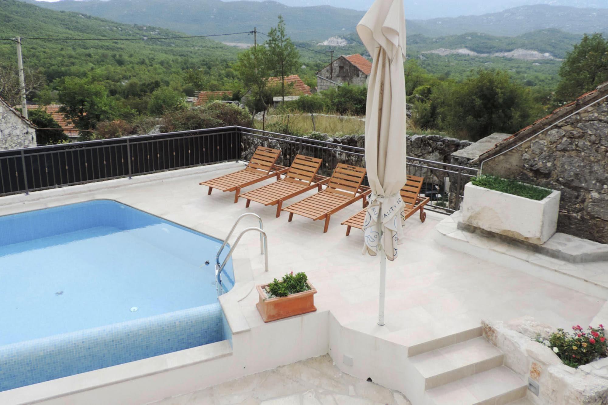 Stenhus i Makarska med pool og bjergudsigt
