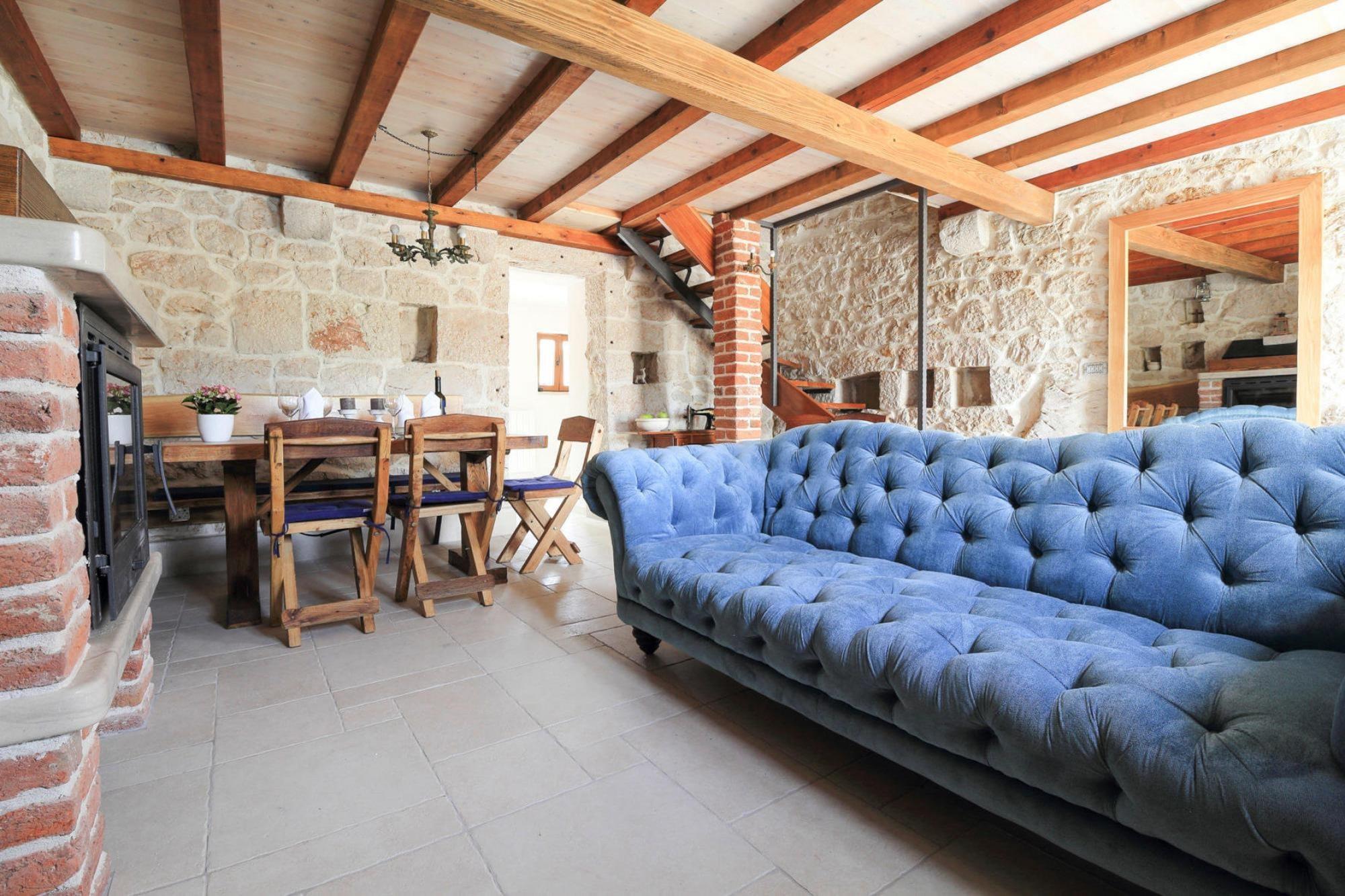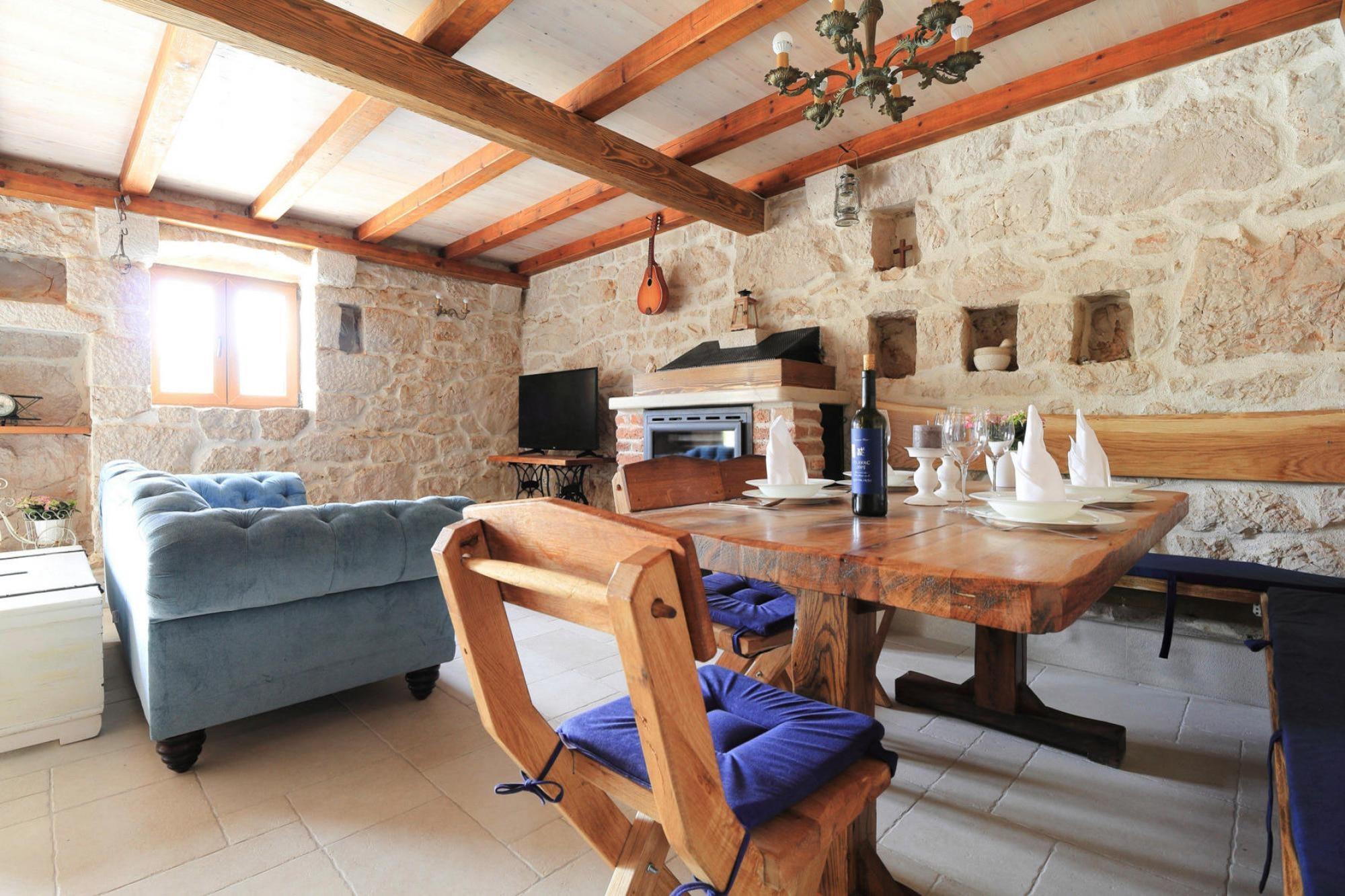 Gammelt stenhus i rustik, hyggelig stil med pejs og privat udendørs pool. Huset ligger i en traditionel landsby i Makarskas bagland, omkring 27 km fra byen Makarska. Dit sommerhus er 70 kvadratmeter stort og har faciliteter som WiFi, opvaskemaskine og vaskemaskine. Foran huset ligger en swimmingpool med liggestole, hvor man kan nyde udsigten over Biokovo naturreservat og den smukke solnedgang. Udearealet har også en terrasse med havemøbler og en pavillon med siddepladser. For de yngre gæster er der et legehus med rutsjebane og for de ældre er der en vinkælder med vores egne vine (mod betaling) og et lille grillhus med åben grill. Den turkise Makarska Riviera og det imponerende Biokovo-bjerg bagved udgør en af de smukkeste ferieomgivelser, man kan forestille sig. Makarska kaldes ikke kun hele kystområdet, men også den største by her. Værtshusene og restauranterne, værtshusene og vinkældrene samt de talrige sports- og kulturtilbud samt arrangementer som fiskeaftener og koncerter sørger for en afvekslende ferie. Detaljer: Forbrugsbaserede energiomkostninger, sengelinned, håndklæder, slutrengøring, turistskat, WiFi registreringsgebyr Aktiviteter i området: Biokovo-bjergene tårner sig imponerende op over Rivieraen og tiltrækker både vandrere og mountainbikere til imponerende naturudflugter. Hvis du leder efter endnu mere spænding, finder du det hos Omis ved Cetina-floden. Under raftingture og kanosafarier vil du med garanti få sjove og muntre indtryk.Hvis du vil udforske floden og Cetina-dalen fra luften, anbefaler vi den spektakulære Omis zipline. Godt to kilometers "wire" er spændt ud. over Cetina-dalen, langs ziplinen kan du nyde en betagende udsigt ledsaget af nogle adrenalinsus op til 65 km