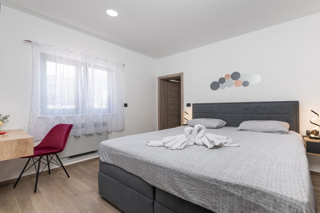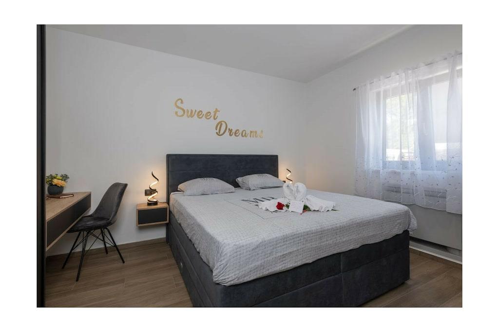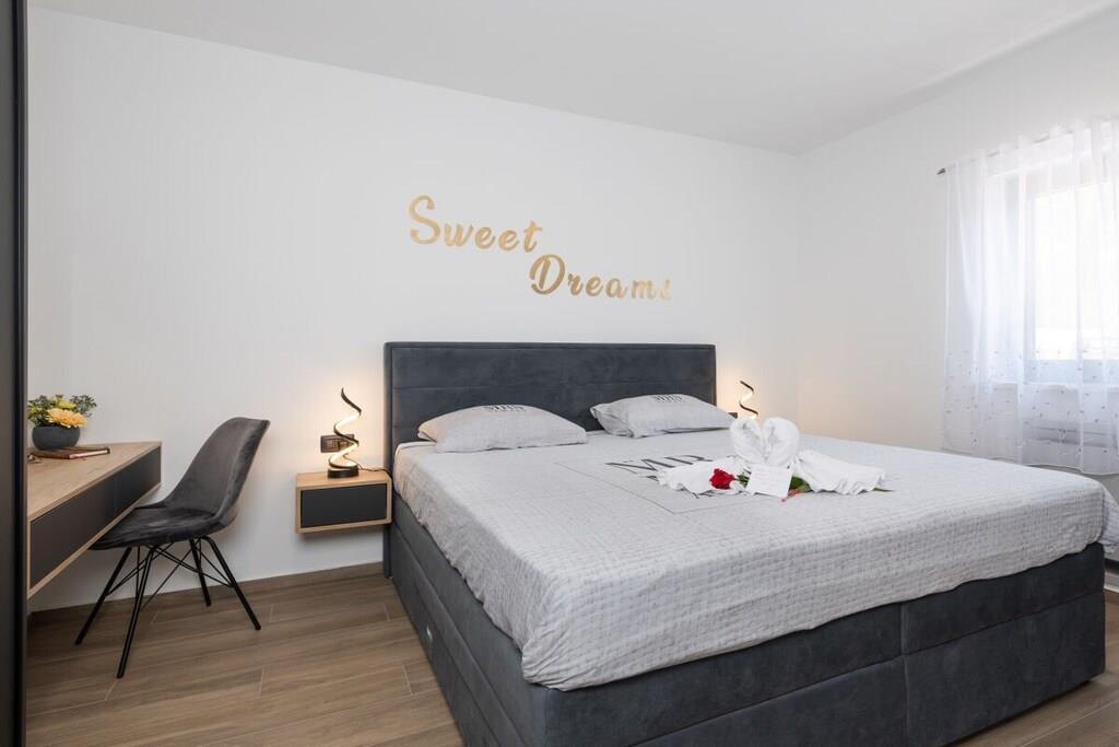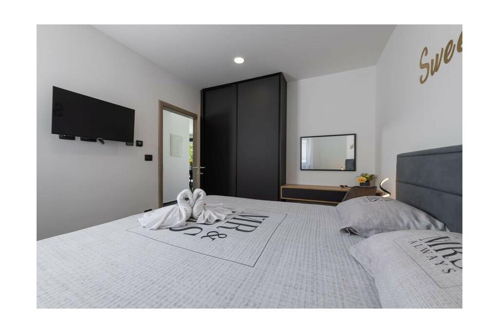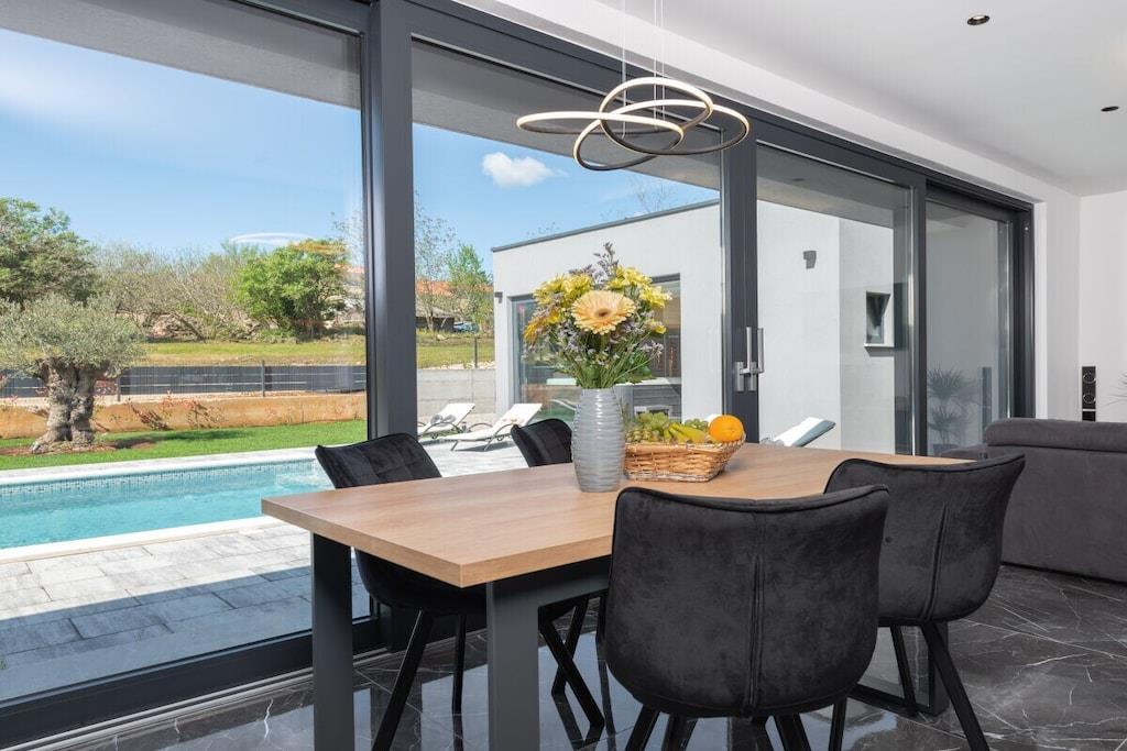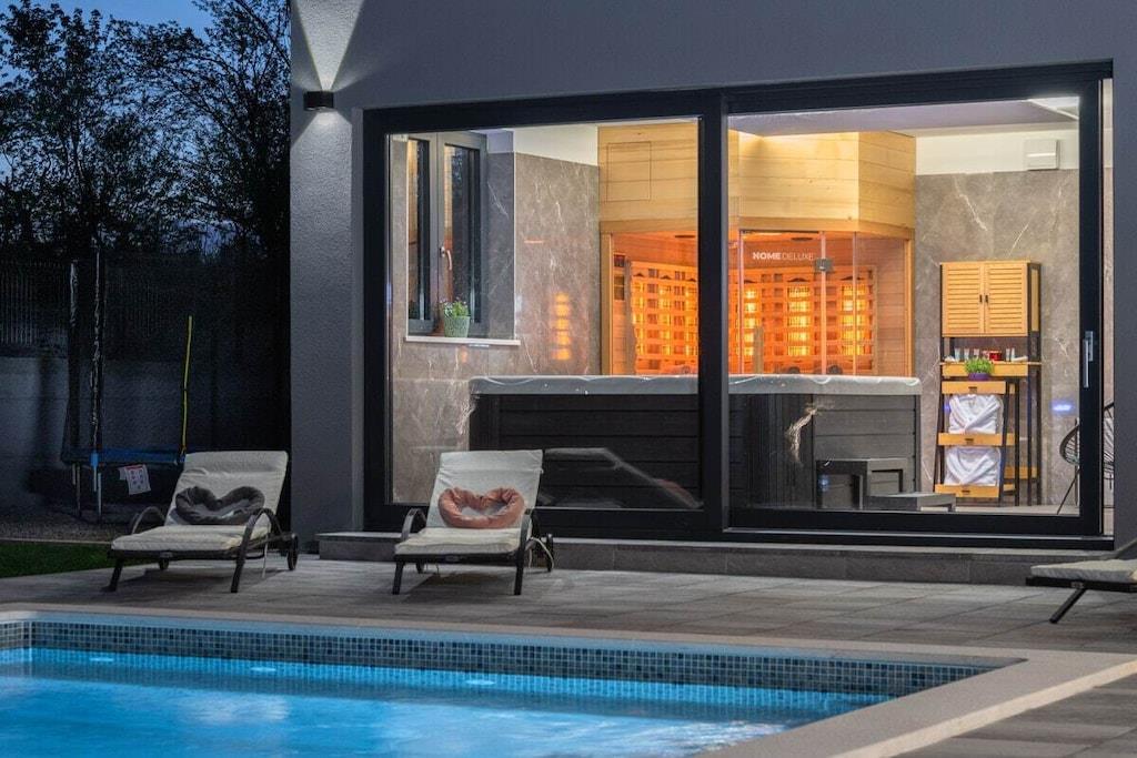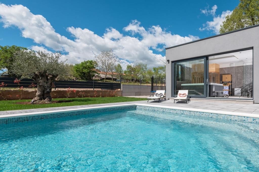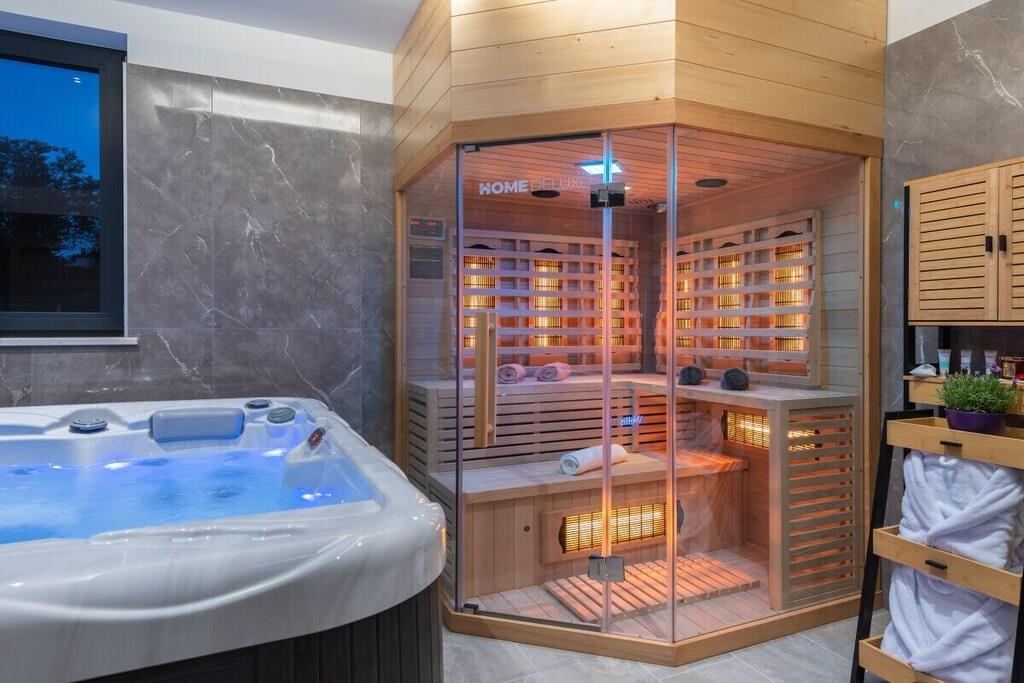 Villa Alison har grill på den overdækkede terrasse og gratis parkering i den indhegnede have. Den har to soveværelser, begge med aircondition og gulvvarme, og er udstyret med satellit-tv og kroatiske kanaler. Hvert soveværelse har et badeværelse. Den samlede kapacitet er til seks personer (4 voksne + 2 børn). Soveværelserne er møbleret med dobbeltsenge. Gratis Wi-Fi, satellit-tv, swimmingpool og grill er tilgængelige. Som du vil bemærke, skaber de dejlige detaljer en varm atmosfære, der får dig til at føle dig endnu mere komfortabel. Den 32 m² store opvarmede pool er også et højdepunkt. Men det er ikke alt – for at tage oplevelsen til et endnu højere niveau er der også en stor indendørs jacuzzi på 210x210 cm, en sauna og et siddeområde til fuldstændig afslapning.
