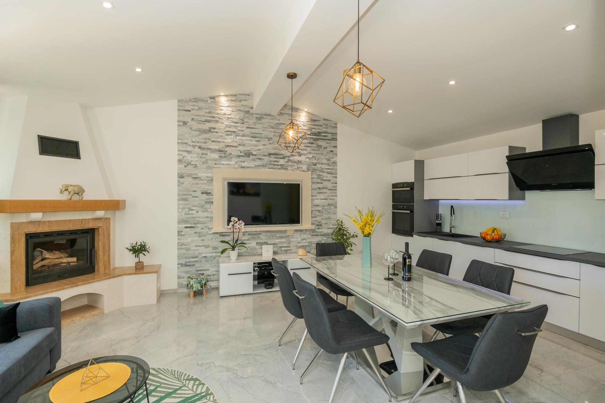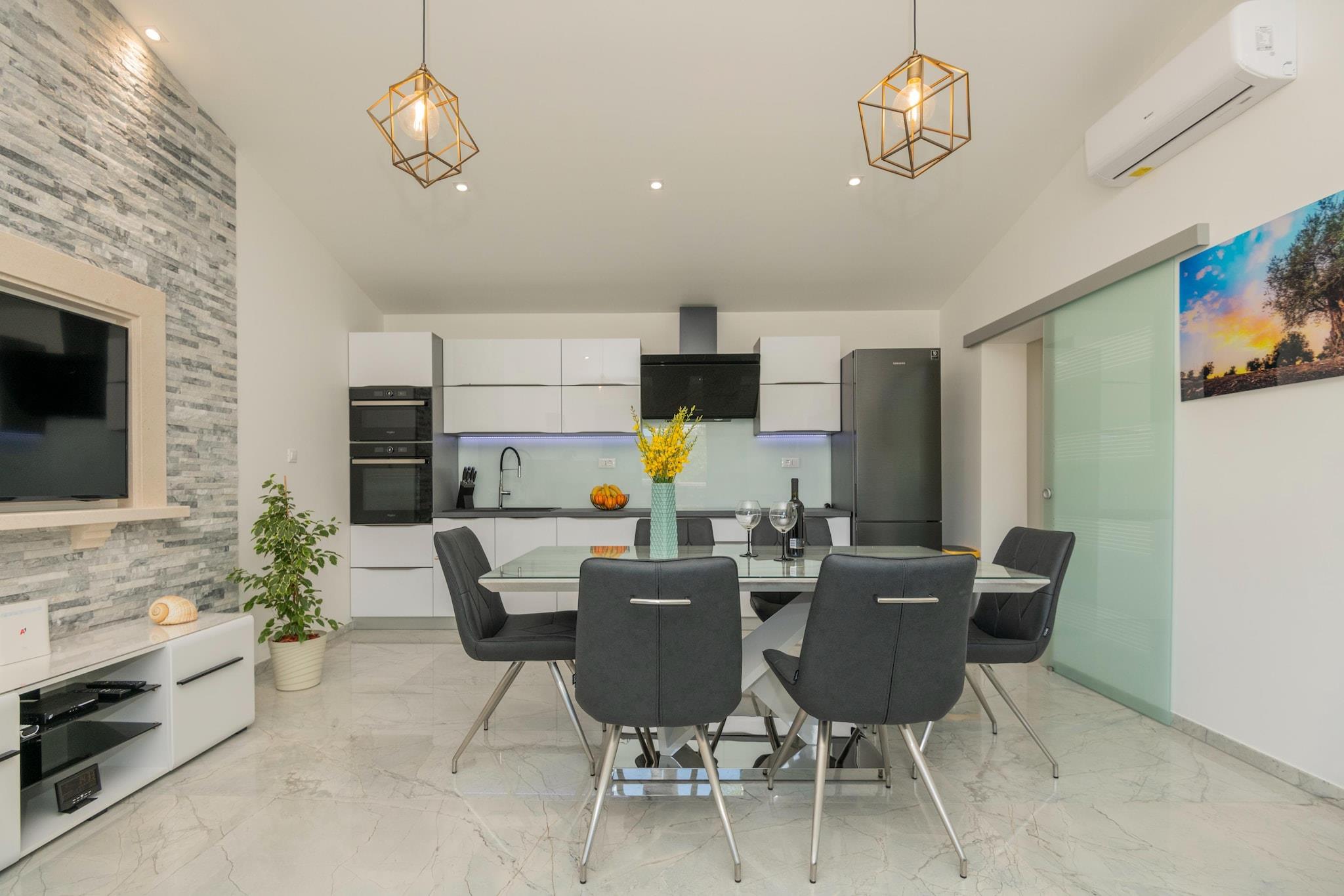Gemt i den fredelige landsby Naklice og kun en kort køretur fra Omiš' energiske by, er Feriehuset Maslina skabt til den perfekte genforening - den hvor tiden går langsommere, telefoner glemmes, og venskaber genoptages præcis hvor de slap. Med plads til op til 6 venner handler denne hyggelige sommerbase om let ophold, fælles måltider og spontane eventyr. Indeni det 70 m² store hjem er alt indrettet til komfort uden besvær. To afslappede soveværelser - det ene med en kingsize-seng, det andet med to enkeltsenge plus en sovesofa i stuen - gør sovearrangementerne fleksible for par eller venner, der deler. Den åbne stue, spisestue og det fuldt udstyrede køkken bliver dit daglige opholdsområde - uanset om det er morgenkaffe i stilhed, fælles morgenmadsplanlægning eller sene snacks efter en lang aften ude. Men den virkelige sommermagi sker udenfor. Din private have og terrasse forvandles til hjertet af genforeningen - grillaftener under stjernerne, afkølede cocktails efter stranddage og endeløse runder bordtenniskampe, der langsomt bliver mere konkurrenceprægede, efterhånden som aftenen skrider frem. Der er plads til at strække sig ud på liggestole, slappe af i skyggen og lade timerne gå ubesværet. Faciliteter for ekstra komfort inkluderer - PS3, brætspil, Wi-Fi, aircondition og privat parkering. Når du er klar til at skrue op for lyden, venter eventyret lige om hjørnet. Strandene, de historiske gader og den summende sommerstemning i Omiš ligger kun få minutter væk, mens Cetina-flodens vilde skønhed sætter scenen for rafting, ziplining, canyoning og adrenalinfyldte gruppeminder. Dette er den slags sted, hvor morgenen starter langsomt, dagene bruges på at jagte sol og saltluft, og nætterne tilhører historier, musik og latter.