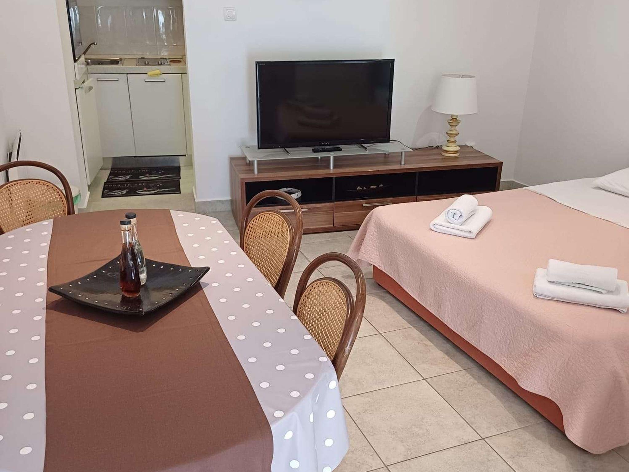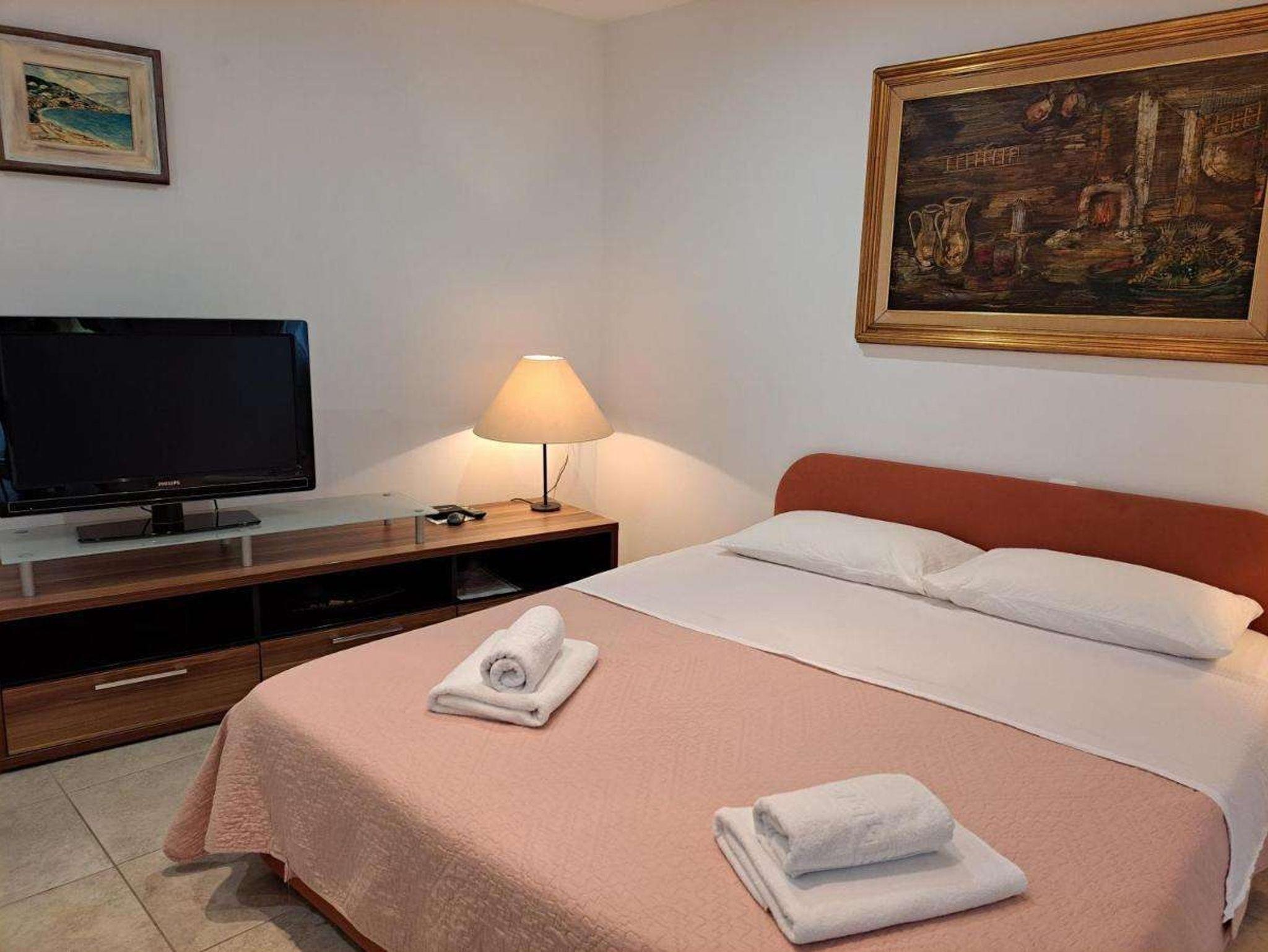 Ferienwohnung bietet Platz für 3 Gäste. Die Betten sind in Schlafzimmern, die es 1 gibt, und in Wohnzimmer, innerhalb einer Gesamtfläche von 34m2, angeordnet. Die Gäste haben eine eigene Terrasse zur Verfügung, auf der sie in warmen Sommernächten genießen können. In der Unterkunftseinheit besteht die Möglichkeit des Mitbringens von Haustieren gegen Aufpreis. IM PREIS INBEGRIFFEN: Kurtaxe, Endreinigung, Klimatisierung, Parkplatz, Internet. VERBINDLICHE ZUSÄTZLICHE KOSTEN: Aufzahlung für Kurzaufenthalte (prozentualer Zuschlag pro Nächtigungsanzahl: 30% - 1, 20% - 2, 10% - 3). UNVERBINDLICHE ZUSÄTZLICHE KOSTEN: Haustiere (8,00 € pro Nacht). Die Verfügbarkeit zusätzlicher Dienstleistungen in Ihrem reservierten Termin und die Preise derselben (falls nicht aufgeführt) müssen im Voraus überprüft werden. Zusätzliche Dienstleistungen die in der Zahlungsaufforderung nicht aufgeführt sind werden direkt beim Vermieter bezahlt, angenommen der Gast nutzt auch diese.