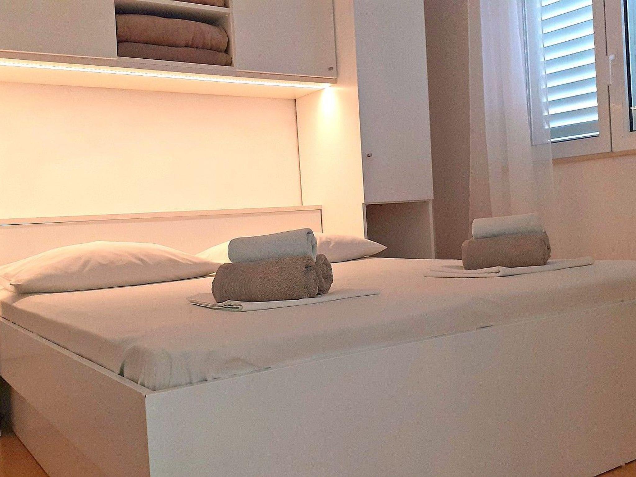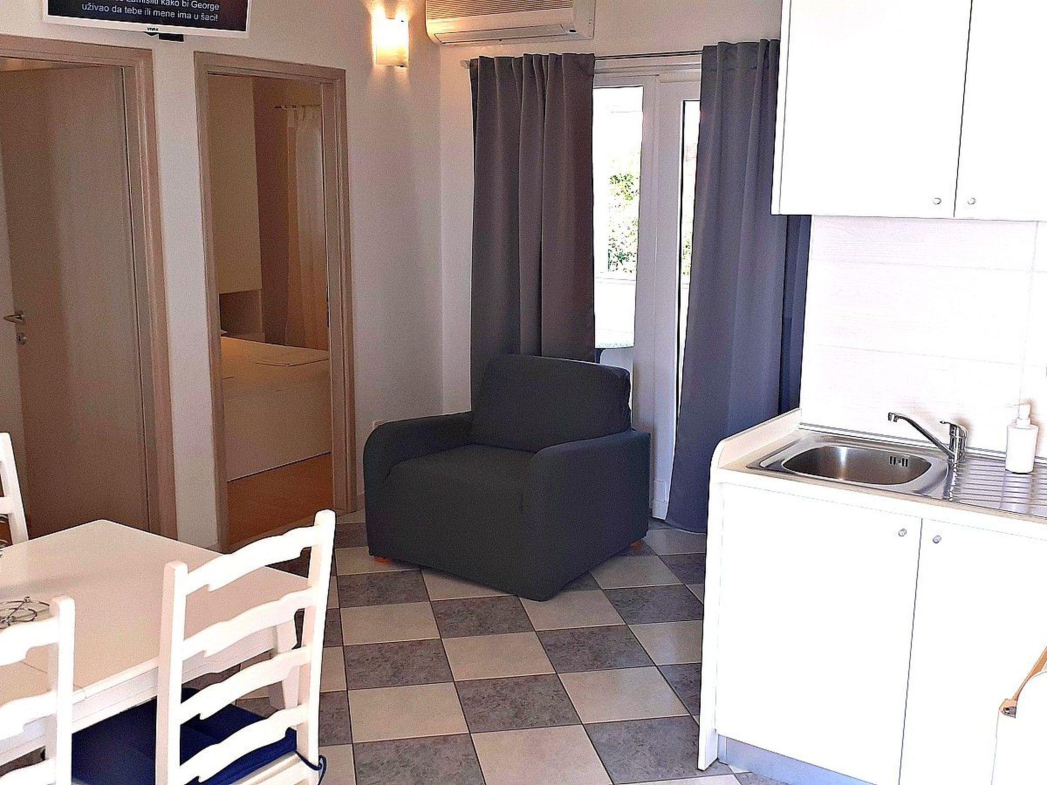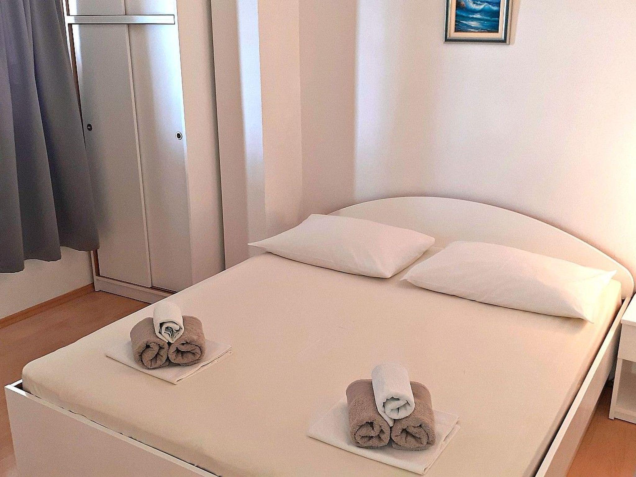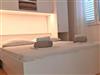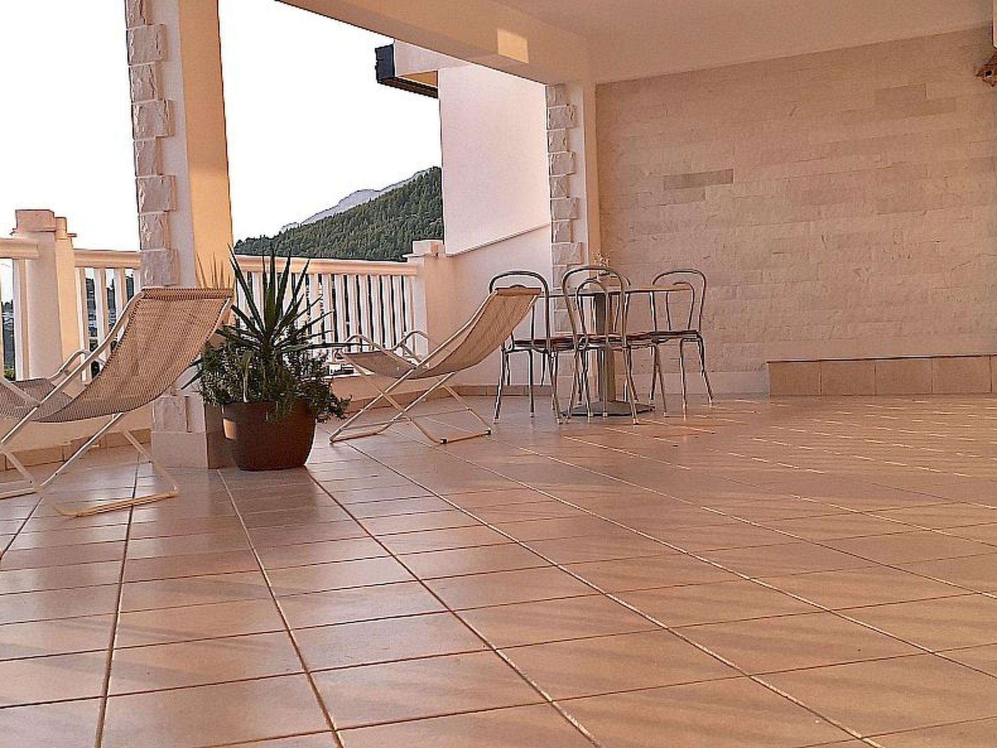 This beautiful holiday flat is located on the third floor for 4-5 persons with two bedrooms with double beds, equipped kitchen, toilet, bathroom with bathtub. Internet access, SAT-TV and air conditioning are also available. Flat has a nice covered terrace with sea view (shared with another flat) and a private balcony with mountain view.