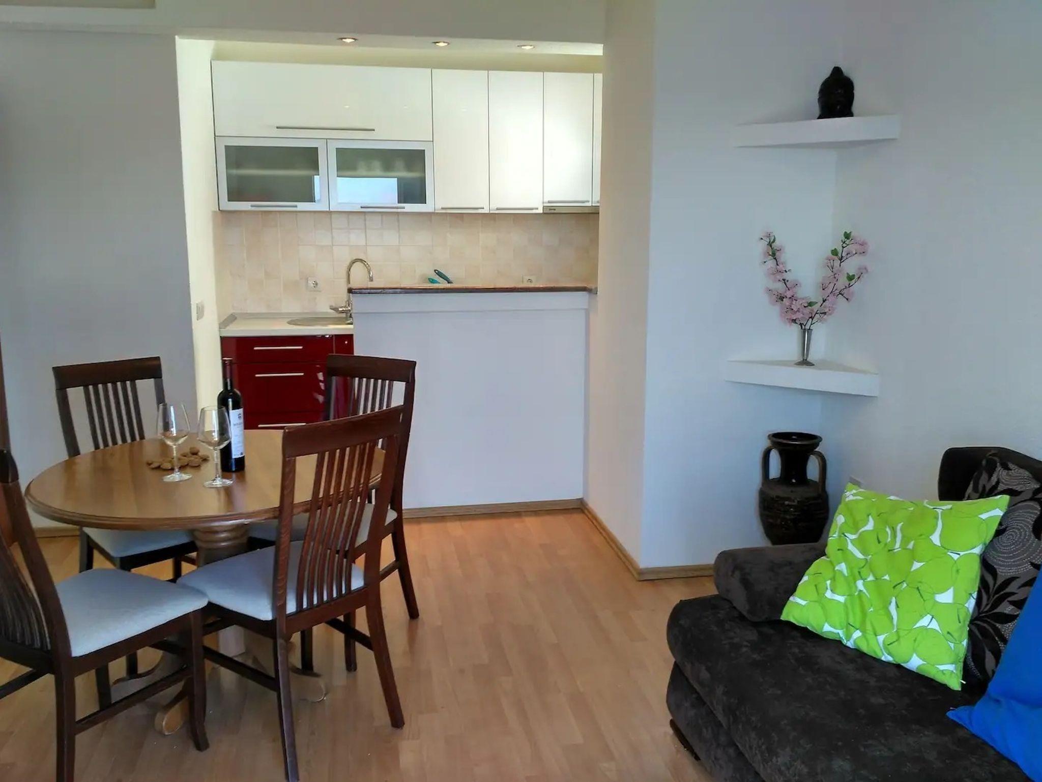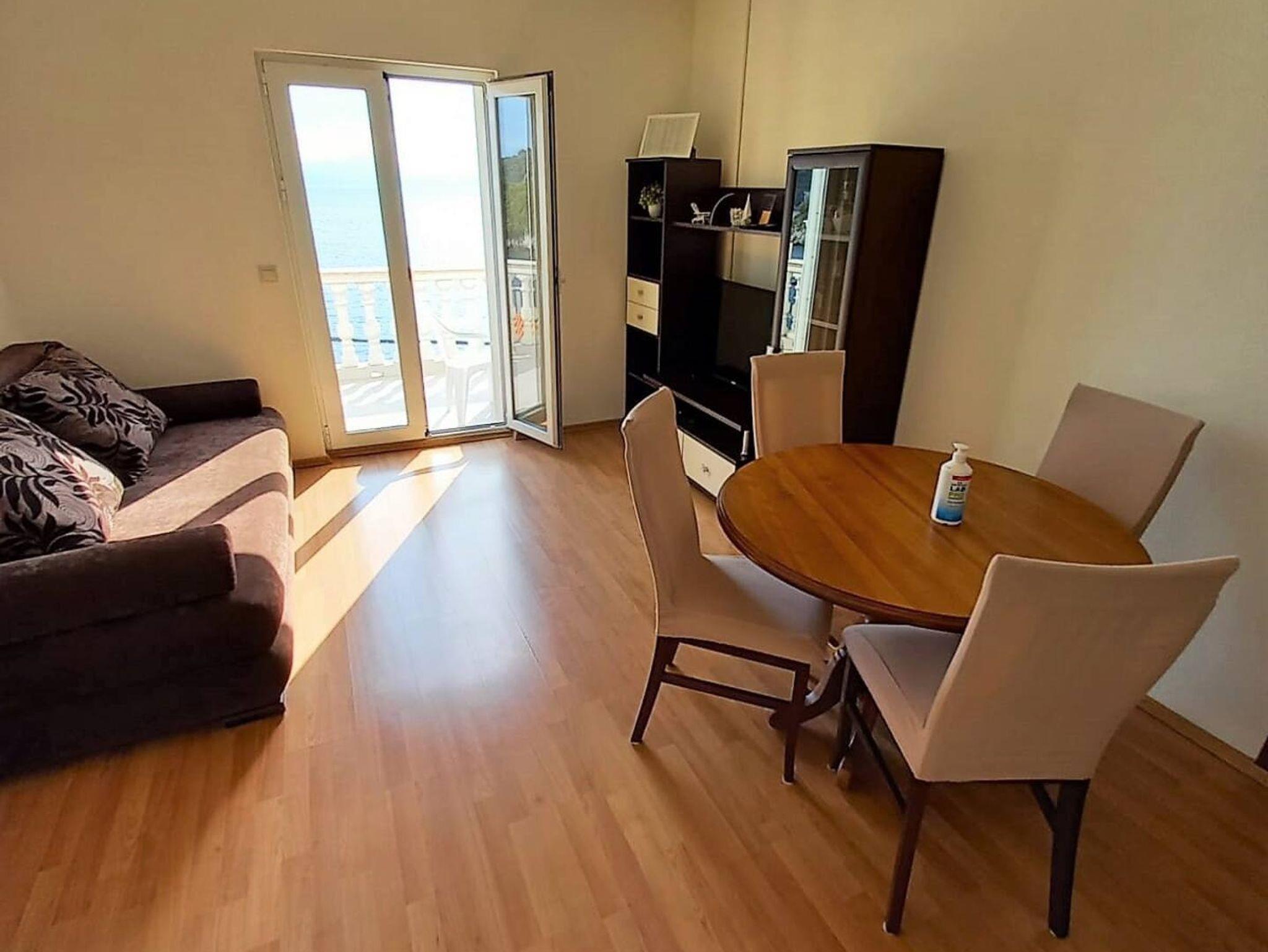 Ferienwohnung bietet Platz für 4 Gäste. Die Betten sind in Schlafzimmern, die es 1 gibt, und in Wohnzimmer, innerhalb einer Gesamtfläche von 45m2, angeordnet. Die Gäste haben eine eigene Terrasse zur Verfügung, auf der sie in warmen Sommernächten genießen können. Das Apartment bietet Meerblick. Es ist erlaubt, Speisen auf dem Gemeinschafts-Grill vorzubereiten. IM PREIS INBEGRIFFEN: Kurtaxe, Endreinigung, Klimatisierung, Parkplatz, Internet, Bootsanlegeplatz, Kinderbett, Föhn, Liegestühle. Die Verfügbarkeit zusätzlicher Dienstleistungen in Ihrem reservierten Termin und die Preise derselben (falls nicht aufgeführt) müssen im Voraus überprüft werden. Zusätzliche Dienstleistungen die in der Zahlungsaufforderung nicht aufgeführt sind werden direkt beim Vermieter bezahlt, angenommen der Gast nutzt auch diese.