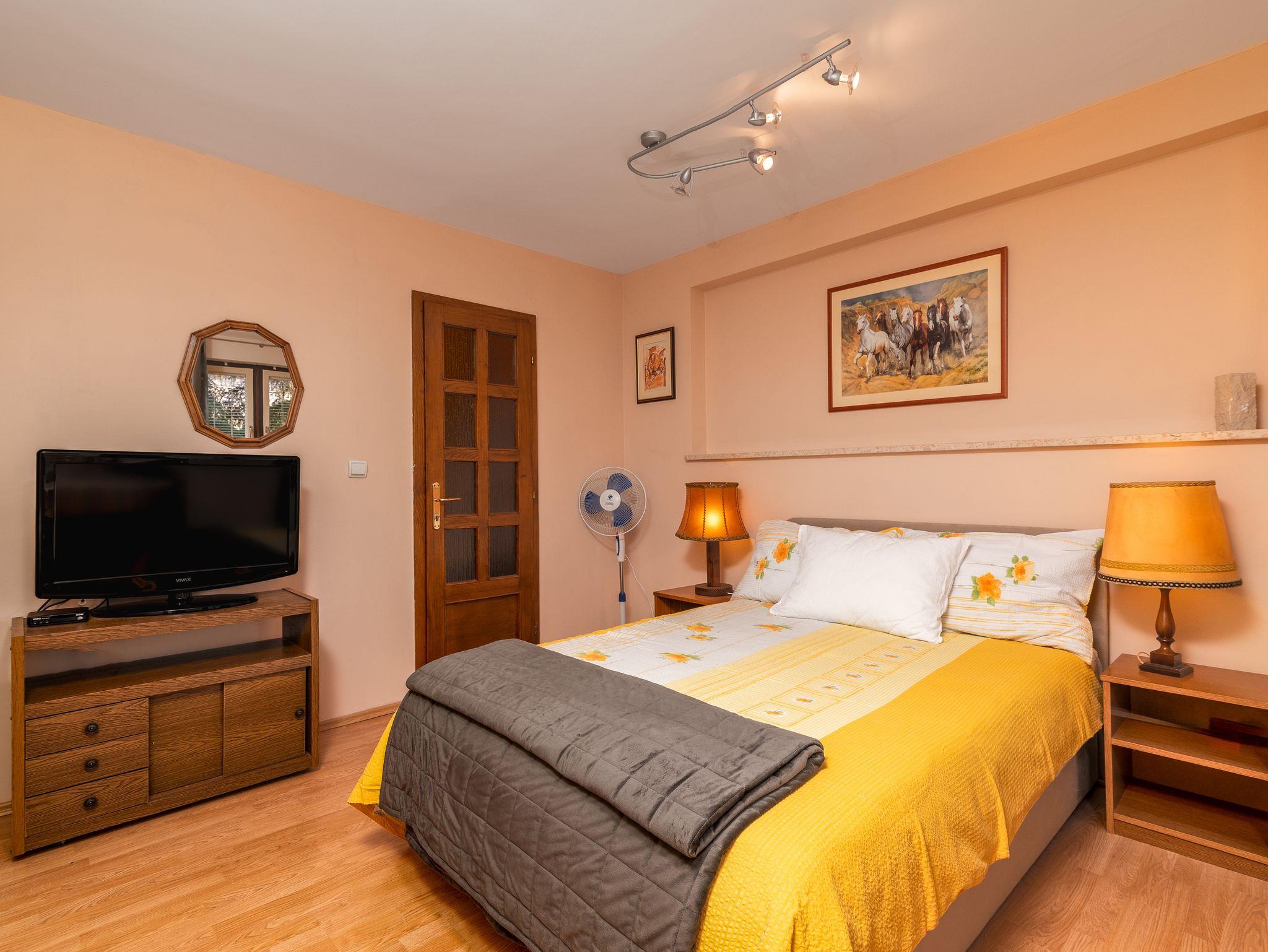 Ferienwohnung bietet Platz für 4 Gäste. Die Betten sind in Schlafzimmern, die es 2 gibt, innerhalb einer Gesamtfläche von 41m2, angeordnet. Die Gäste haben eine eigene Terrasse zur Verfügung, auf der sie in warmen Sommernächten genießen können. Es ist erlaubt, Speisen auf dem Gemeinschafts-Grill vorzubereiten. In der Unterkunftseinheit besteht die Möglichkeit des Mitbringens von Haustieren gegen Aufpreis. Räume der gebuchten Unterkunftseinheit werden nicht in eine Ganze verbunden. IM PREIS INBEGRIFFEN: Kurtaxe, Endreinigung, Parkplatz, Internet, Bügeleisen, Föhn. VERBINDLICHE ZUSÄTZLICHE KOSTEN: Aufzahlung für Kurzaufenthalte (prozentualer Zuschlag pro Nächtigungsanzahl: 30% - 1, 20% - 2, 10% - 3). UNVERBINDLICHE ZUSÄTZLICHE KOSTEN: Haustiere (5,00 € pro Nacht). Die Verfügbarkeit zusätzlicher Dienstleistungen in Ihrem reservierten Termin und die Preise derselben (falls nicht aufgeführt) müssen im Voraus überprüft werden. Zusätzliche Dienstleistungen die in der Zahlungsaufforderung nicht aufgeführt sind werden direkt beim Vermieter bezahlt, angenommen der Gast nutzt auch diese. Ermäßigung auf den Grundpreis: Gratistag 21=19 (bei einem Aufenthalt von 21 Tagen oder mehr erhalten Sie 2 Gratistage für den Aufenthalt bis 31.12.26).