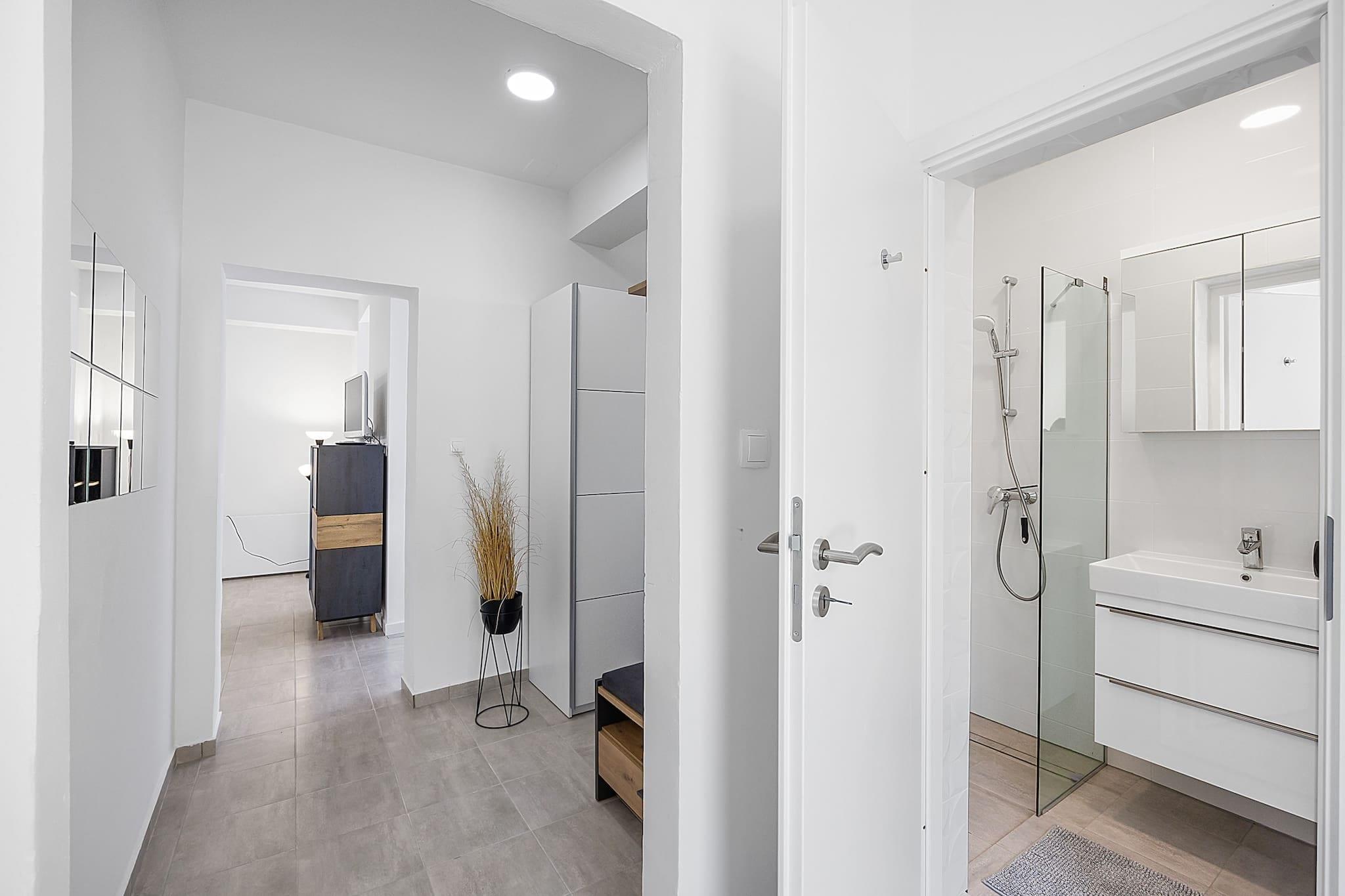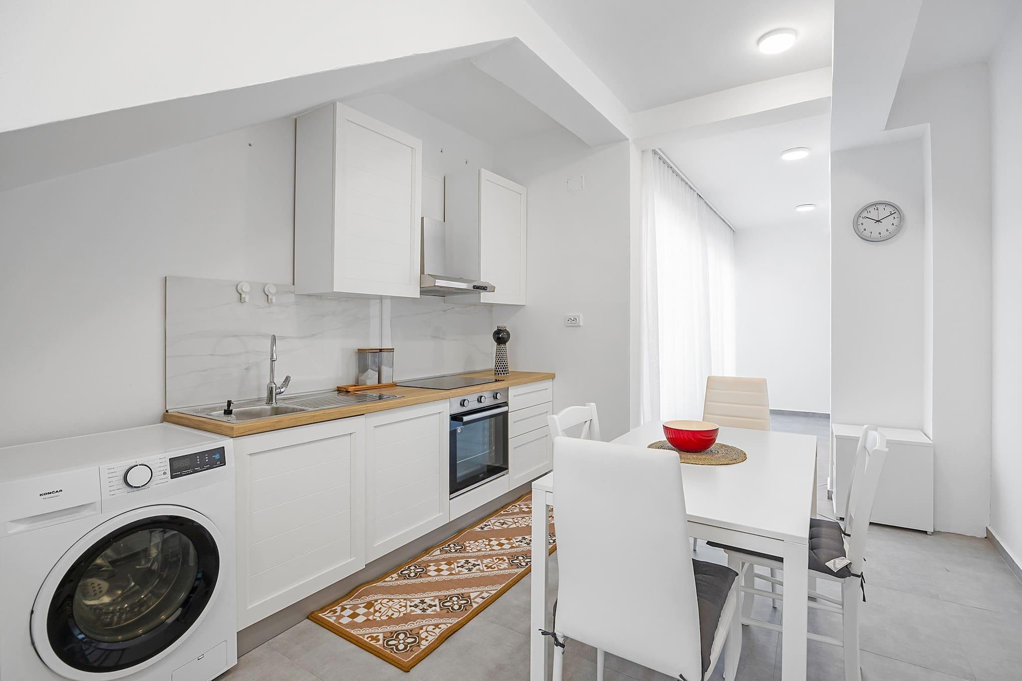 Ejendommen tilbyder sammen med et moderne interiør et afslappende tilflugtssted for par eller solorejsende med plads til op til 2 gæster. Denne lejlighed med 1 soveværelse har en queensize-seng og en sovesofa i opholdsstuen. Den har egen indgang og ligger i stueetagen, hvilket giver nem adgang til den fælles have med grillfaciliteter. Lejligheden har også væsentlige faciliteter såsom aircondition, gratis internet, satellit-tv og et fuldt udstyret køkken med induktionskomfur, køleskab, ovn og opvaskemaskine. Der er gratis privat parkering på stedet, og små kæledyr er tilladt med forudgående varsel og mod et tillægsgebyr. Lejligheden er beliggende i Banjol, en fredelig landsby på den smukke ø Rab, kun 300 meter fra stranden. Gæster kan nemt gå til nærliggende faciliteter såsom en købmand, restaurant, busstation og kæledyrsvenlig strand. Rab, kendt for sine mange sandstrande, er perfekt til familier med sin rige historie og naturskønne skønhed. Udforsk den gamle græske fæstning på St. Damian-bakken eller slentre gennem de smalle gader i Old Town Rab. Øens færgeforbindelse til fastlandet gør den let tilgængelig, og området byder på forskellige vandre- og cykelstier for naturentusiaster. Indvendigt har lejligheden en rummelig stue, der forbinder med køkkenet og spisepladsen, hvilket gør den ideel til at slappe af eller nyde måltider. Badeværelset er udstyret med bruser og vigtige toiletartikler, herunder kropssæbe og hårtørrer. Gæsterne kan også nyde en privat terrasse, perfekt til udendørs afslapning.
