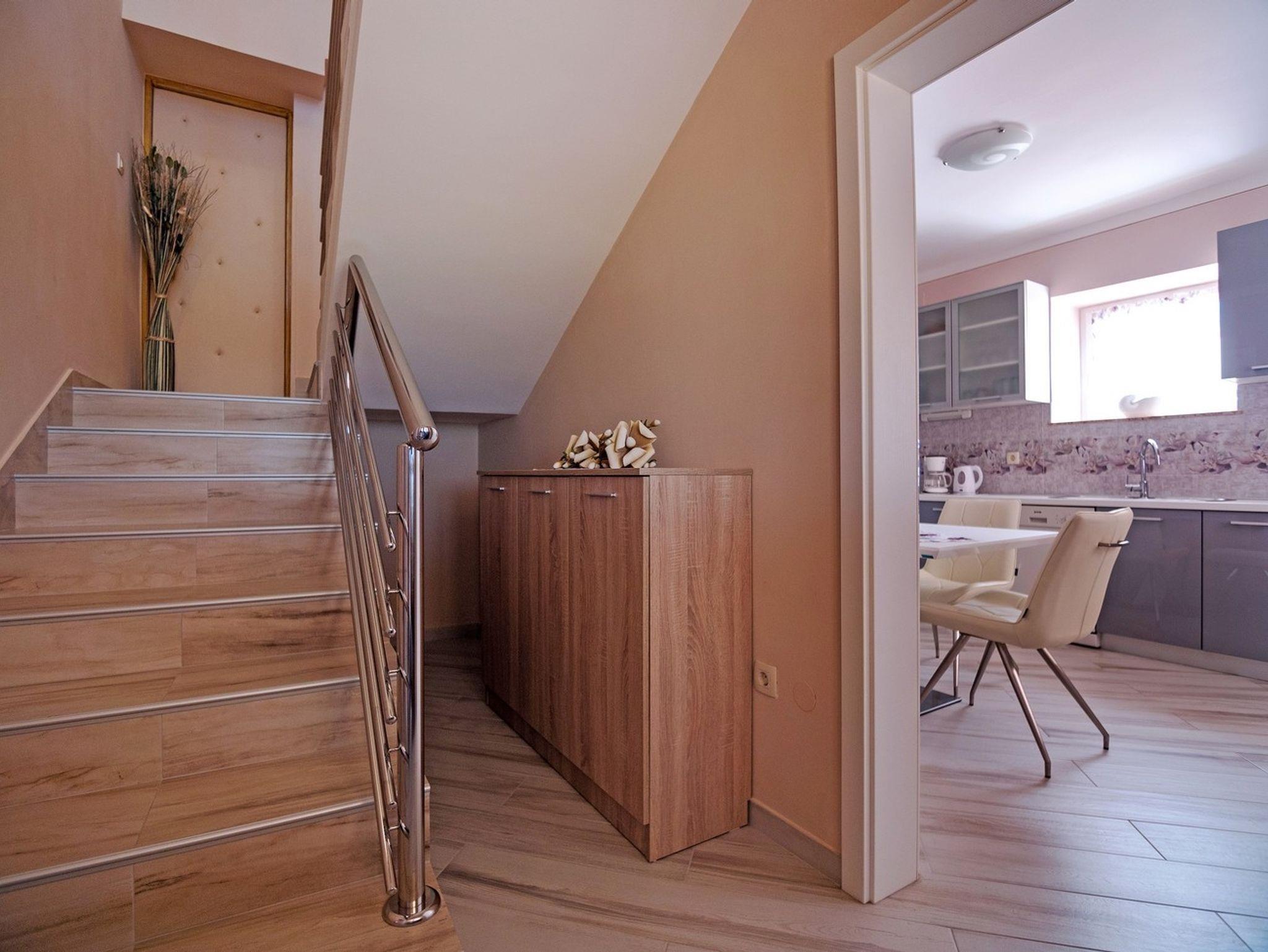Ferienwohnung bietet Platz für 6 Gäste. Die Betten sind in Schlafzimmern, die es 2 gibt, und in Wohnzimmer, innerhalb einer Gesamtfläche von 67m2, angeordnet. Die Gäste haben eine eigene Terrasse zur Verfügung, auf der sie in warmen Sommernächten genießen können. Das Apartment bietet Meerblick. Es ist erlaubt, Speisen auf dem Gemeinschafts-Grill vorzubereiten. Während ihres Aufenthalts können Gäste das gemeinsam zur Nutzung stehende Schwimmbad benutzen. IM PREIS INBEGRIFFEN: Kurtaxe, Endreinigung, Klimatisierung, Pool, Parkplatz, Internet, Kinderbett, Bügeleisen, Föhn, Sonnenschirm, Liegestühle. VERBINDLICHE ZUSÄTZLICHE KOSTEN: Aufzahlung für Kurzaufenthalte (prozentualer Zuschlag pro Nächtigungsanzahl: 30% - 1, 20% - 2, 10% - 3). UNVERBINDLICHE ZUSÄTZLICHE KOSTEN: Frühstück (13,00 €, 50% Nachlass für Kinder zwischen 4 und 12 Jahren, Kinder bis 4 Jahre sind frei.), Bootsanlegeplatz (5,00 € pro Nacht), Zusatzbett (10,00 € pro Nacht). Die Verfügbarkeit zusätzlicher Dienstleistungen in Ihrem reservierten Termin und die Preise derselben (falls nicht aufgeführt) müssen im Voraus überprüft werden. Zusätzliche Dienstleistungen die in der Zahlungsaufforderung nicht aufgeführt sind werden direkt beim Vermieter bezahlt, angenommen der Gast nutzt auch diese.