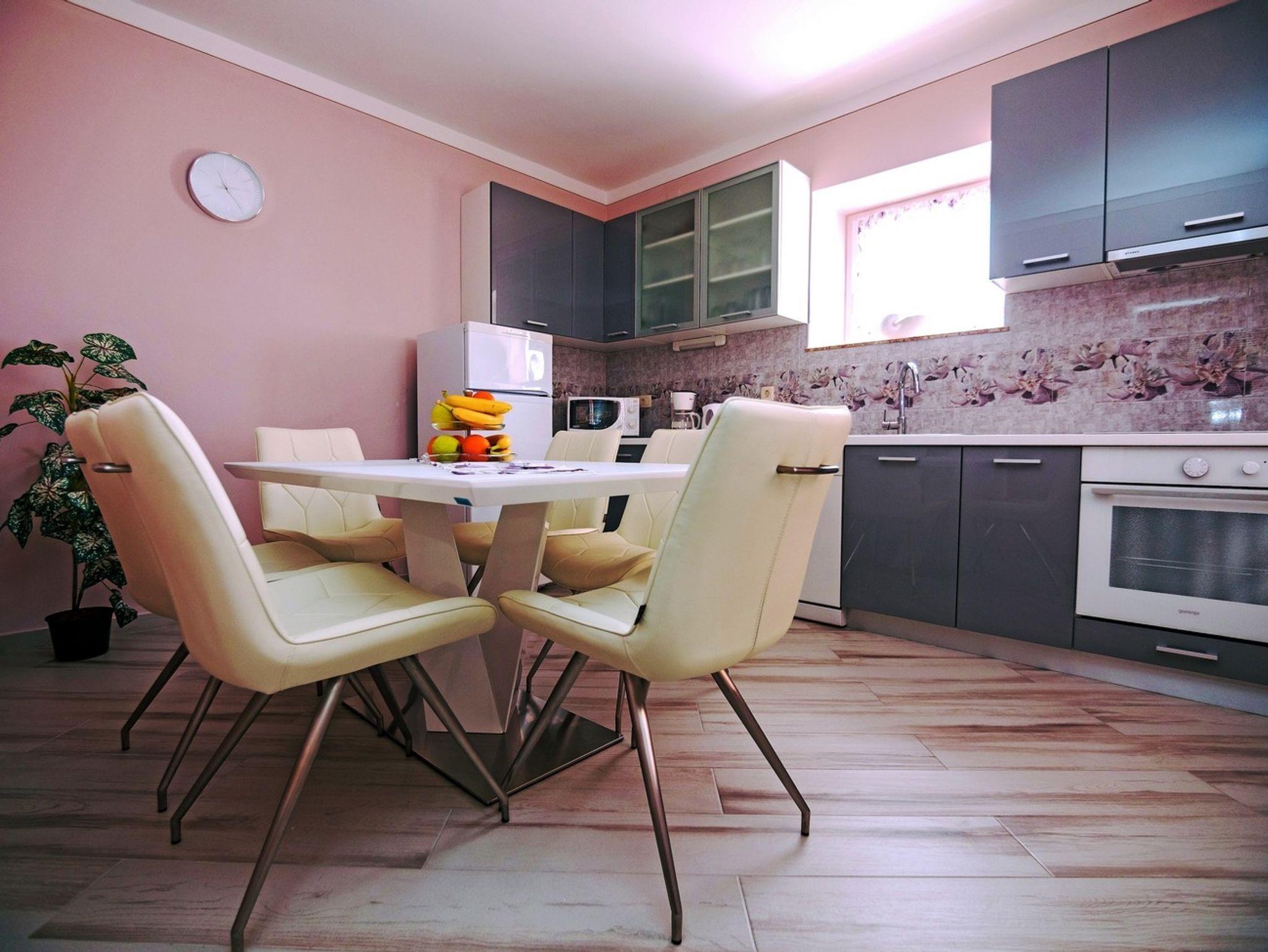 Umgebung des Objekts (Eingerichtet), Hof (1000m2, Kinderbereich, Sitzbereich), Parkplatz (Anzahl der Parkplätze: 4, Entfernung vom Objekt: im Hof), Pool: gemeinsam, Dimensionen: 8m x 4m x 1.5m, Wassertyp: Salzwasser, Grill: gemeinsam, Frühstück, WiFi Internet, Bootsanlegeplatz (Entfernung vom Objekt: 500 m, Bootsanlegeplatztyp: an der Küste), Föhn, Bügeleisen, Sonnenschirm, Liegestühle, Kinderbett