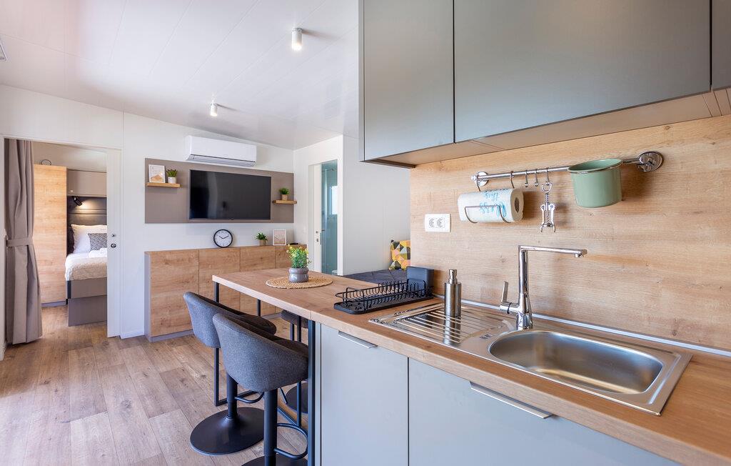 En stilfuld indretning og en fantastisk atmosfære venter jer i dette smukke feriehus lidt syd for Pula på halvøen Istrien. Boligen byder på god plads med spændende designløsninger samt en fantastisk komfortabel boligindretning. Tilbring en luksusferie på denne campingplads, og brug den flotte, overdækkede terrasse som et opholdsrum. Her kan I både tænde op for grillen, spise og slappe af efter nogle begivenhedsrige dage.