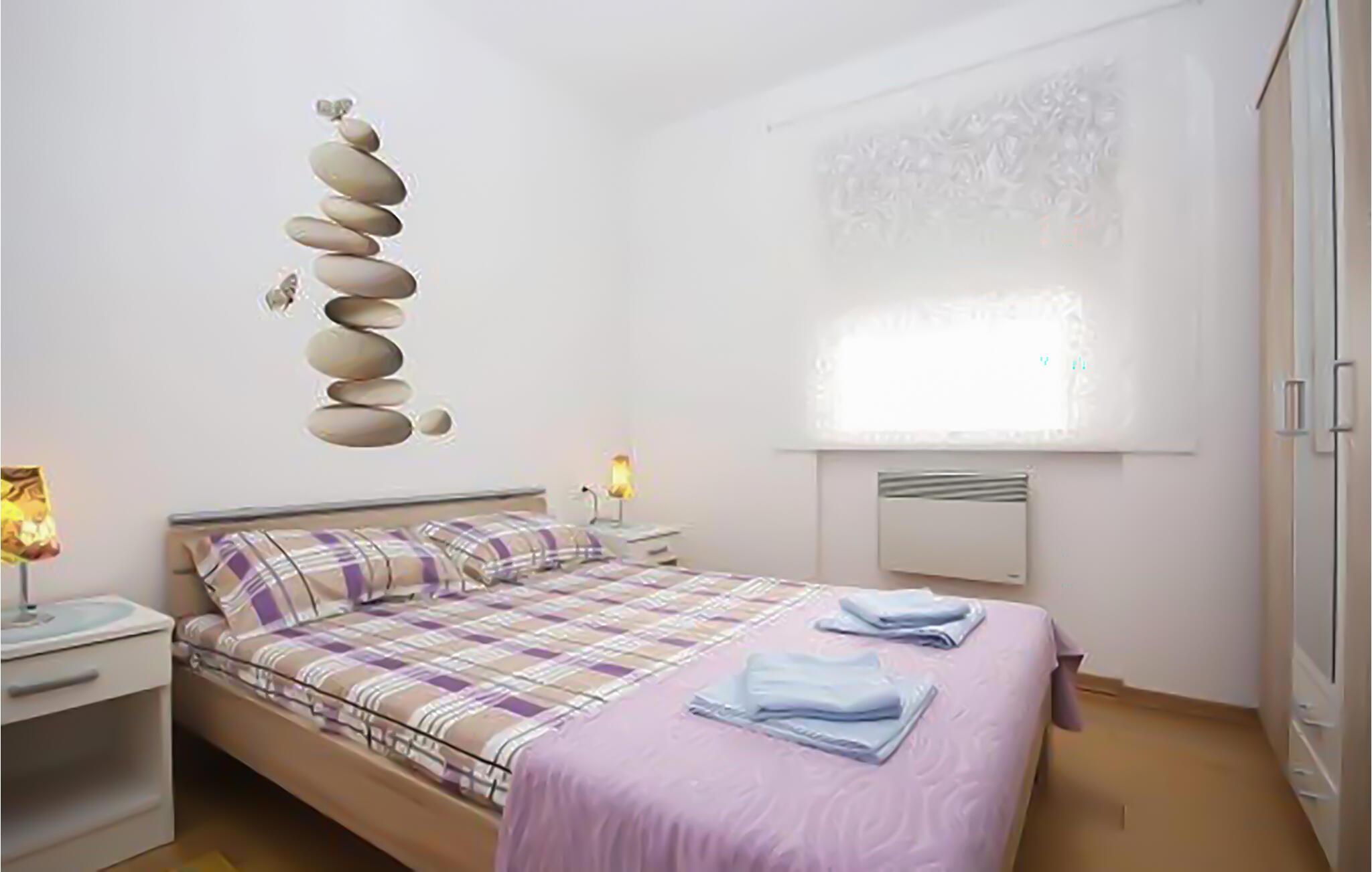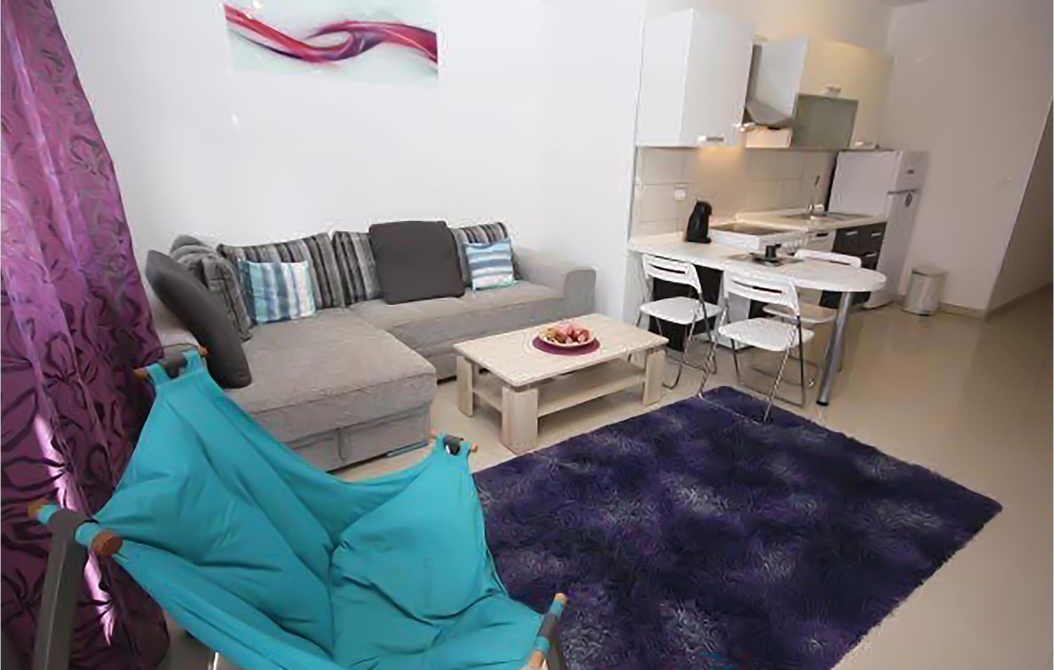 Dette moderne møblerede feriehus byder jer velkommen i en fredelig beliggenhed, kun en kort gåtur fra en smuk stenstrand med krystalklart vand. Sæt hverdagen på pause, mens I tilbereder middelhavsretter og planlægger jeres aktiviteter over hyggelige måltider. Om aftenen kan I læne jer tilbage med en god bog i den behagelige sofa eller tilbringe kvalitetstid med familien under en sjov spilleaften.