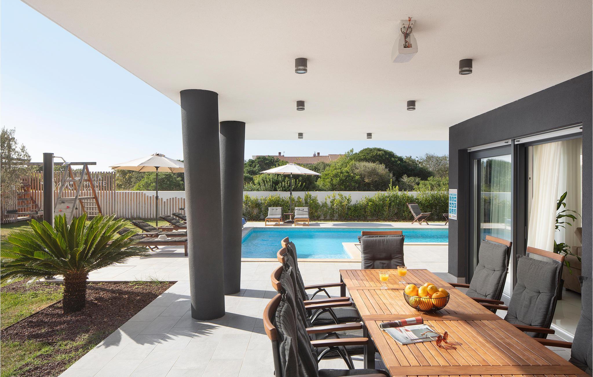 I kan også se frem til et fantastisk udendørsområde. Læn jer tilbage i liggestolene, snup et dyp i den store pool, se børn hvine af fryd på gyngerne eller sæt jeri spabadet og nyd varmen i spabadet på sommeraftenerne udendørs.