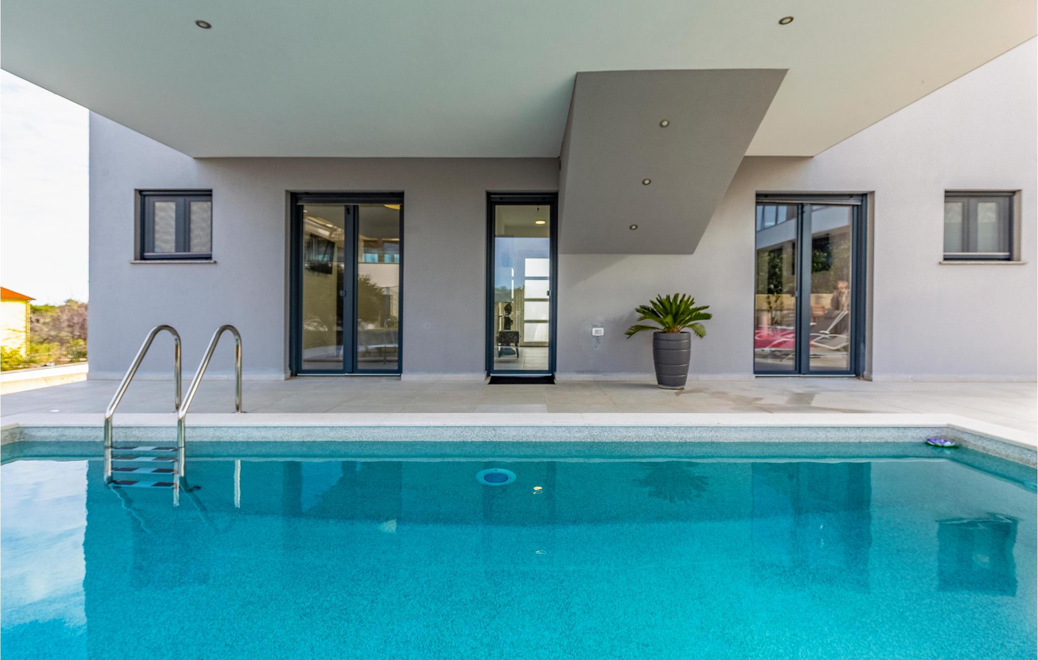 Glæd jer til en dejlig familieferie i dette moderne feriehus, som har pool og havudsigt!
