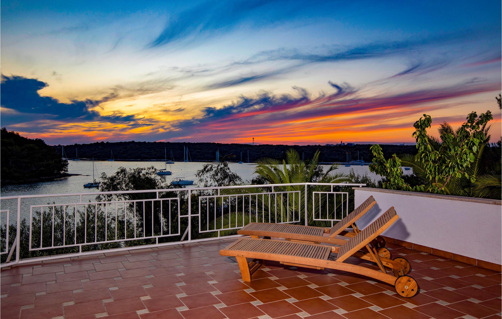 Fra terrasserne kan I se havet og de grønne omgivelser, mens I sidder i skyggen, hvor I kan skjule jer for solen.