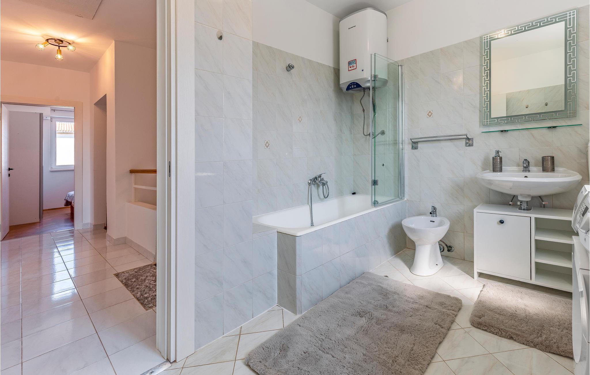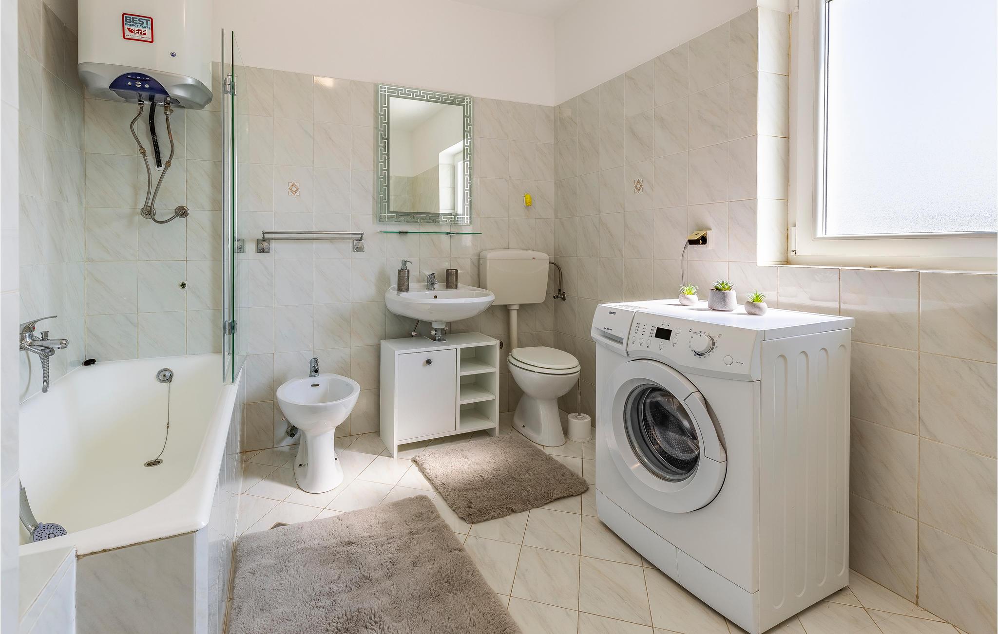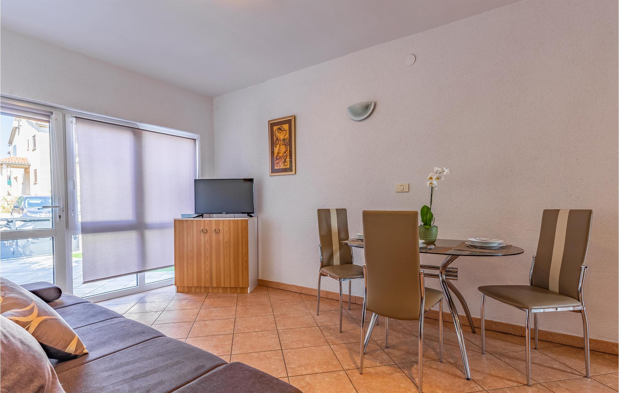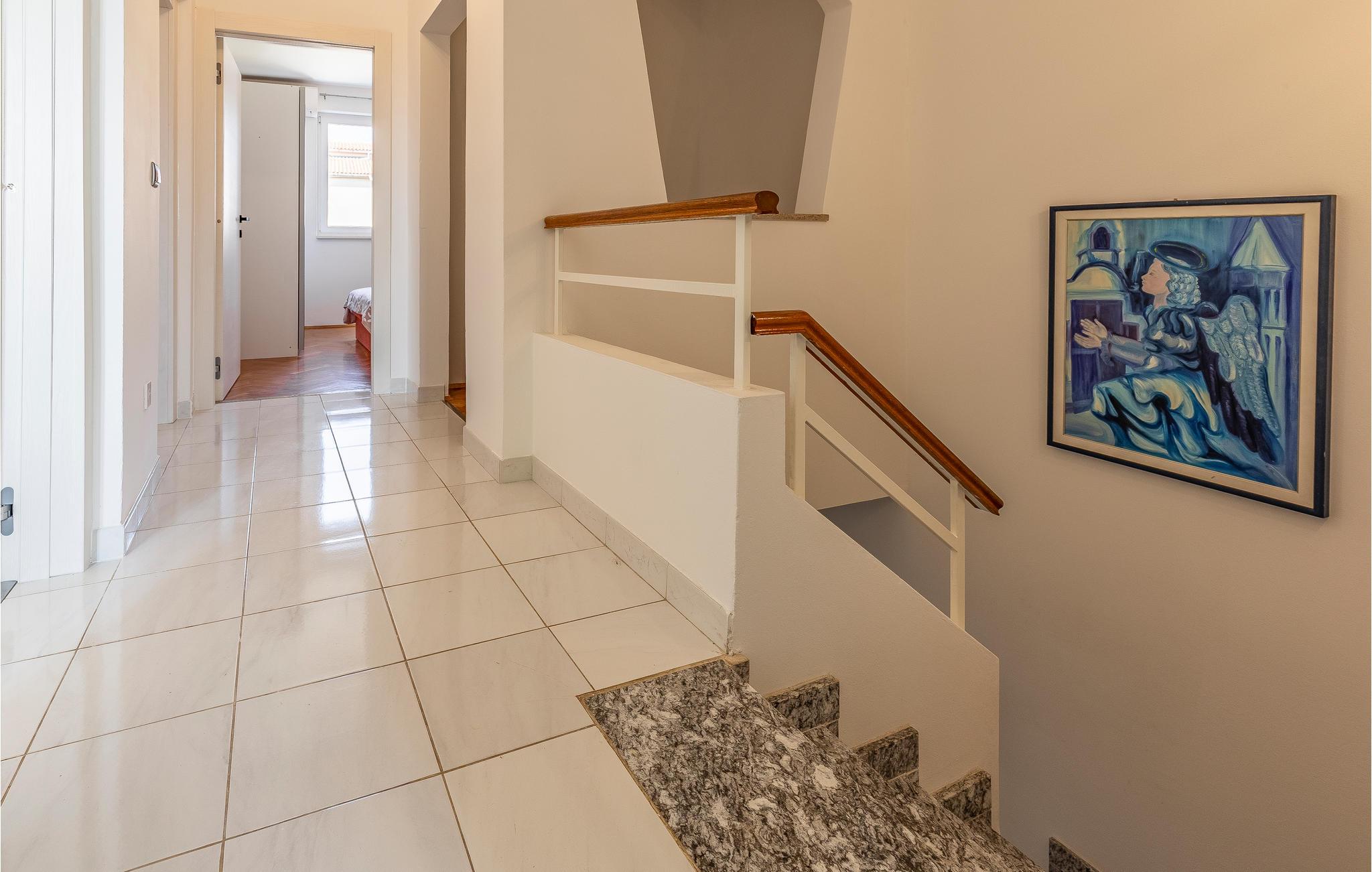 Det er beliggende i et roligt område tæt på butikker og restauranter med rige traditionelle, istriske specialiteter og fritidsfaciliteter. Den udendørs pool, der er oplyst i forskellige farver, med et vandfald og hydromassagestråler, indbyder til forfriskende dukkerter og afslapning i løbet af dagen og om aftenen. Grunden er indhegnet og velegnet til børn. Nyd at slappe af på liggestolene med forfriskende drinks, og tilbring hyggelige aftener med grillmad ved poolen.
