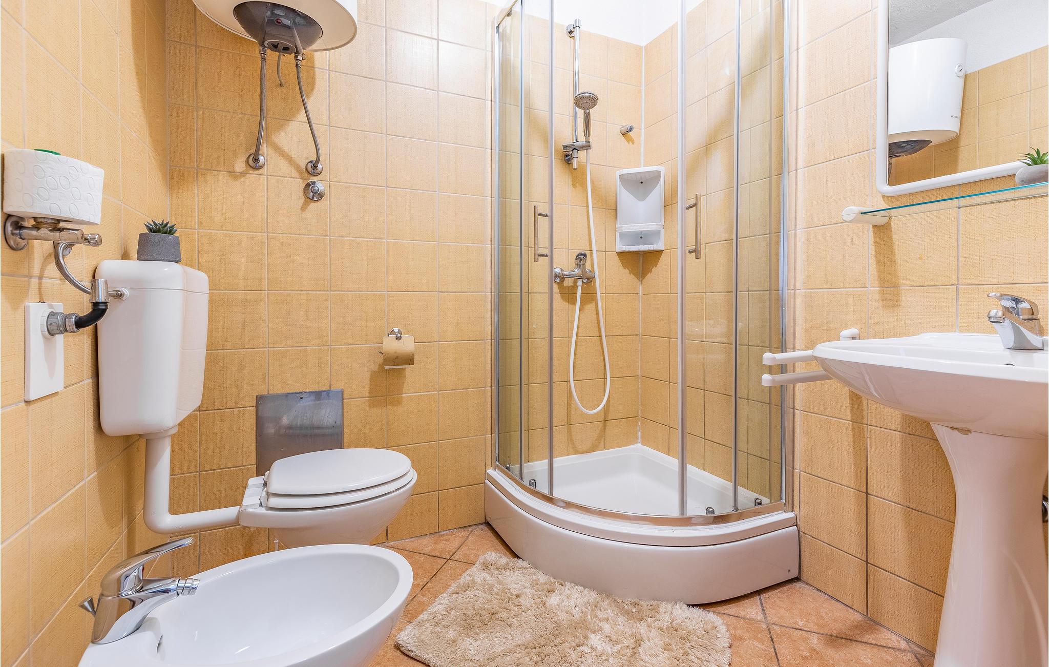Badeværelse (nr. 1) - WC. Varmt og koldt vand. Bruser