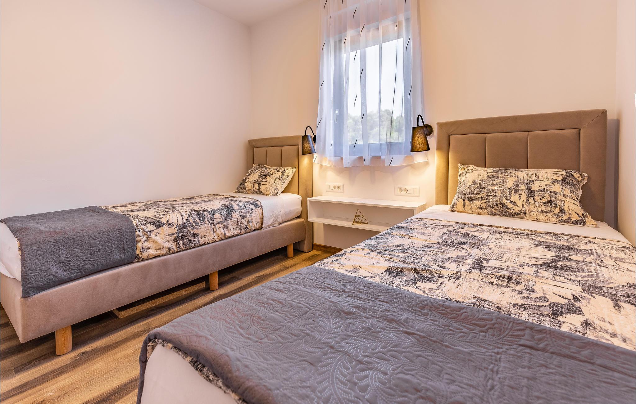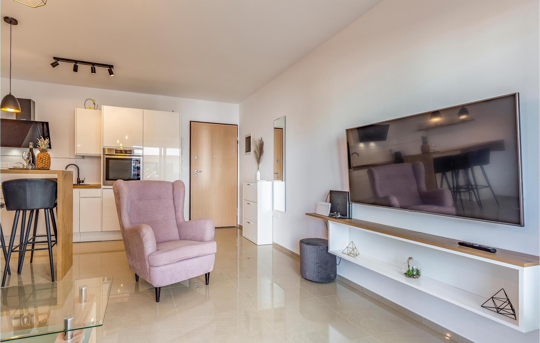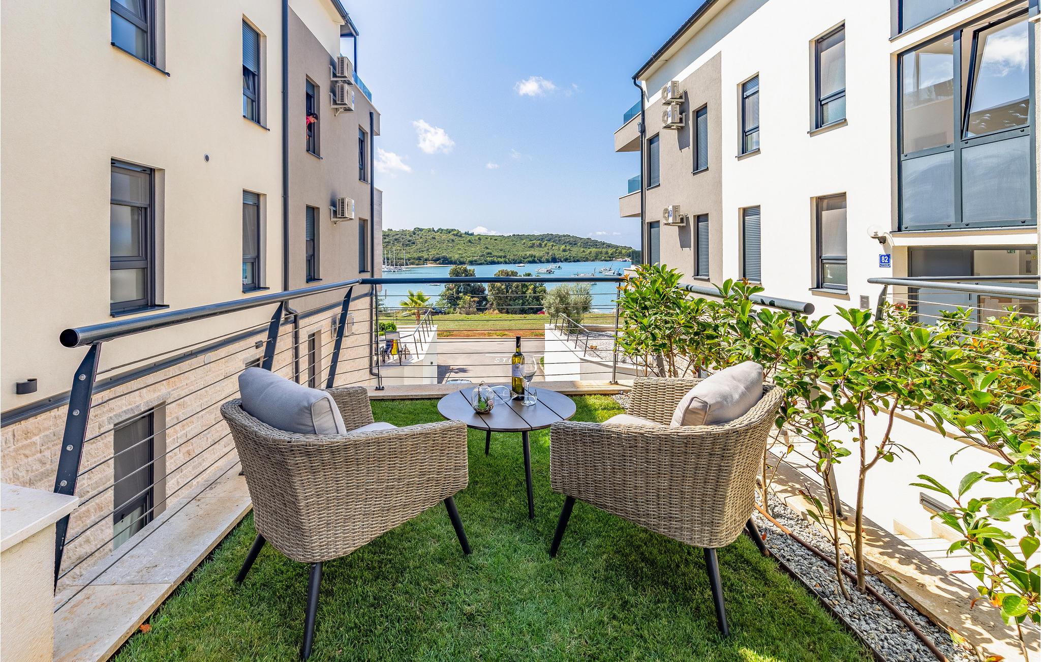På varme dage tilbyder den fælles udendørspool afkøling og badesjov. Lejligheden har også to terrasser, så I altid har et behageligt sted at læse eller nyde dagens første kop kaffe.