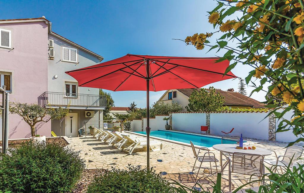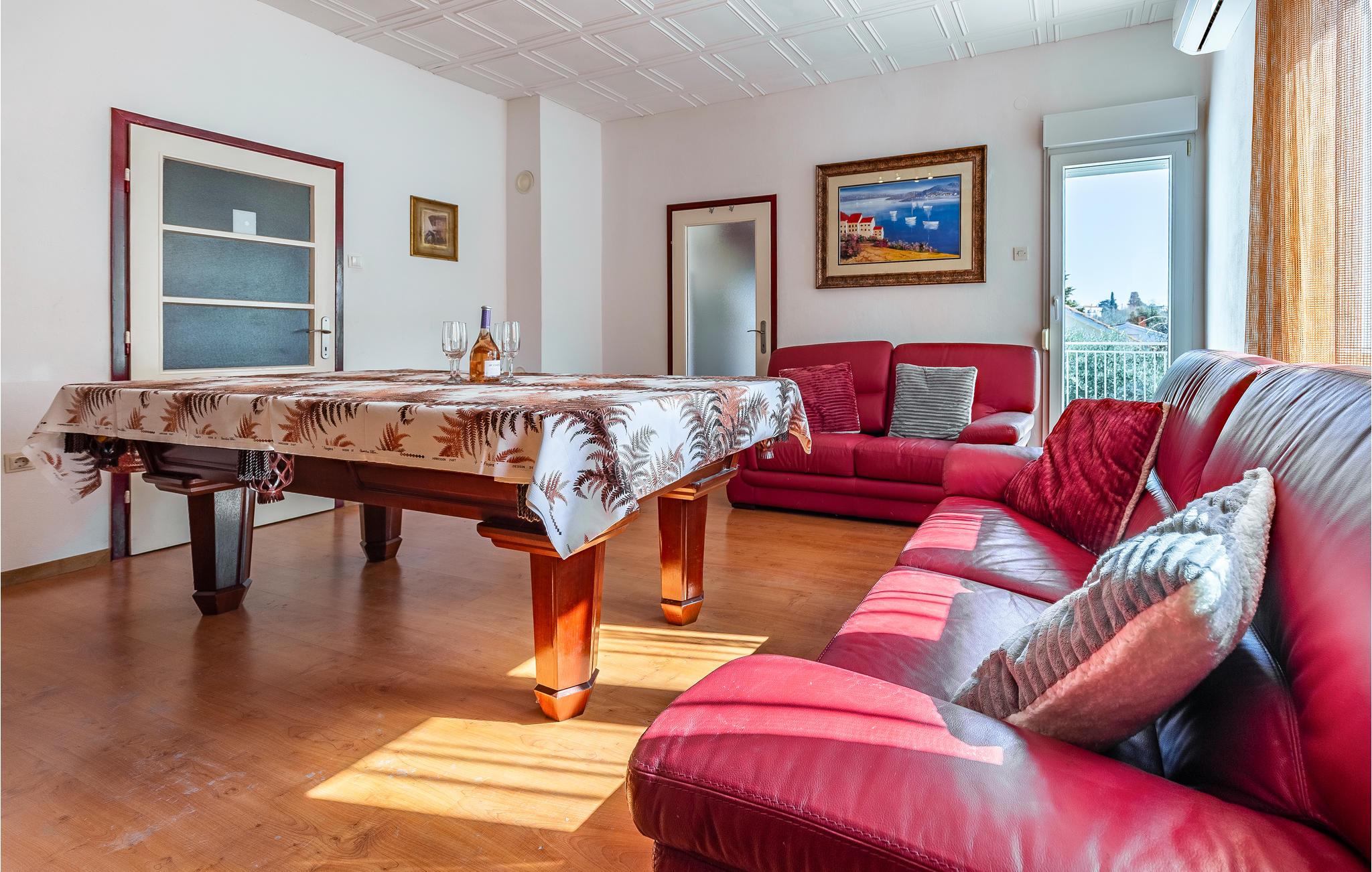 Velkommen til denne indbydende ferielejlighed med aircondition, som ligger i Banjole direkte syd for den store by Pula. Lejligheden ligger på første sal og er perfekt til en familie, der ønsker at holde en skøn sol- og badeferie. I har flere terrasser til rådighed, hvor I kan nyde dagens første kop kaffe og jeres morgenmad, mens I lægger planer for dagen. Bliver det endnu en badedag ved poolen eller ved grusstranden, som ligger 150 meter væk, og hvor I kan svømme i Adriaterhavets krystalklare vand? Eller hvad med en kulturel dagsudflugt til Pula, hvor I kan opleve mange historiske seværdigheder, som det gamle amfiteater eller Augustus-templet? Senere på dagen kan I spise på restaurant eller blive hjemme og tilberede et lækkert feriemåltid på fællesgrillen.