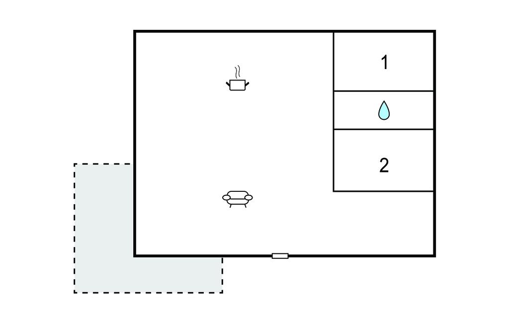 Opholdsstue 20m2 - 1 Soveplads. (Sofa, madras eller lignende).