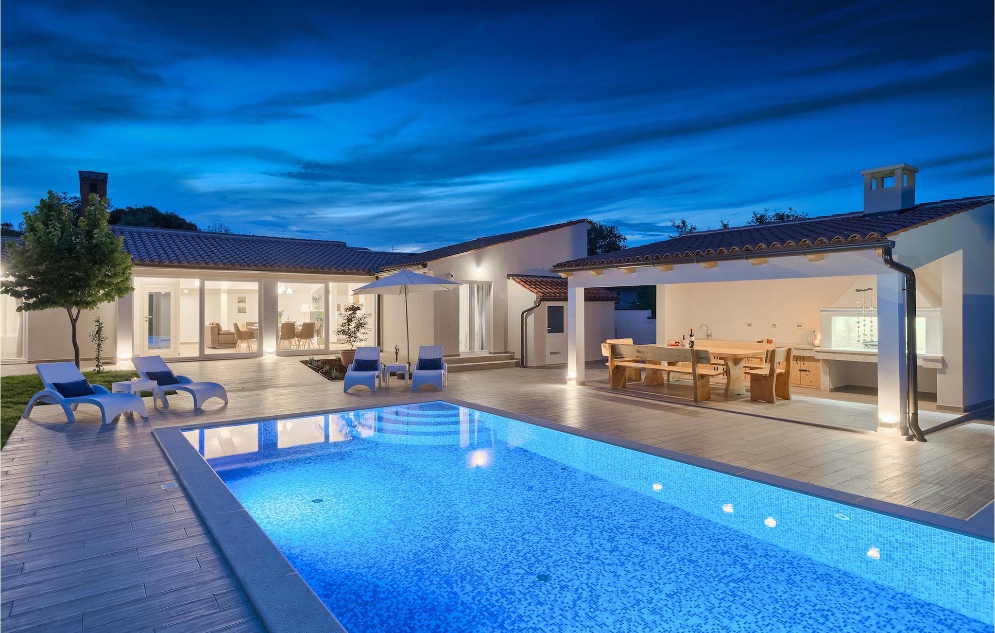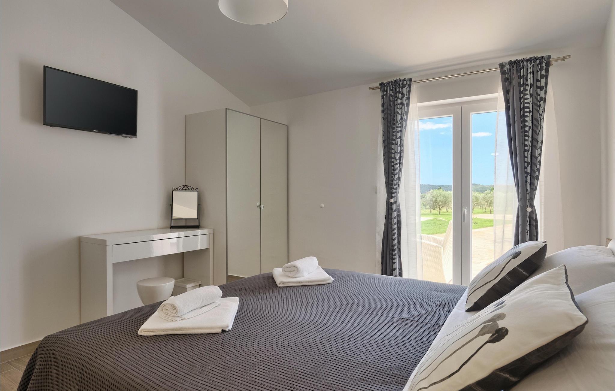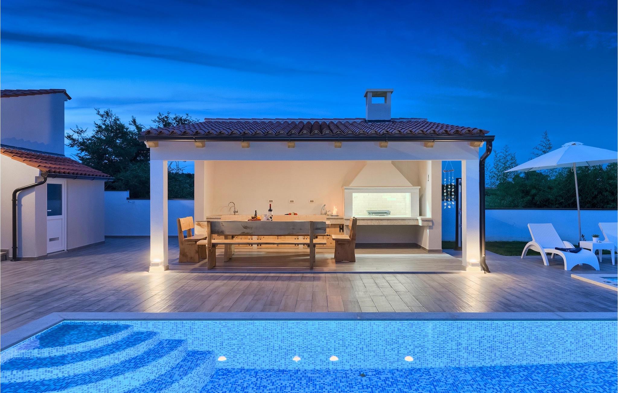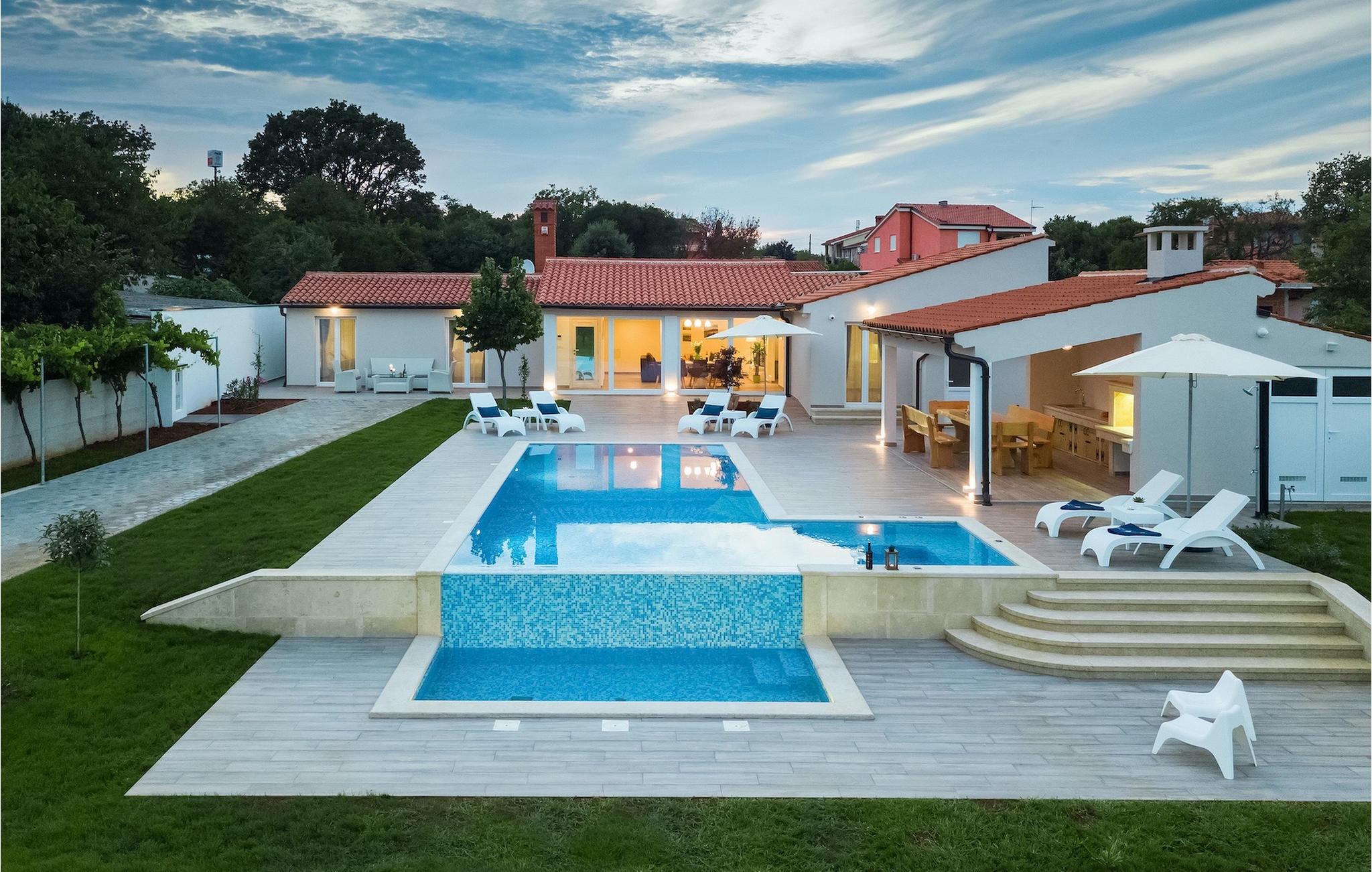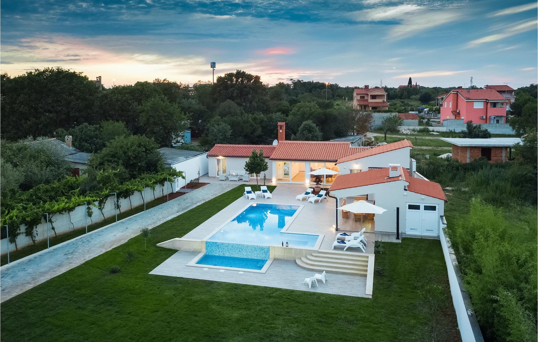 Die Villa MileManda befindet sich in der ruhigen Nachbarschaft Banjole, nur wenige Autominuten vom Stadtzentrum von Pula entfernt. Die Villa verfügt über 3 Schlafzimmer, die alle in einem romantischen und eleganten Stil eingerichtet sind, und kann bis zu 6+2 Gäste beherbergen. Alles ist in einem sehr warmen Stil gehalten und gibt Ihnen ein Gefühl von Zuhause. Der offene Wohnbereich besteht aus einem gemütlichen Wohnzimmer mit TV, einem Essbereich mit großem Tisch, einer modernen und voll ausgestatteten Küche und einem separaten Badezimmer. Alle Schlafzimmer befinden sich im Erdgeschoss und verfügen über ein eigenes Badezimmer, Klimaanlage und Fernseher. Vom Wohnbereich aus haben Sie direkten Zugang zum Außenbereich, der Sie sprachlos machen wird. Wenn Sie Ihren Urlaub in der Sonne verbringen möchten, finden Sie vor der Villa einen großen und sehr einladenden Pool mit Hydromassage. Fahrräder stehen zu Ihrer Verfügung, um die weitere Umgebung zu entdecken und zu erkunden. Die Villa bietet Ihnen viele weitere Möglichkeiten, aktiv zu bleiben, wie Basketball, Volleyball und Badminton. Für besondere Familienmomente bietet die Villa einen großen überdachten Essbereich im Freien mit Gasgrill, der der perfekte Ort für ein Familientreffen ist. Ein großer Olivengarten ist der perfekte Ort, um die Vorteile dieser ruhigen Lage zu genießen, wo Sie sich entspannen können, während Sie Ihr Lieblingsbuch lesen.Die Villa MileManda befindet sich in der Nähe von Pula, in Banjole, bekannt für seine schönen Strände und Promenaden am Meer. Zum Zentrum von Pula benötigen Sie ca. 10 Minuten mit dem Auto. Wir empfehlen Ihnen, einen Spaziergang durch die historische Stadt zu machen und die zahlreichen Gebäude aus der römischen Zeit zu besichtigen, wie z.B. das Amphitheater und den Augustustempel. Alle Naturliebhaber werden von der unberührten Natur von Premantura und dem Brijuni-Nationalpark begeistert sein, die sich unweit der Villa befinden. Premantura ist der südlichste Teil von Istrien, ist sehr felsig und verbirgt viele unberührte Strände und zahlreiche Radwege. Der Nationalpark Brijuni ist eine Gruppe von Inseln und Inselchen, die mit dichtem Kiefernwald bedeckt sind. Auf der Insel finden Sie zahlreiche archäologische Stätten, einen Golfplatz, ein Museum und einen Zoo. Gastronomie-Liebhaber sollten unbedingt das Landesinnere Istriens besuchen und viele traditionelle Gerichte wie Boskarin, Trüffel und istrische Nudeln probieren. Nach einem leckeren Mittagessen, machen Sie einen Spaziergang durch die mittelalterlichen Städte wie Motovun, Buzet und Groznjan.