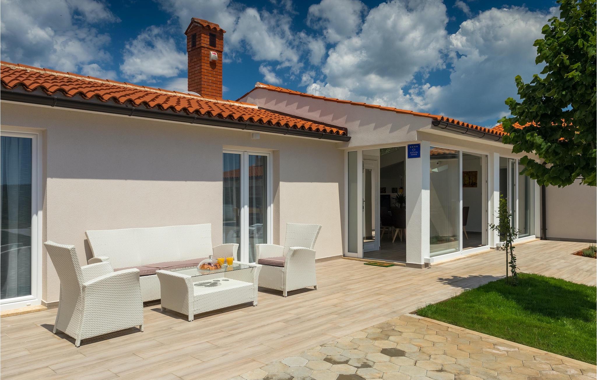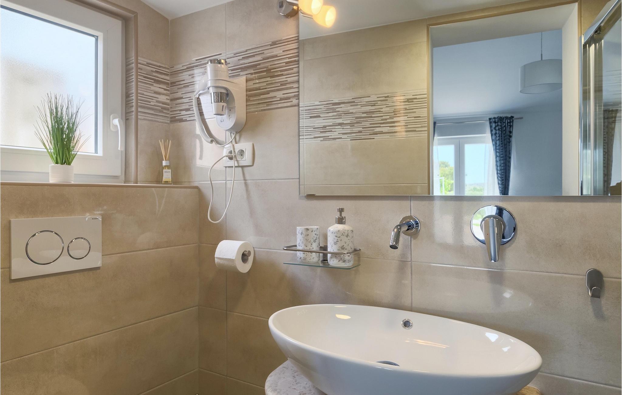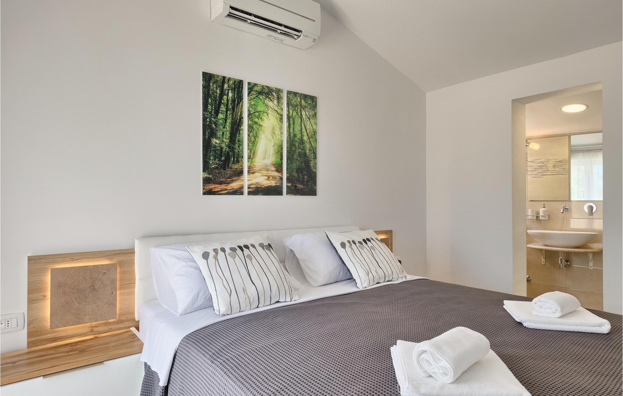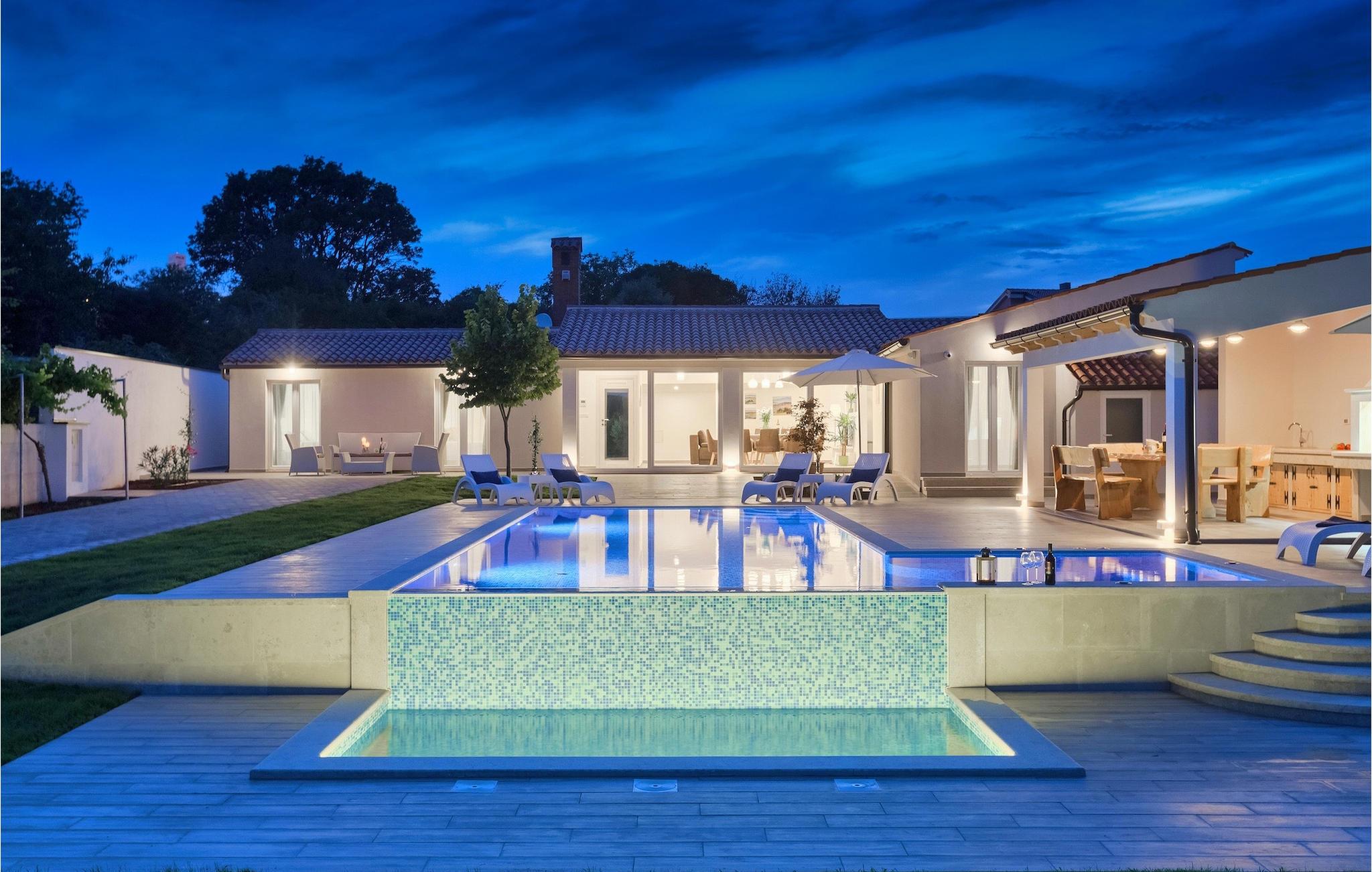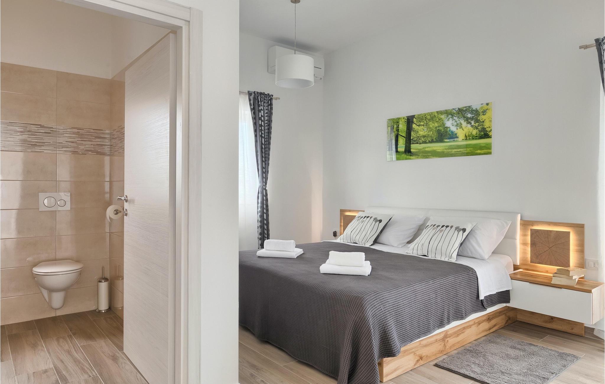 Die Villa MileManda befindet sich in der ruhigen Nachbarschaft Banjole, nur wenige Autominuten vom Stadtzentrum von Pula entfernt. Die Villa verfügt über 3 Schlafzimmer, die alle in einem romantischen und eleganten Stil eingerichtet sind, und kann bis zu 6+2 Gäste beherbergen. Alles ist in einem sehr warmen Stil gehalten und gibt Ihnen ein Gefühl von Zuhause. Der offene Wohnbereich besteht aus einem gemütlichen Wohnzimmer mit TV, einem Essbereich mit großem Tisch, einer modernen und voll ausgestatteten Küche und einem separaten Badezimmer. Alle Schlafzimmer befinden sich im Erdgeschoss und verfügen über ein eigenes Badezimmer, Klimaanlage und Fernseher. Vom Wohnbereich aus haben Sie direkten Zugang zum Außenbereich, der Sie sprachlos machen wird. Wenn Sie Ihren Urlaub in der Sonne verbringen möchten, finden Sie vor der Villa einen großen und sehr einladenden Pool mit Hydromassage. Fahrräder stehen zu Ihrer Verfügung, um die weitere Umgebung zu entdecken und zu erkunden. Die Villa bietet Ihnen viele weitere Möglichkeiten, aktiv zu bleiben, wie Basketball, Volleyball und Badminton. Für besondere Familienmomente bietet die Villa einen großen überdachten Essbereich im Freien mit Gasgrill, der der perfekte Ort für ein Familientreffen ist. Ein großer Olivengarten ist der perfekte Ort, um die Vorteile dieser ruhigen Lage zu genießen, wo Sie sich entspannen können, während Sie Ihr Lieblingsbuch lesen.Die Villa MileManda befindet sich in der Nähe von Pula, in Banjole, bekannt für seine schönen Strände und Promenaden am Meer. Zum Zentrum von Pula benötigen Sie ca. 10 Minuten mit dem Auto. Wir empfehlen Ihnen, einen Spaziergang durch die historische Stadt zu machen und die zahlreichen Gebäude aus der römischen Zeit zu besichtigen, wie z.B. das Amphitheater und den Augustustempel. Alle Naturliebhaber werden von der unberührten Natur von Premantura und dem Brijuni-Nationalpark begeistert sein, die sich unweit der Villa befinden. Premantura ist der südlichste Teil von Istrien, ist sehr felsig und verbirgt viele unberührte Strände und zahlreiche Radwege. Der Nationalpark Brijuni ist eine Gruppe von Inseln und Inselchen, die mit dichtem Kiefernwald bedeckt sind. Auf der Insel finden Sie zahlreiche archäologische Stätten, einen Golfplatz, ein Museum und einen Zoo. Gastronomie-Liebhaber sollten unbedingt das Landesinnere Istriens besuchen und viele traditionelle Gerichte wie Boskarin, Trüffel und istrische Nudeln probieren. Nach einem leckeren Mittagessen, machen Sie einen Spaziergang durch die mittelalterlichen Städte wie Motovun, Buzet und Groznjan.
