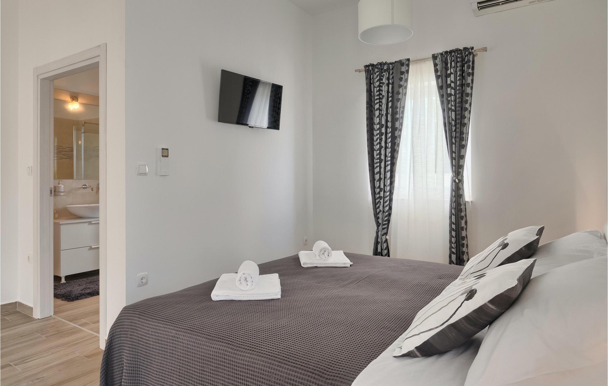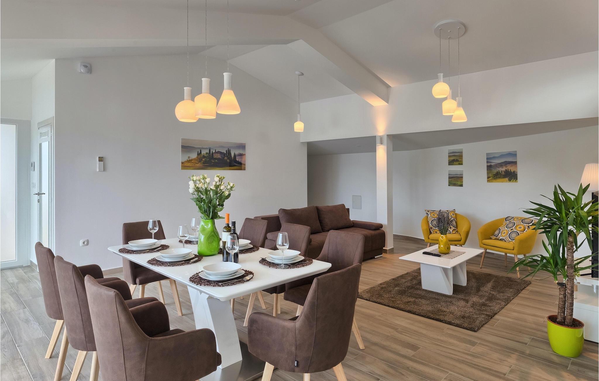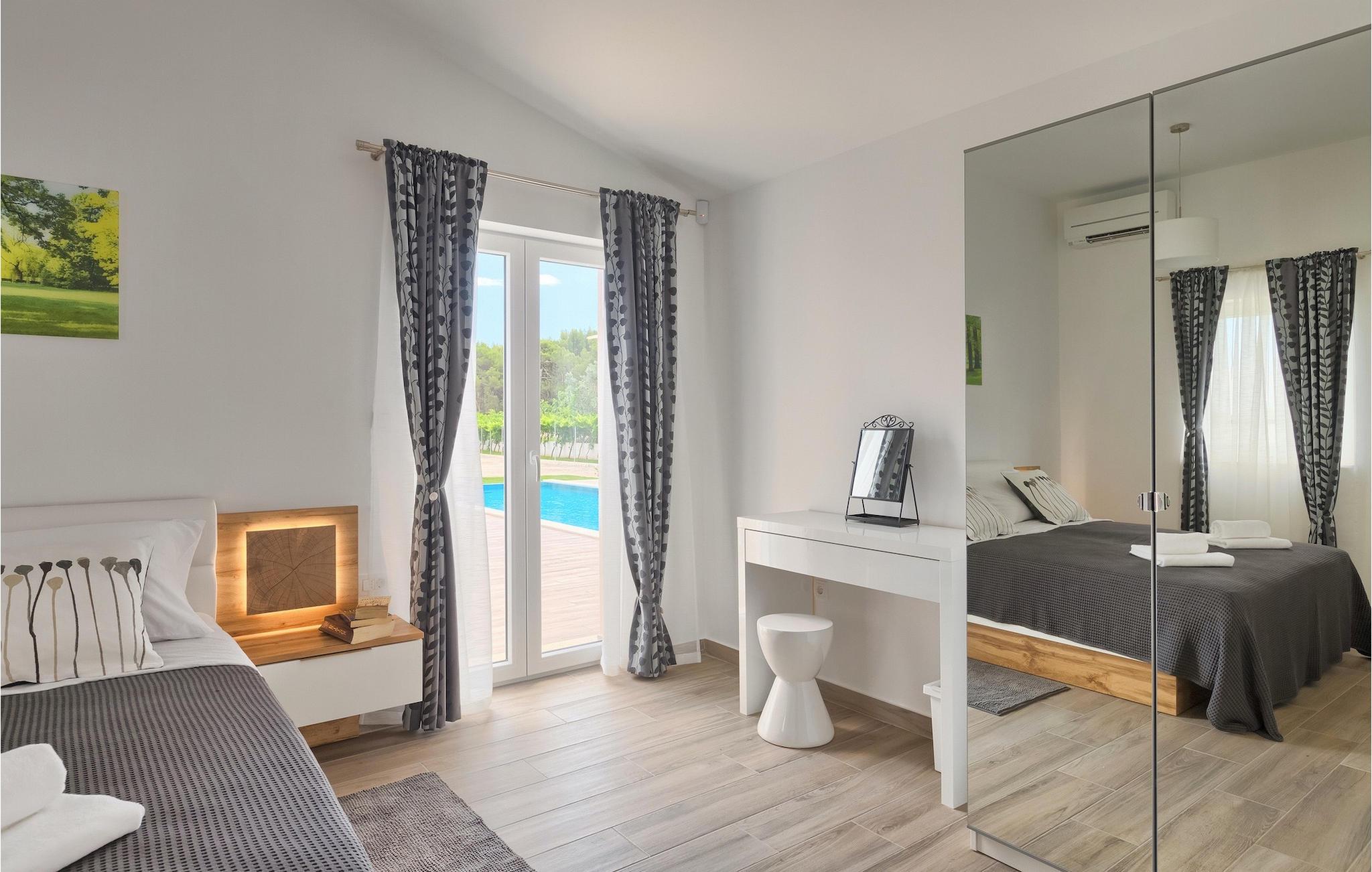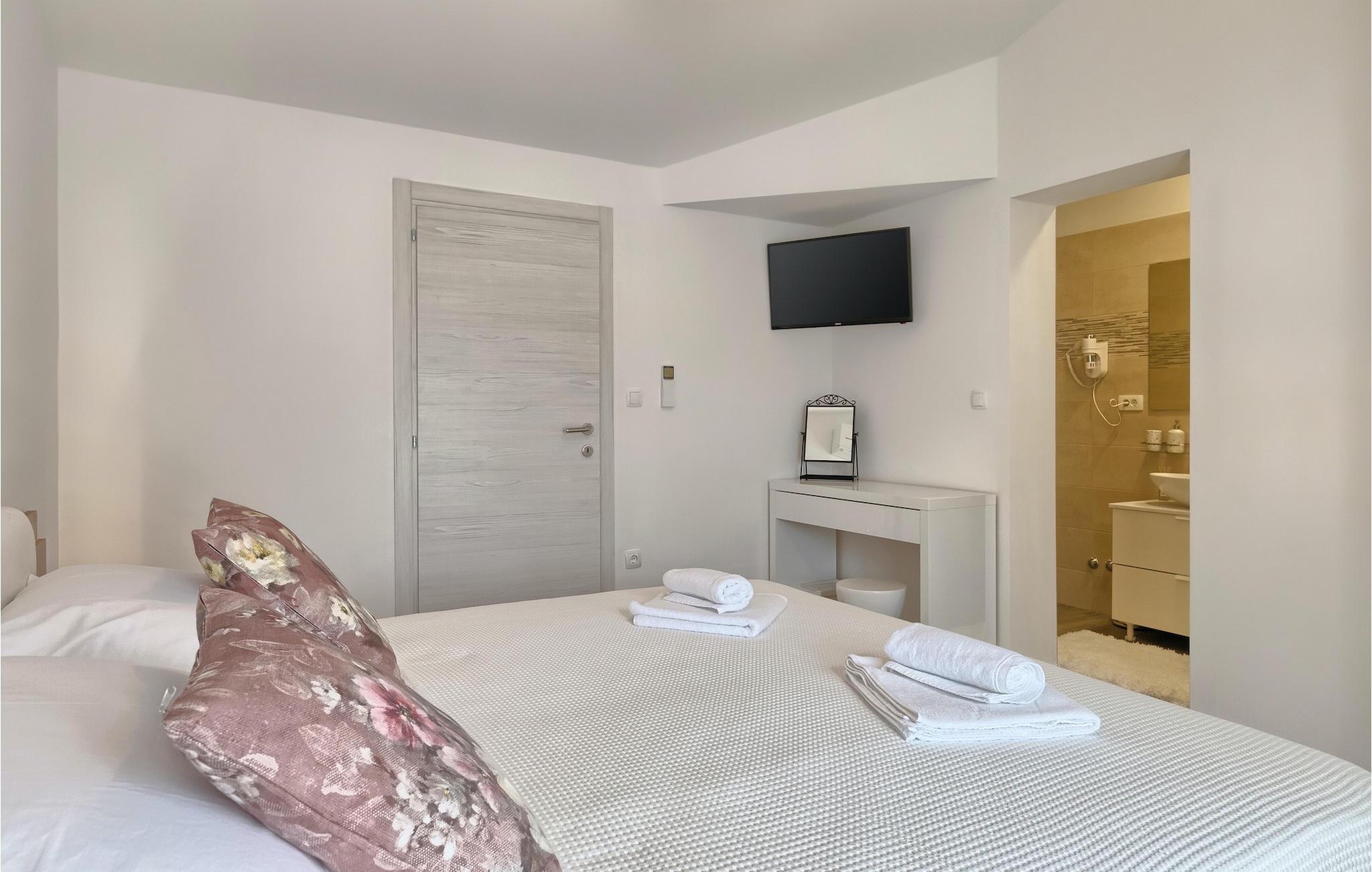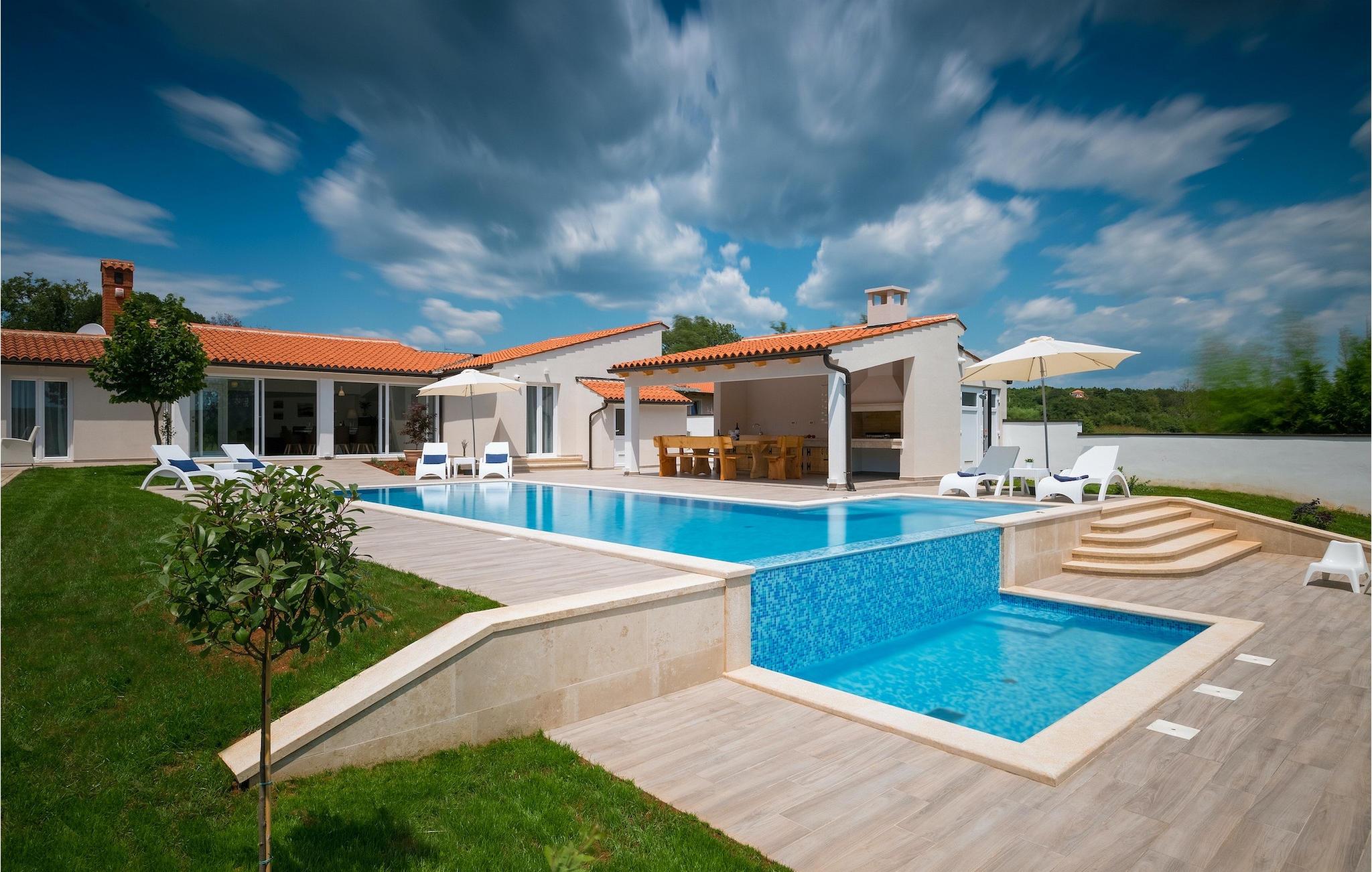 Die Villa MileManda befindet sich in der ruhigen Nachbarschaft Banjole, nur wenige Autominuten vom Stadtzentrum von Pula entfernt. Die Villa verfügt über 3 Schlafzimmer, die alle in einem romantischen und eleganten Stil eingerichtet sind, und kann bis zu 6+2 Gäste beherbergen. Alles ist in einem sehr warmen Stil gehalten und gibt Ihnen ein Gefühl von Zuhause. Der offene Wohnbereich besteht aus einem gemütlichen Wohnzimmer mit TV, einem Essbereich mit großem Tisch, einer modernen und voll ausgestatteten Küche und einem separaten Badezimmer. Alle Schlafzimmer befinden sich im Erdgeschoss und verfügen über ein eigenes Badezimmer, Klimaanlage und Fernseher. Vom Wohnbereich aus haben Sie direkten Zugang zum Außenbereich, der Sie sprachlos machen wird. Wenn Sie Ihren Urlaub in der Sonne verbringen möchten, finden Sie vor der Villa einen großen und sehr einladenden Pool mit Hydromassage. Fahrräder stehen zu Ihrer Verfügung, um die weitere Umgebung zu entdecken und zu erkunden. Die Villa bietet Ihnen viele weitere Möglichkeiten, aktiv zu bleiben, wie Basketball, Volleyball und Badminton. Für besondere Familienmomente bietet die Villa einen großen überdachten Essbereich im Freien mit Gasgrill, der der perfekte Ort für ein Familientreffen ist. Ein großer Olivengarten ist der perfekte Ort, um die Vorteile dieser ruhigen Lage zu genießen, wo Sie sich entspannen können, während Sie Ihr Lieblingsbuch lesen.Die Villa MileManda befindet sich in der Nähe von Pula, in Banjole, bekannt für seine schönen Strände und Promenaden am Meer. Zum Zentrum von Pula benötigen Sie ca. 10 Minuten mit dem Auto. Wir empfehlen Ihnen, einen Spaziergang durch die historische Stadt zu machen und die zahlreichen Gebäude aus der römischen Zeit zu besichtigen, wie z.B. das Amphitheater und den Augustustempel. Alle Naturliebhaber werden von der unberührten Natur von Premantura und dem Brijuni-Nationalpark begeistert sein, die sich unweit der Villa befinden. Premantura ist der südlichste Teil von Istrien, ist sehr felsig und verbirgt viele unberührte Strände und zahlreiche Radwege. Der Nationalpark Brijuni ist eine Gruppe von Inseln und Inselchen, die mit dichtem Kiefernwald bedeckt sind. Auf der Insel finden Sie zahlreiche archäologische Stätten, einen Golfplatz, ein Museum und einen Zoo. Gastronomie-Liebhaber sollten unbedingt das Landesinnere Istriens besuchen und viele traditionelle Gerichte wie Boskarin, Trüffel und istrische Nudeln probieren. Nach einem leckeren Mittagessen, machen Sie einen Spaziergang durch die mittelalterlichen Städte wie Motovun, Buzet und Groznjan.