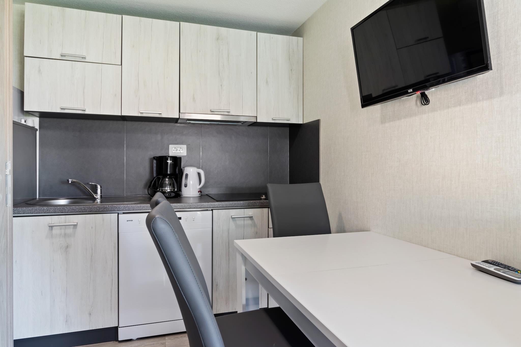 Beliggende i den rolige by Banjole inviterer dette kæledyrsvenlige mobilehome til seks gæster til at slappe af, kun 1 km fra stranden og 2 km fra Pulas travle centrum. Med gratis WiFi, en fælles swimmingpool og en række fritidsfaciliteter er det et fremragende valg for familier eller grupper, der søger både afslapning og eventyr. Indenfor finder du en hyggelig stue/soveværelse med en dobbelt sovesofa, tv og aircondition, samt et praktisk tekøkken udstyret med elkedel, kogende vandhane, kaffemaskine, mikrobølgeovn, opvaskemaskine og køleskab. Indkvarteringen omfatter et soveværelse med køjesenge eller to enkeltsenge og et soveværelse med en kingsize-seng og et privat badeværelse. Et andet badeværelse giver ekstra komfort. Gå udenfor til en møbleret terrasse med liggestole, en grill og adgang til familievenlige faciliteter som en trampolin, tennisbane og legeplads. Oplev romerske skatte som Augustus-templet og Sergii-buen i nærheden, eller tag en dagstur til de naturskønne Brijuni-øer. Til måltider kan du nyde pizza på Nina Pizzeria eller frisk fisk og skaldyr på Konoba Sidro. Denne kystparadis blander historie, natur og fritid for en uforglemmelig ferie.