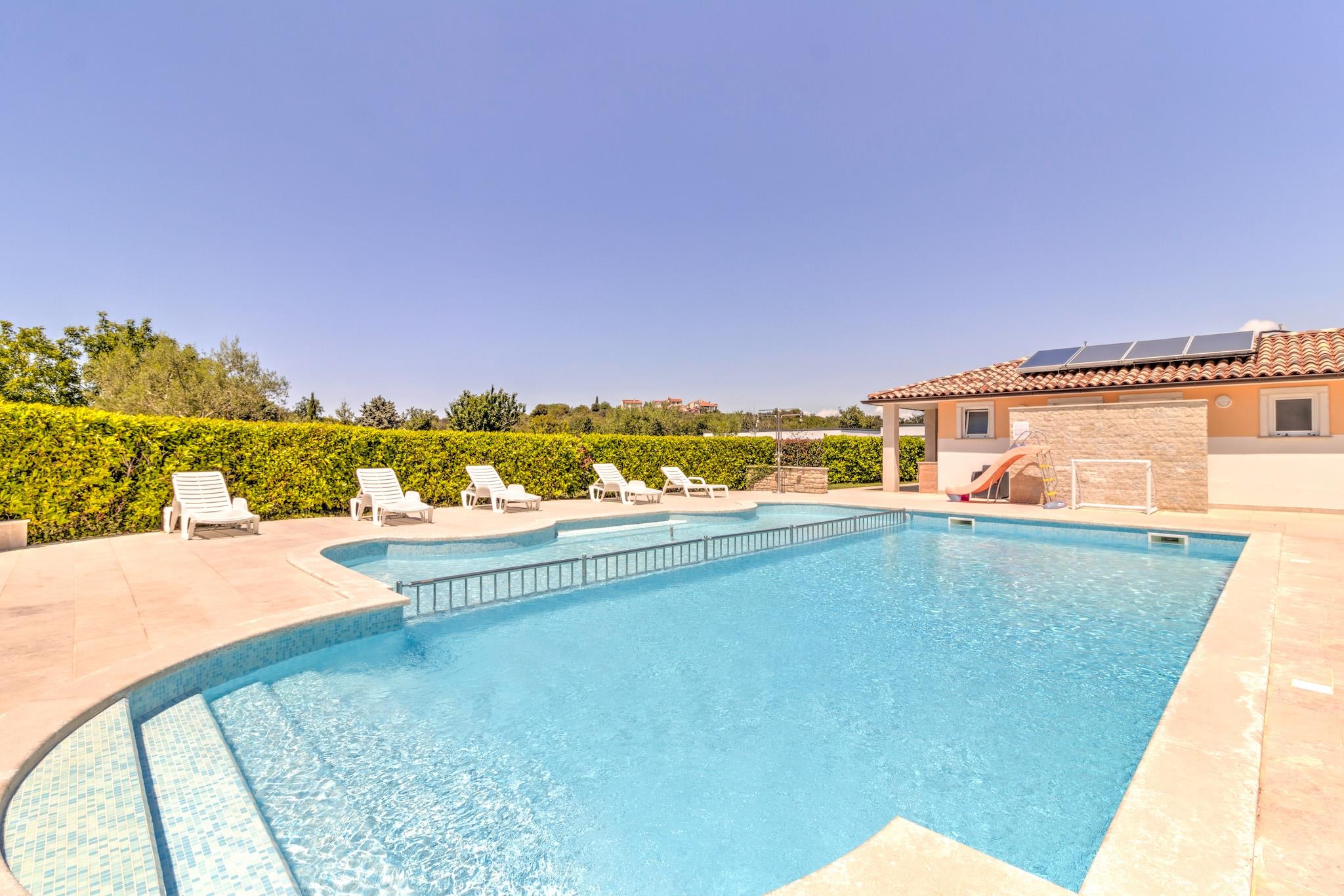 Dette mobilehome til seks gæster tilbyder et roligt og kæledyrsvenligt tilflugtssted i Banjole, kun 1 km fra stranden og 2 km fra Pulas livlige centrum. Omgivet af maleriske landskaber blander dette kystnære tilflugtssted afslapning med eventyr og tilbyder gratis WiFi, en fælles swimmingpool og forskellige fritidsfaciliteter. Uanset om du nyder solen eller udforsker den lokale kulturarv, er dette det perfekte sted at slappe af. Indenfor har huset en rummelig stue og soveværelse med en dobbelt sovesofa, tv og aircondition, et veludstyret tekøkken med elkedel, kogende vandhane, kaffemaskine, mikrobølgeovn, opvaskemaskine og køleskab samt et soveværelse med køjesenge eller to enkeltsenge. Soveværelset har en kingsize-seng og et eget badeværelse med badekar eller bruser og toilet, suppleret af et ekstra badeværelse for nemheds skyld. Udendørs kan gæsterne slappe af på terrassen med havemøbler, liggestole og grill eller nyde trampolinen, tennisbanen, fodboldmålet og legeredskaberne. I nærheden ligger Augustus-templet med udsøgt romersk arkitektur, mens Brijuni-øerne byder på uberørt natur og historiske skatte. Gå en tur gennem Sergii-buen, en storslået triumfbue fra oldtiden. Forkæl dig selv med middag på Konoba Batelina, kendt for frisk fisk og skaldyr, eller nyd lokale delikatesser på Barka Bistro. Uanset om du udforsker historien eller slapper af ved kysten, er dette mobilehome det ultimative adriatiske tilflugtssted.